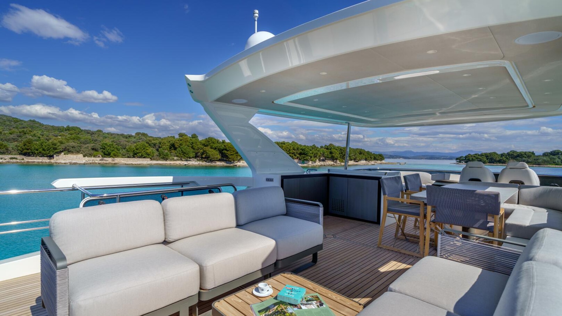 - Electrical awning for the cockpit with lighting and integrated privacy shade