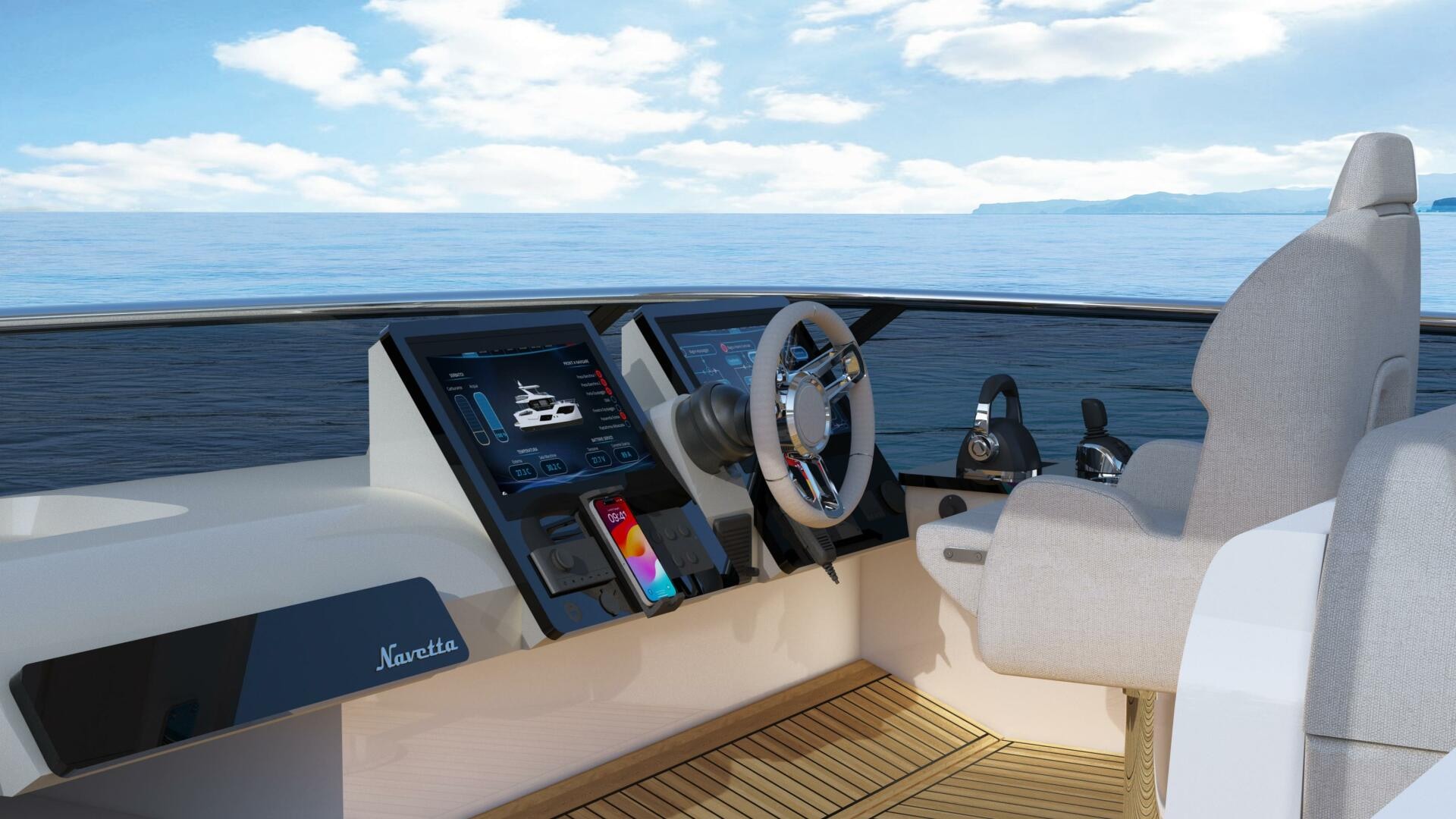 - Smartphone wireless charger on main deck and flybridge dashboards (two)