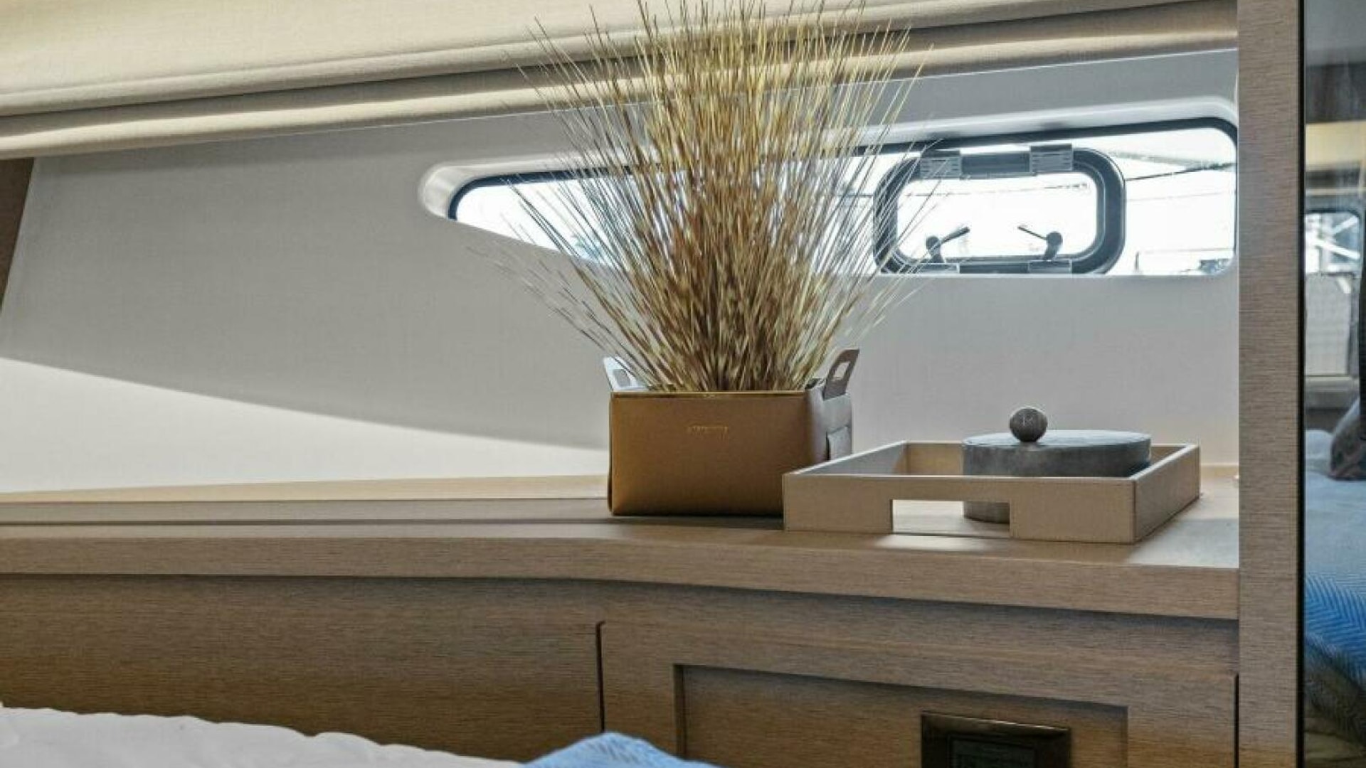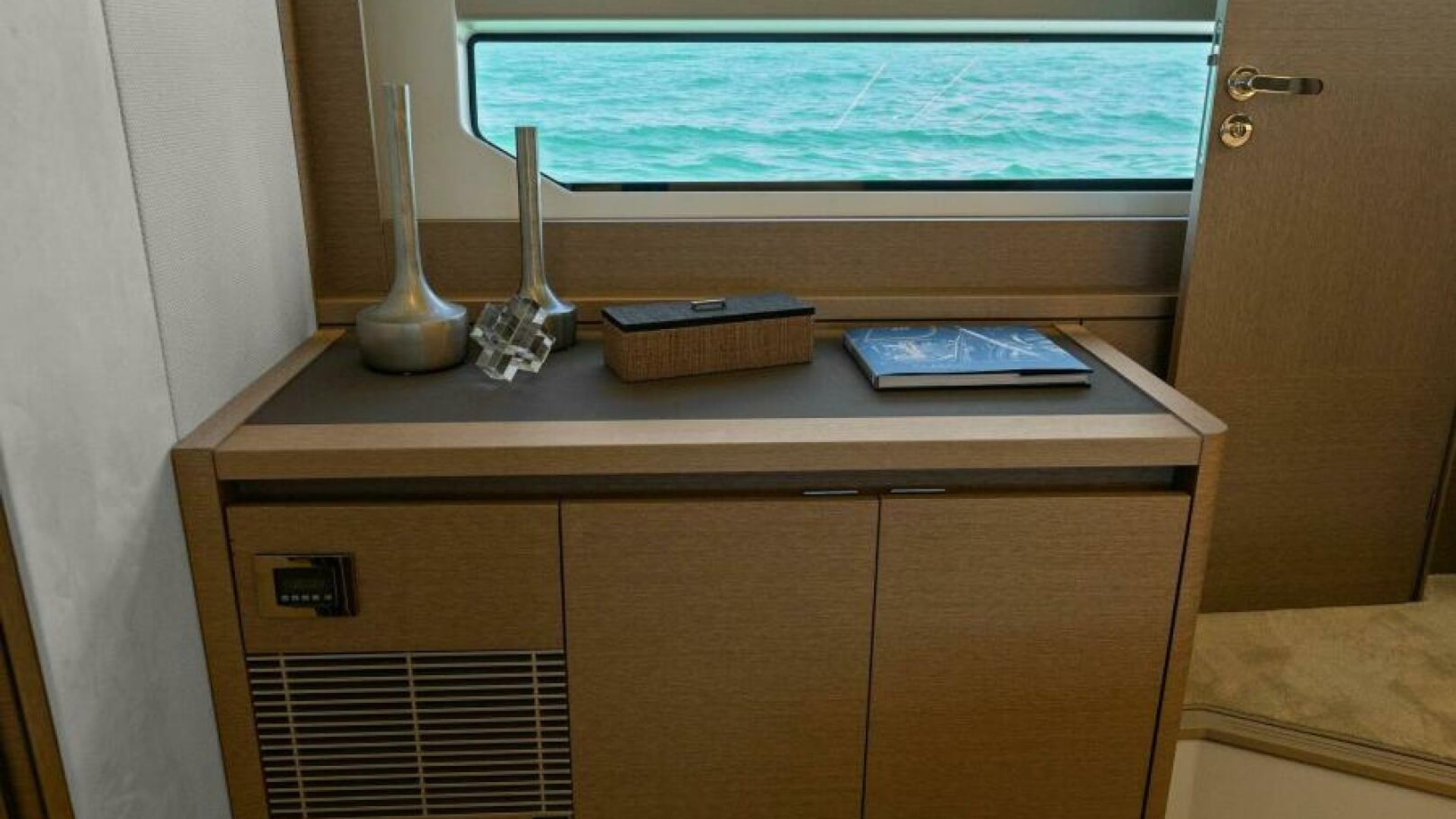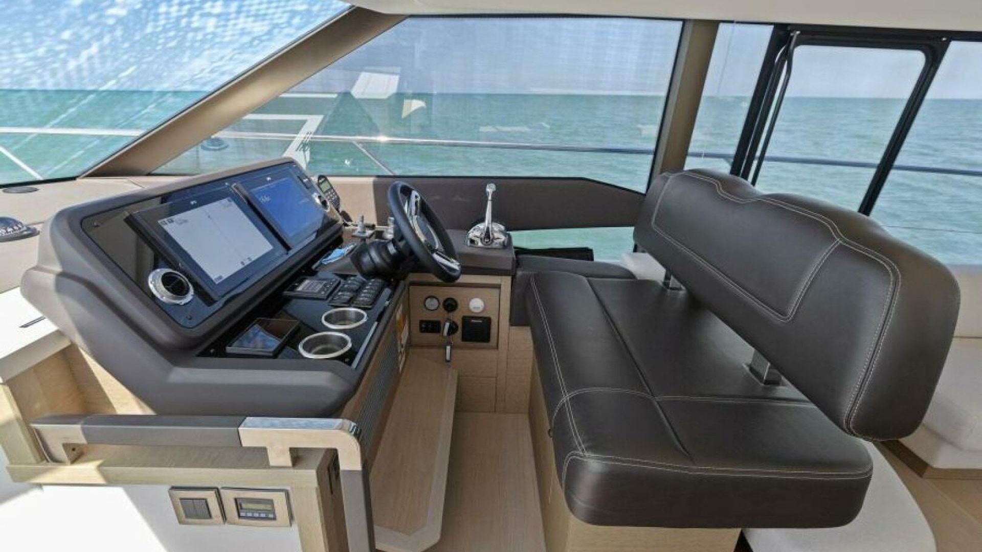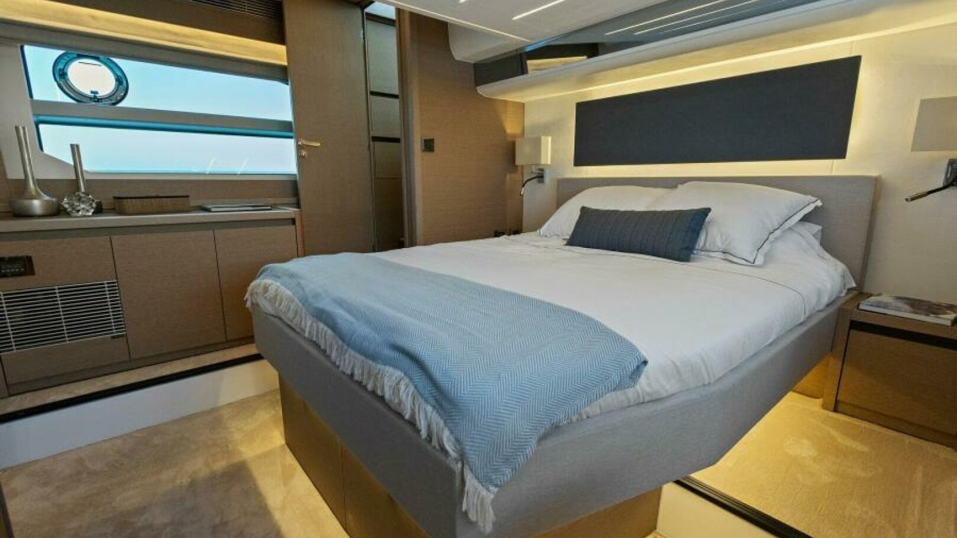 The attention to detail sets the Prestige 590 apart. Rounded furniture edges blend into comfortable seating areas that are both cozy and inviting. The materials, layout and sightlines all contribute to a sense of well-being onboard and an understated, refined elegance.