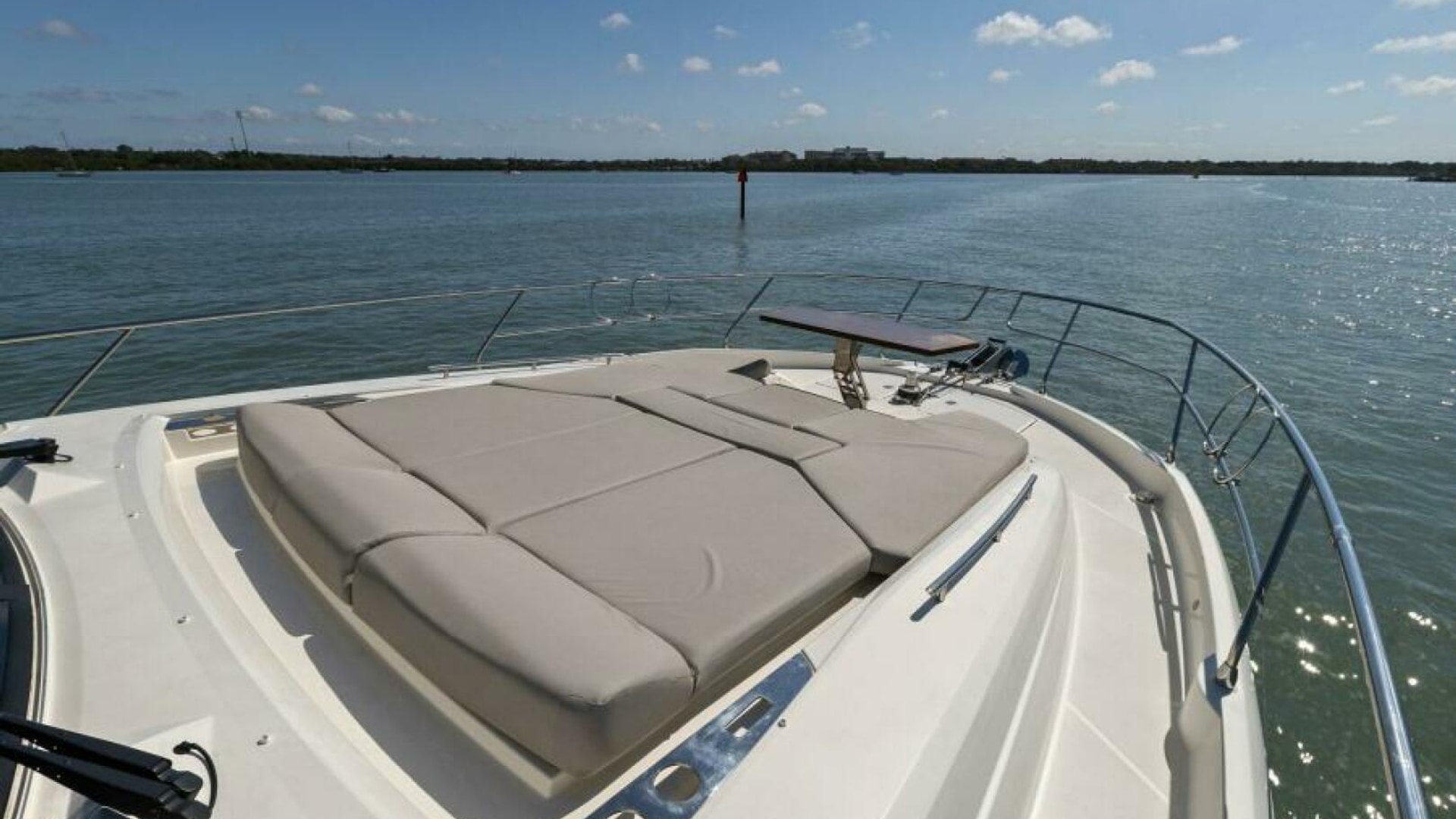 - Foredeck sunpad mattress w/ forward lounge area and adjustable backrest.