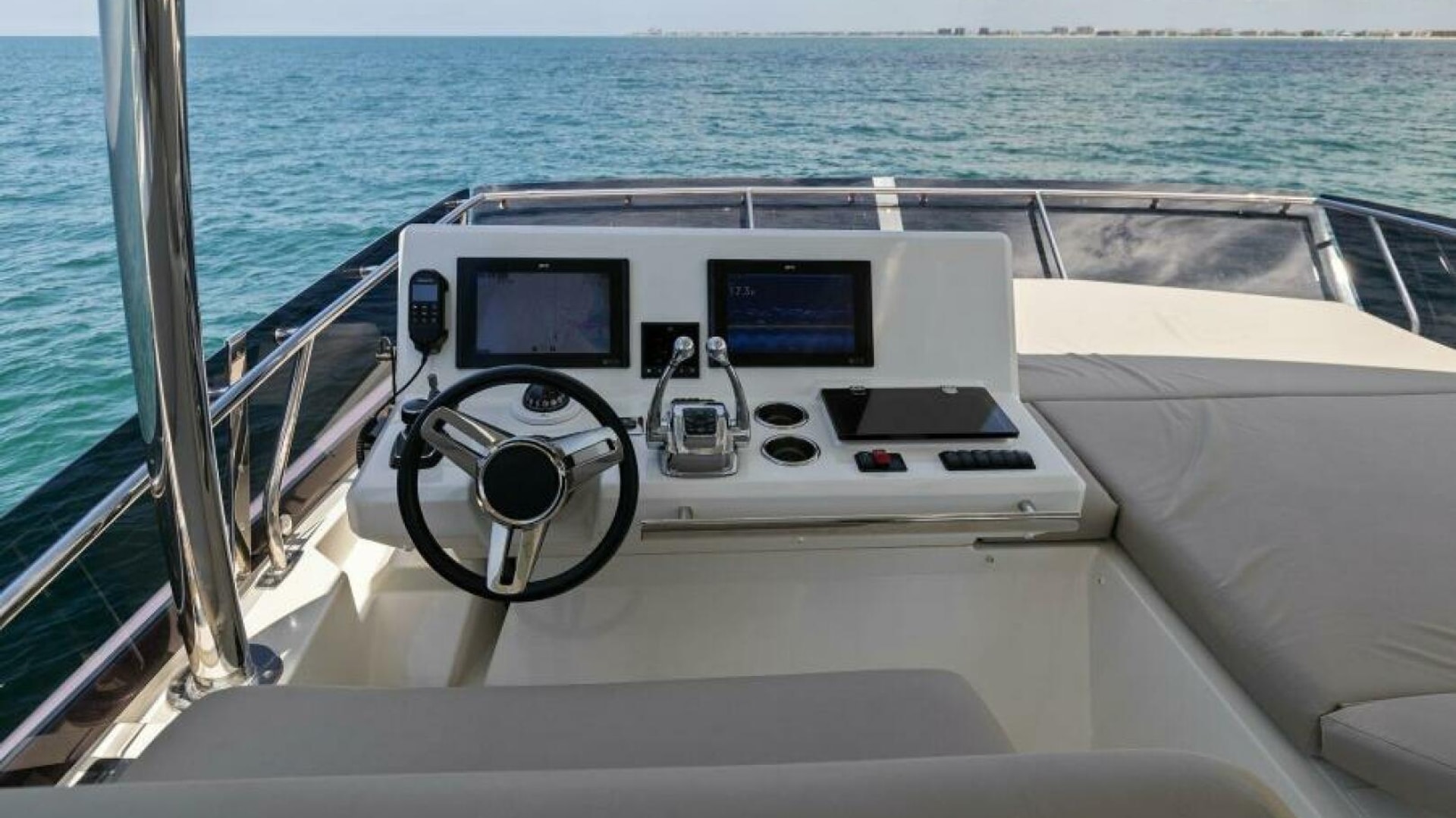- (2) Raymarine 12” Multifunction GPS Displays in Flybridge Helm.