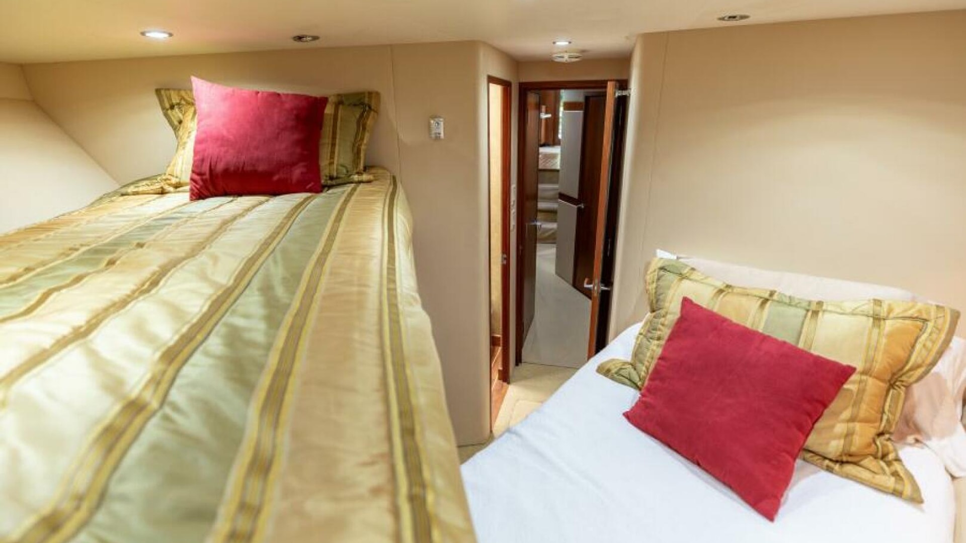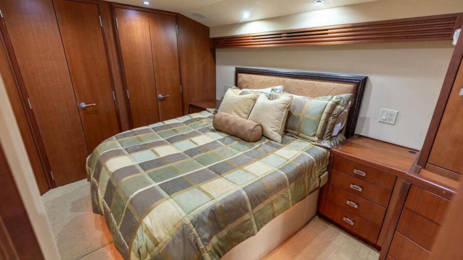 - Air conditioned, diffused through cherry wood fluted valances, port and starboard