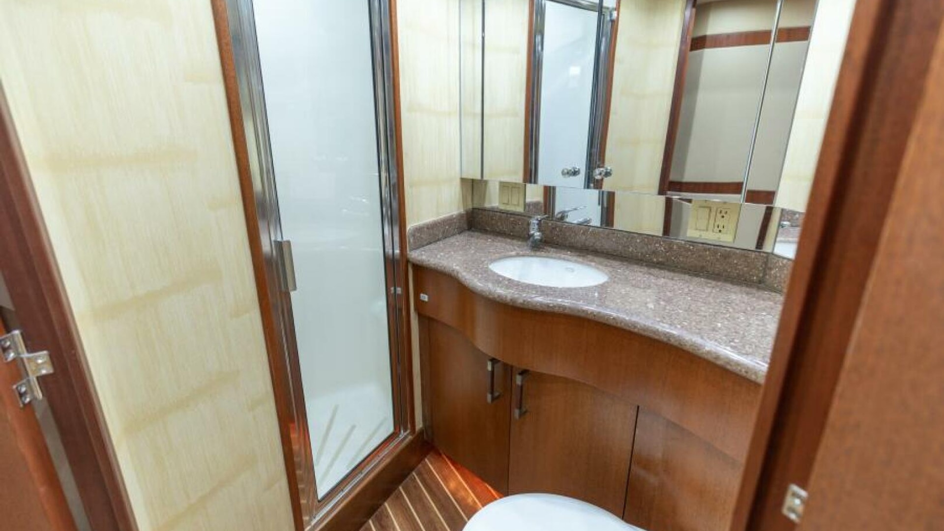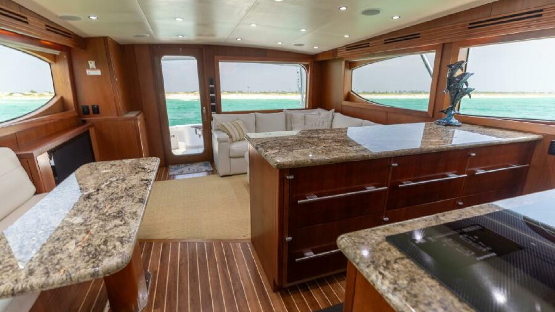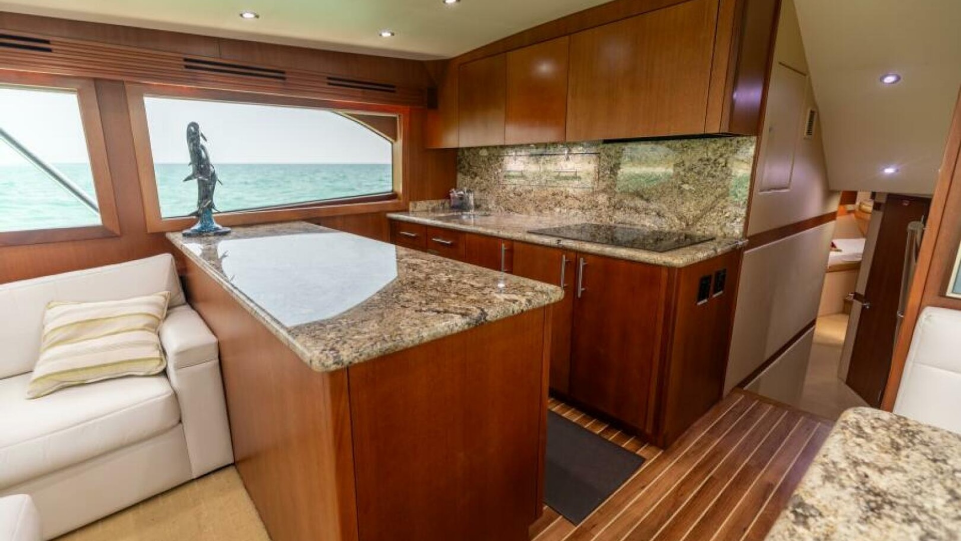 - Cherry wood face raised for easy view on Aft side of Galley Island in place of mirror