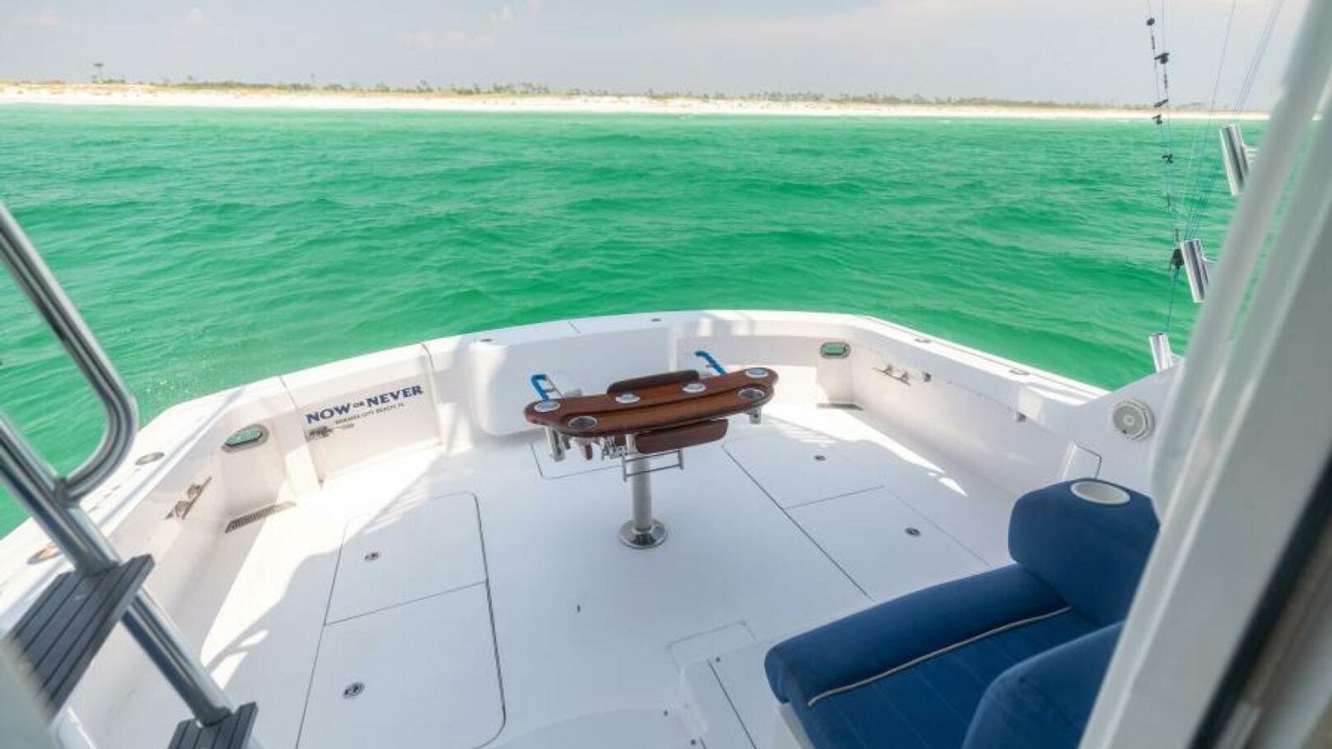 - Polished aluminum bow rail with bow pulpit and anchor