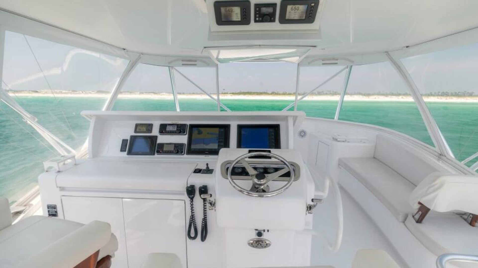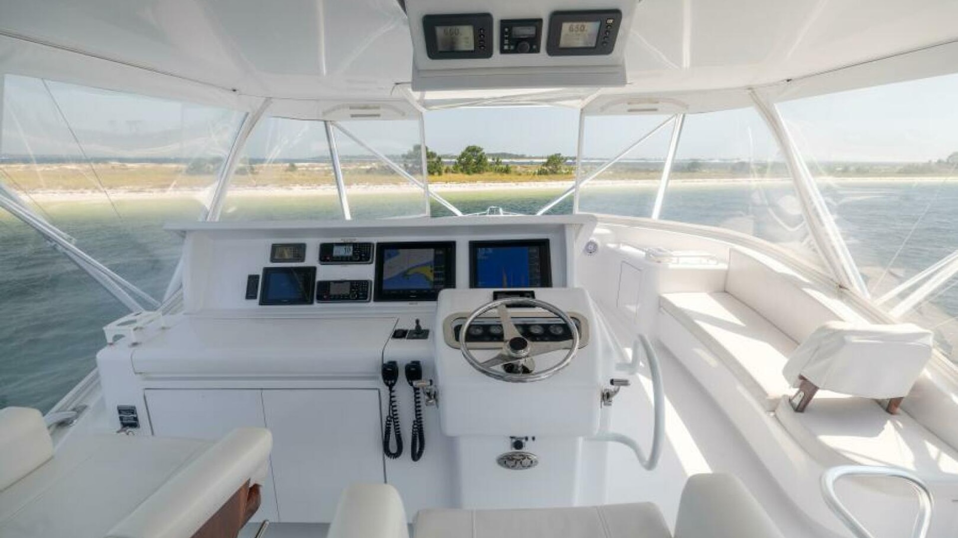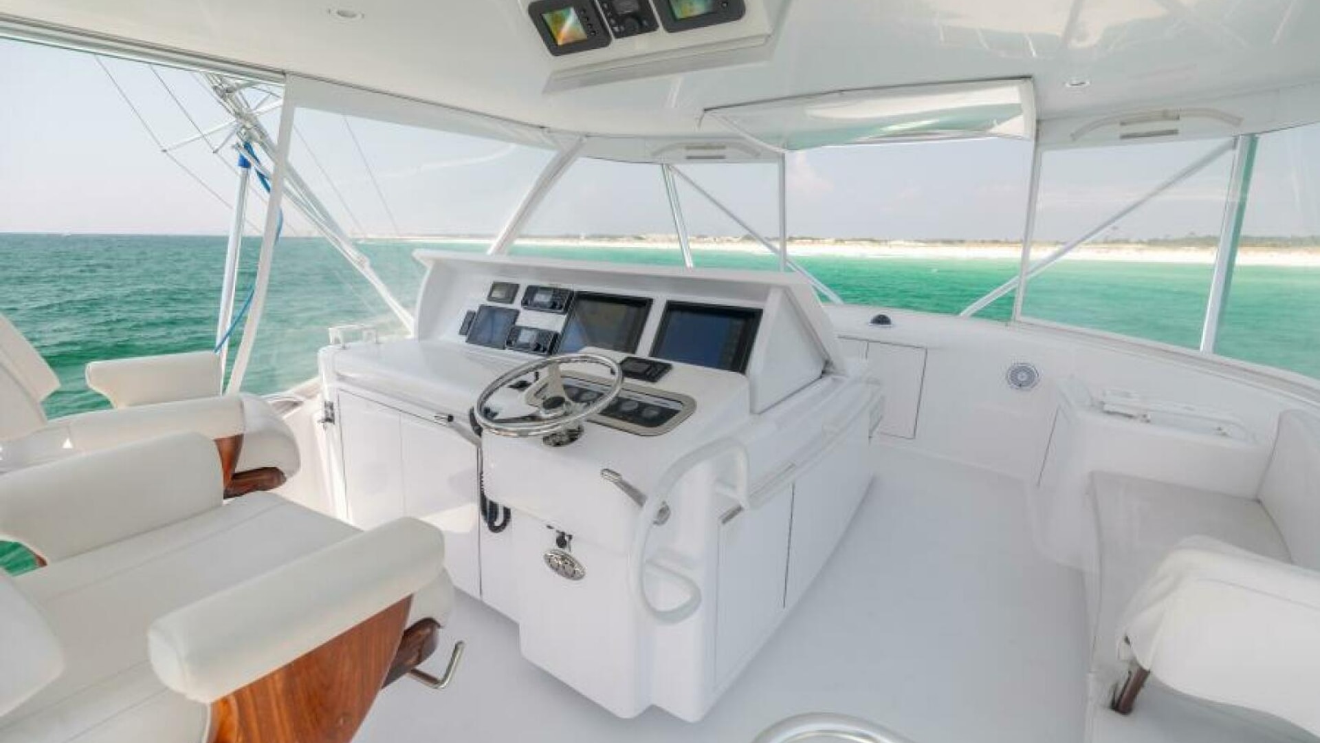 - Custom helm pod with polished stainless wheel and single lever electronic controls