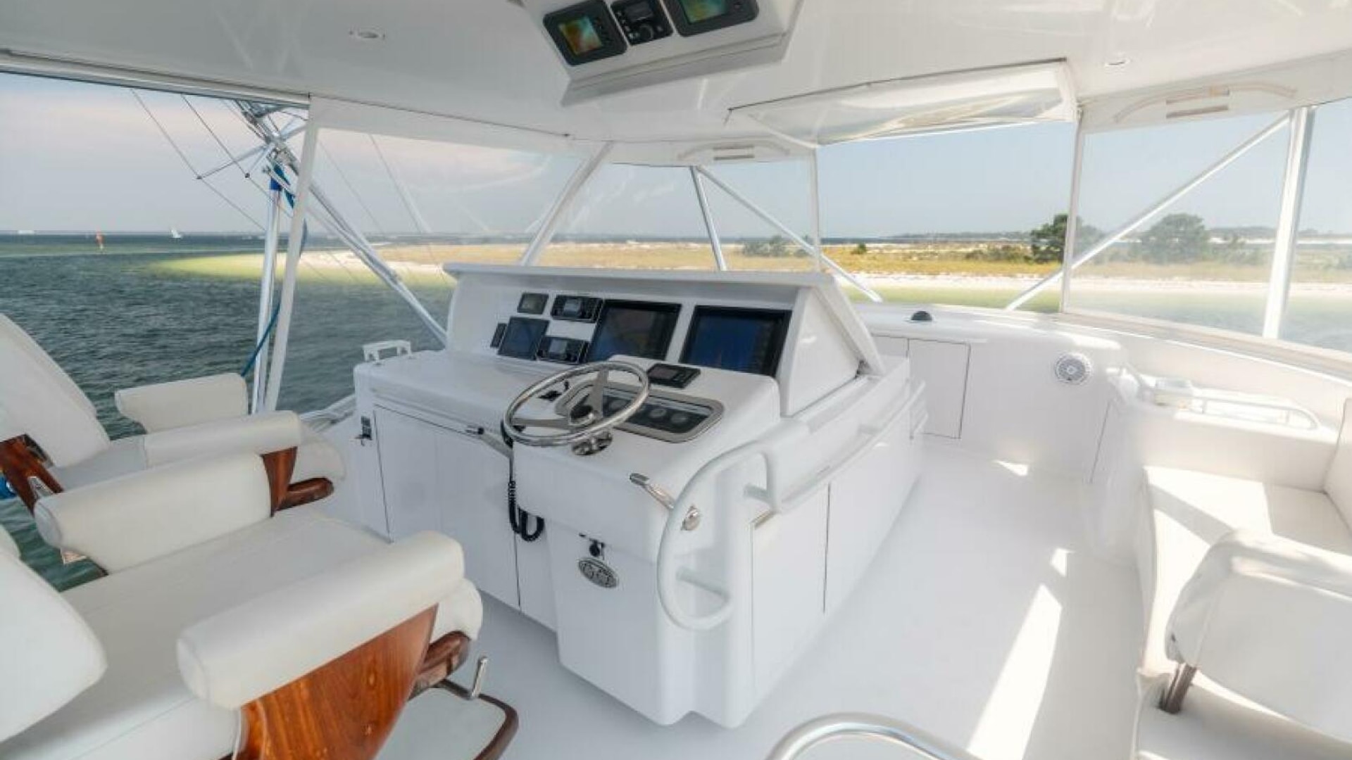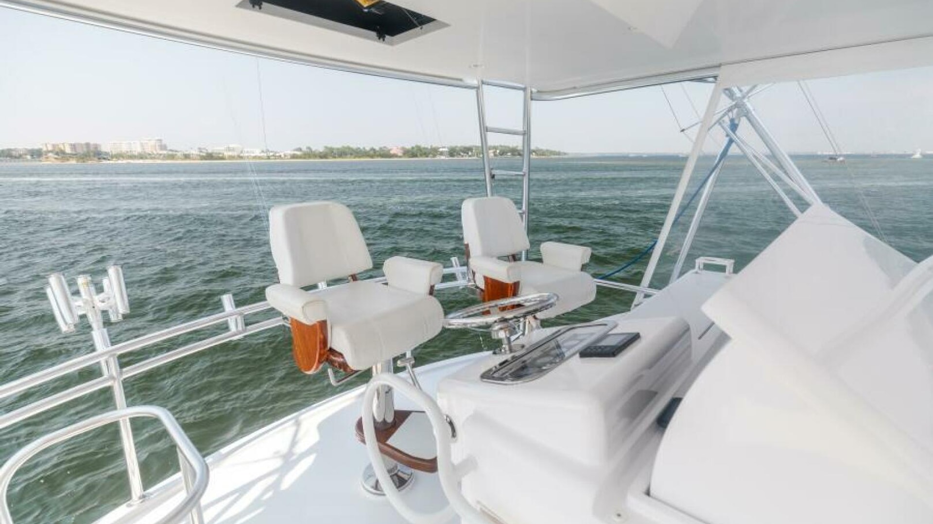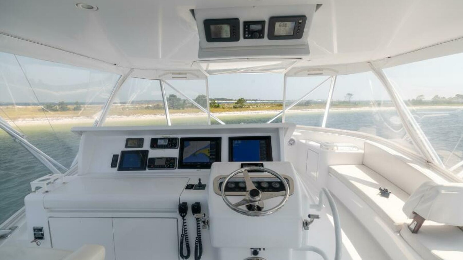 - Custom helm pod with polished stainless wheel and single lever electronic controls