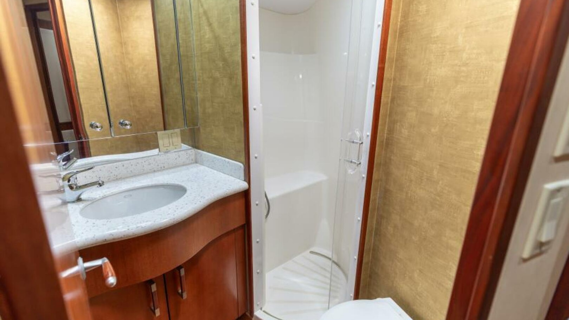 - Additional upper locker with drawer storage below at entrance to ensuite head