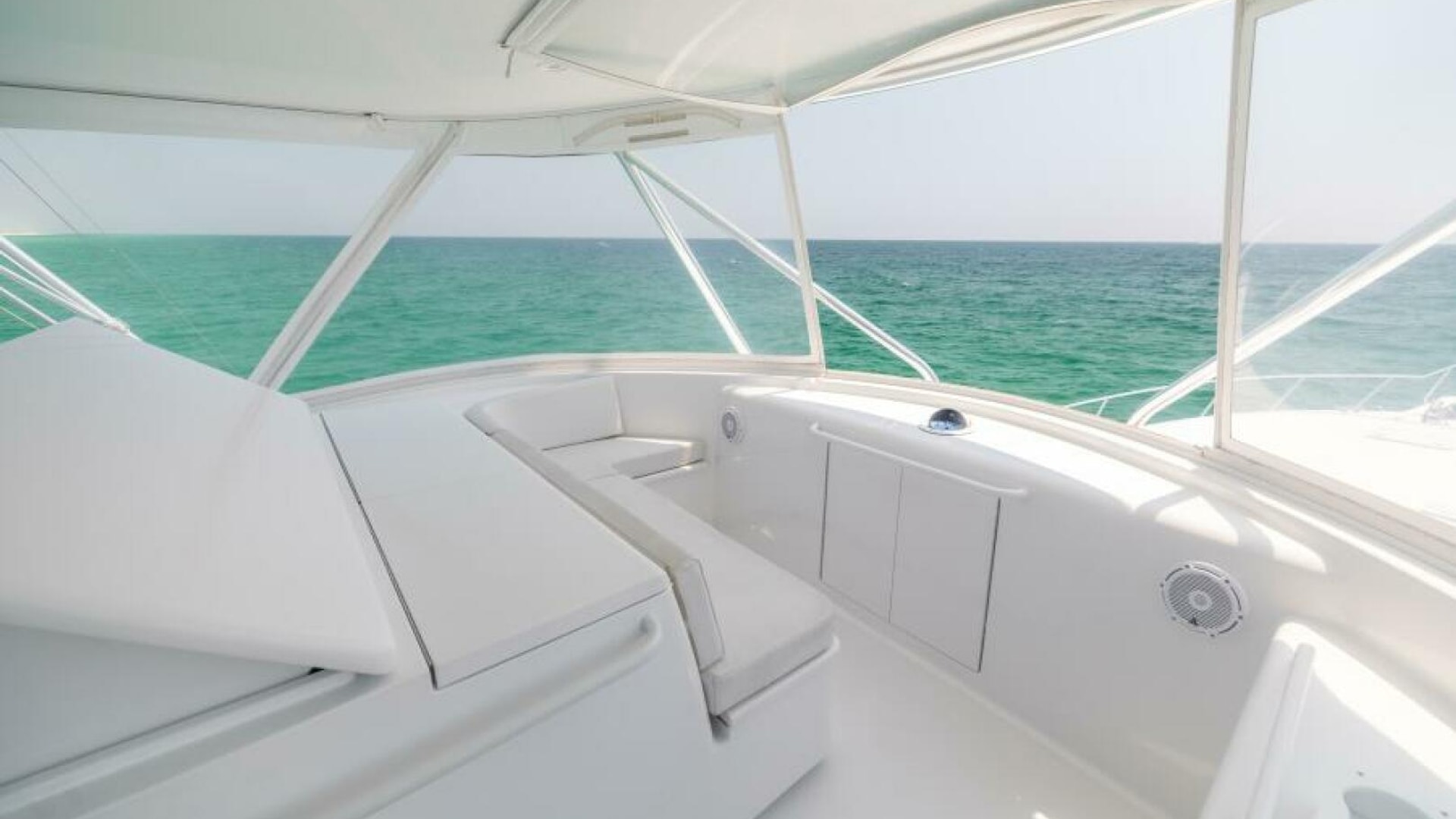 - Powder coated grab rail forward of forward bench seating and starboard forward cabinet