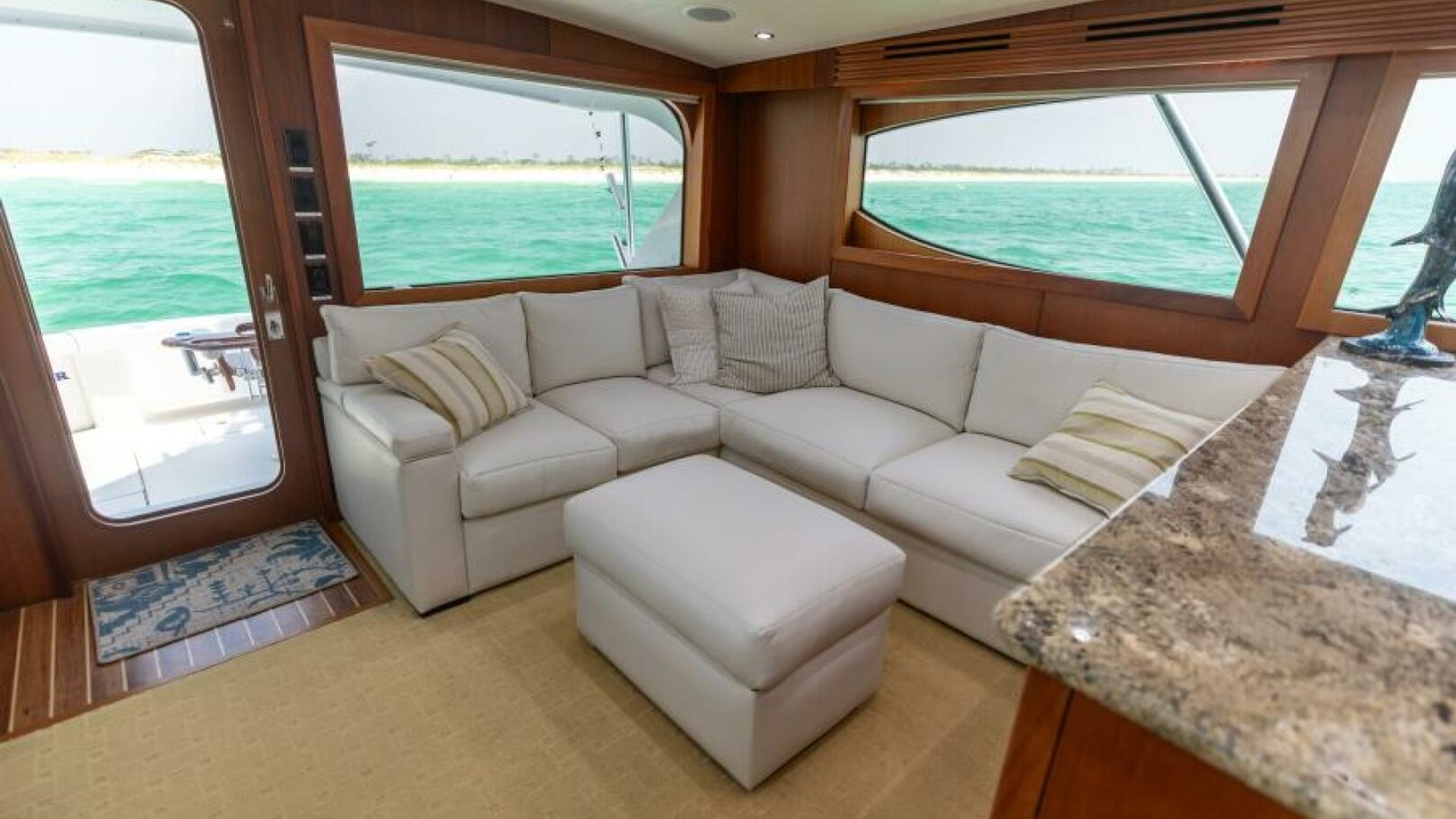 - Bench seat to starboard with storage below