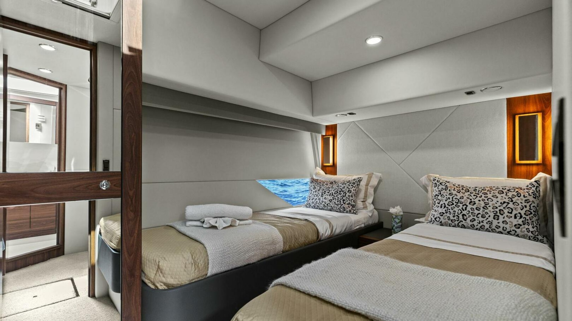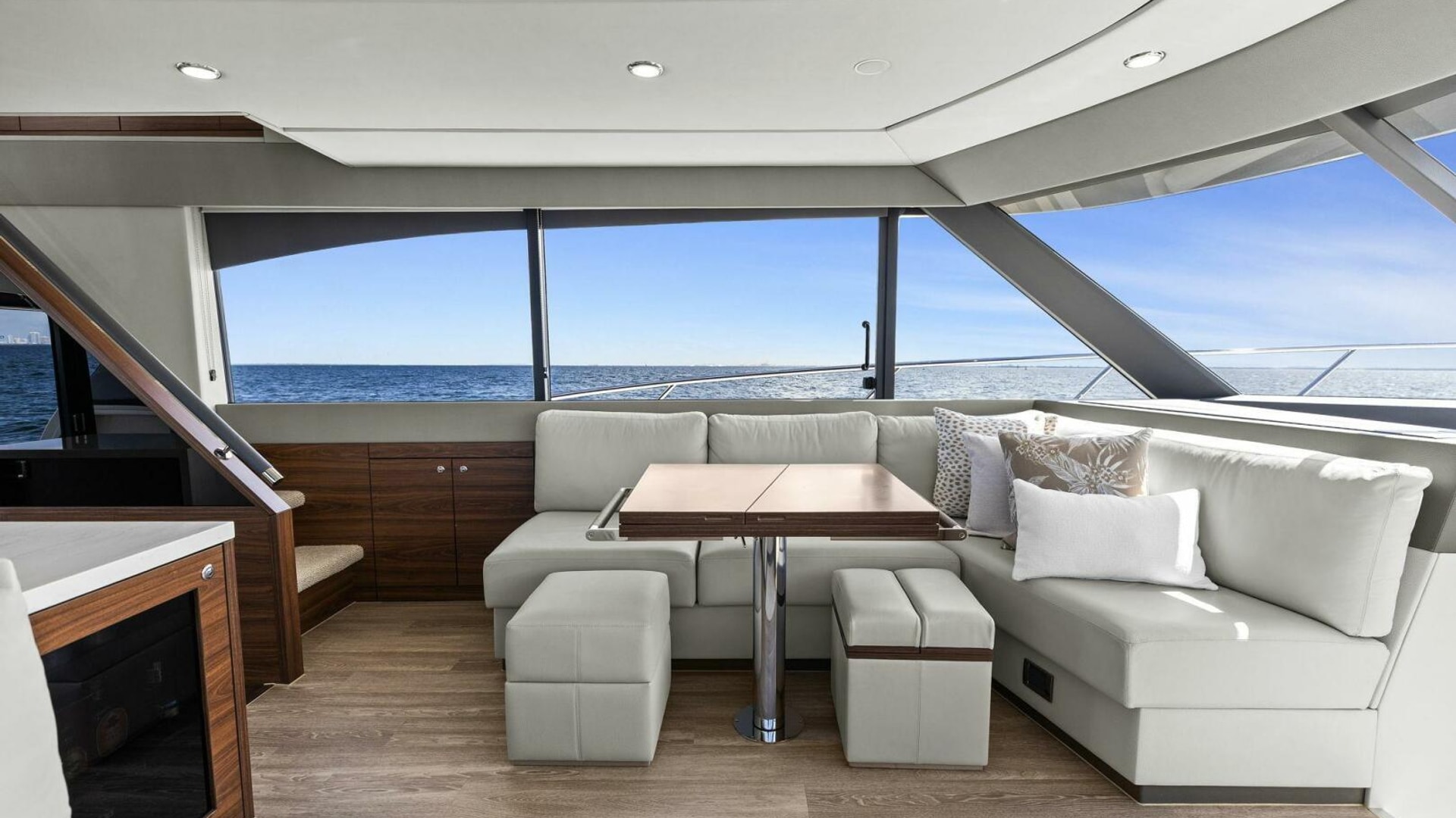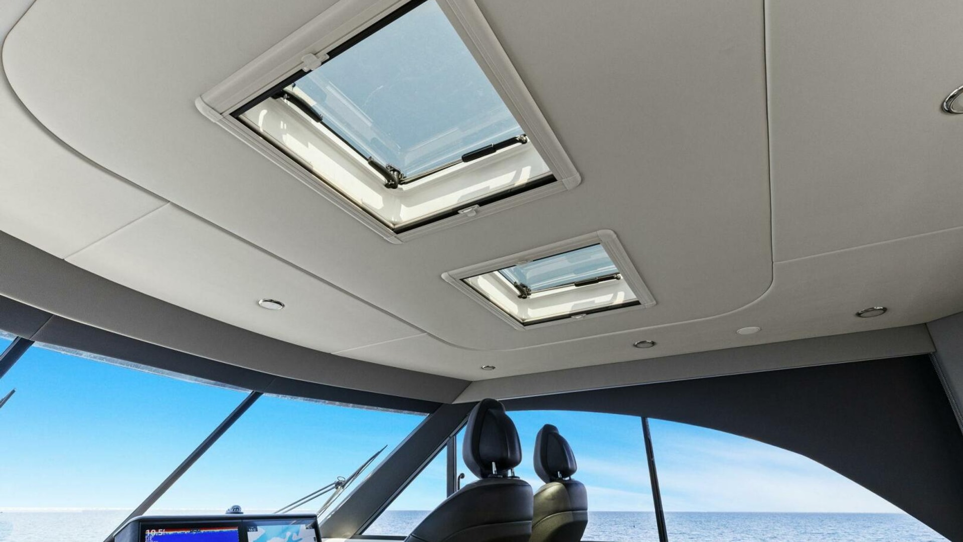 - Panoramic hull windows with opening port lights