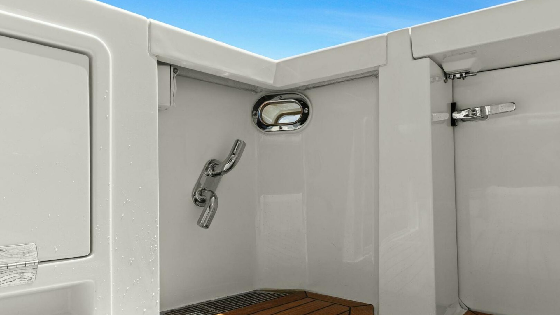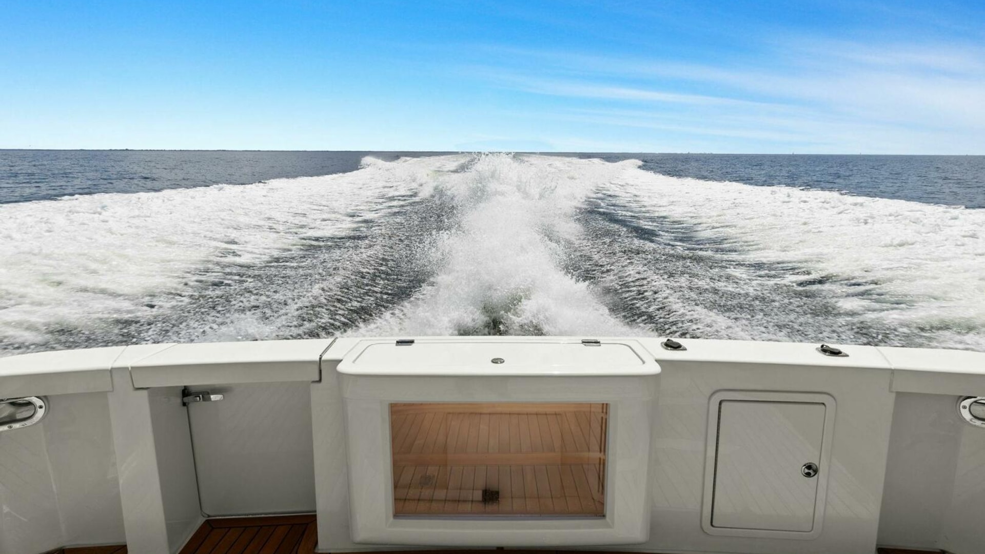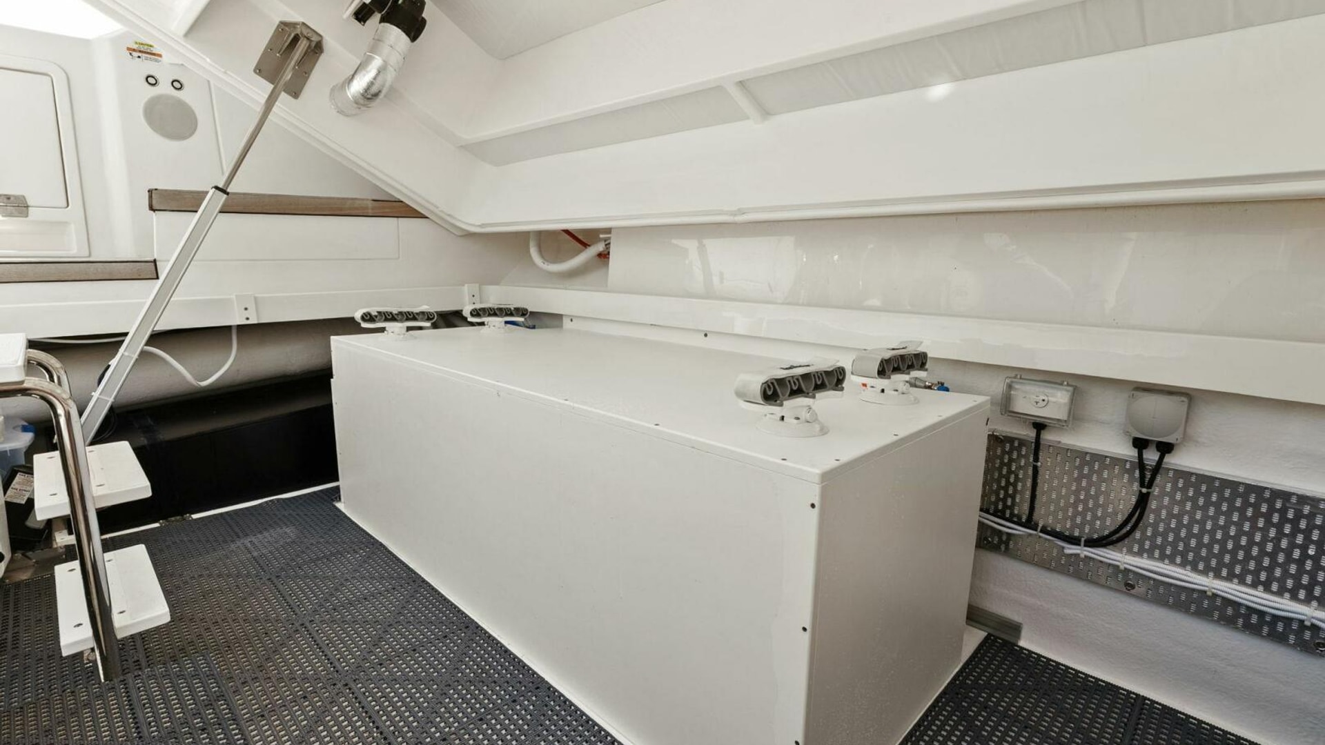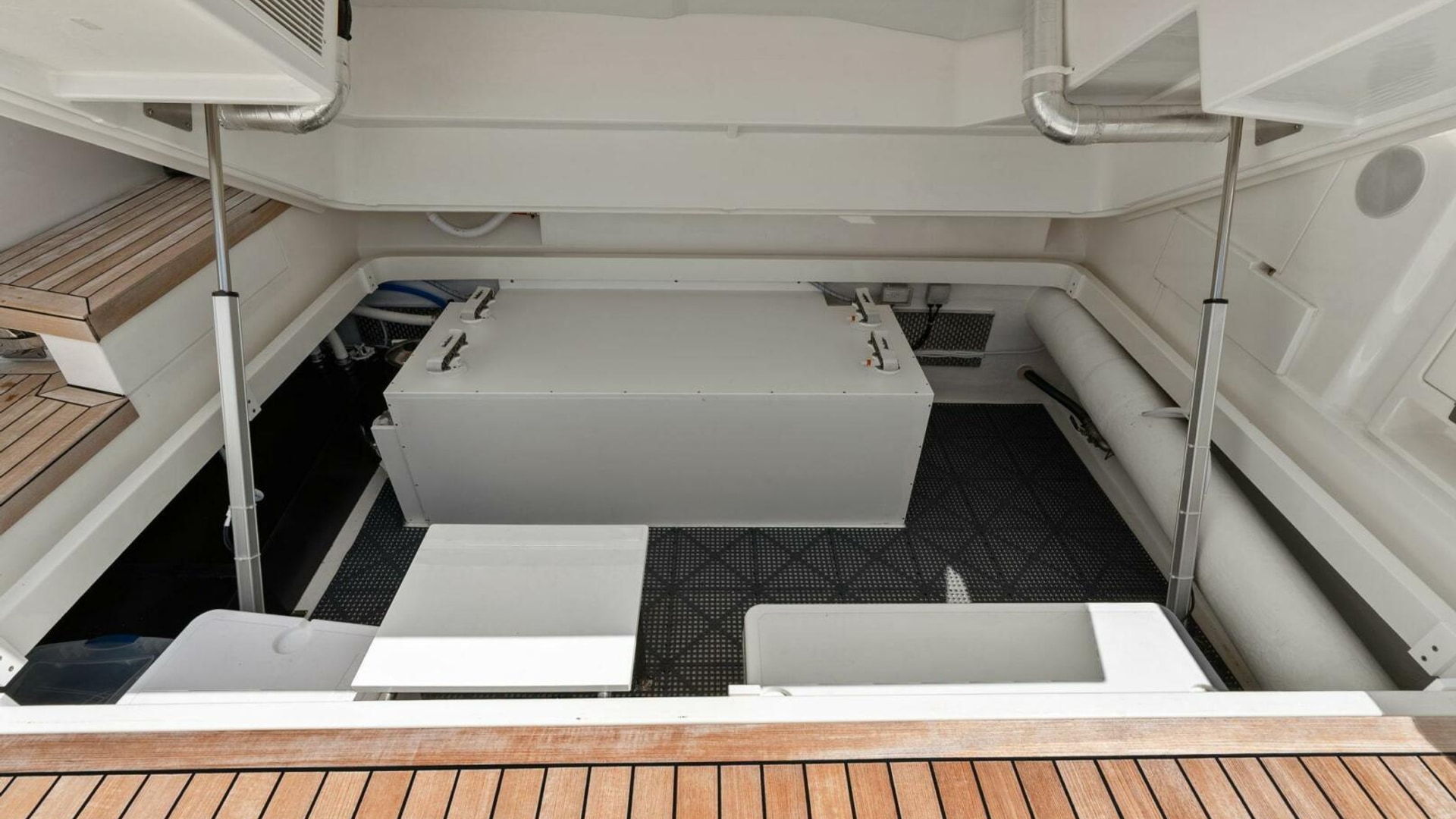- Lazarette: Custom decking and custom water tank enclosure to accommodate bike, dive tank and fishing equipment storage etc.