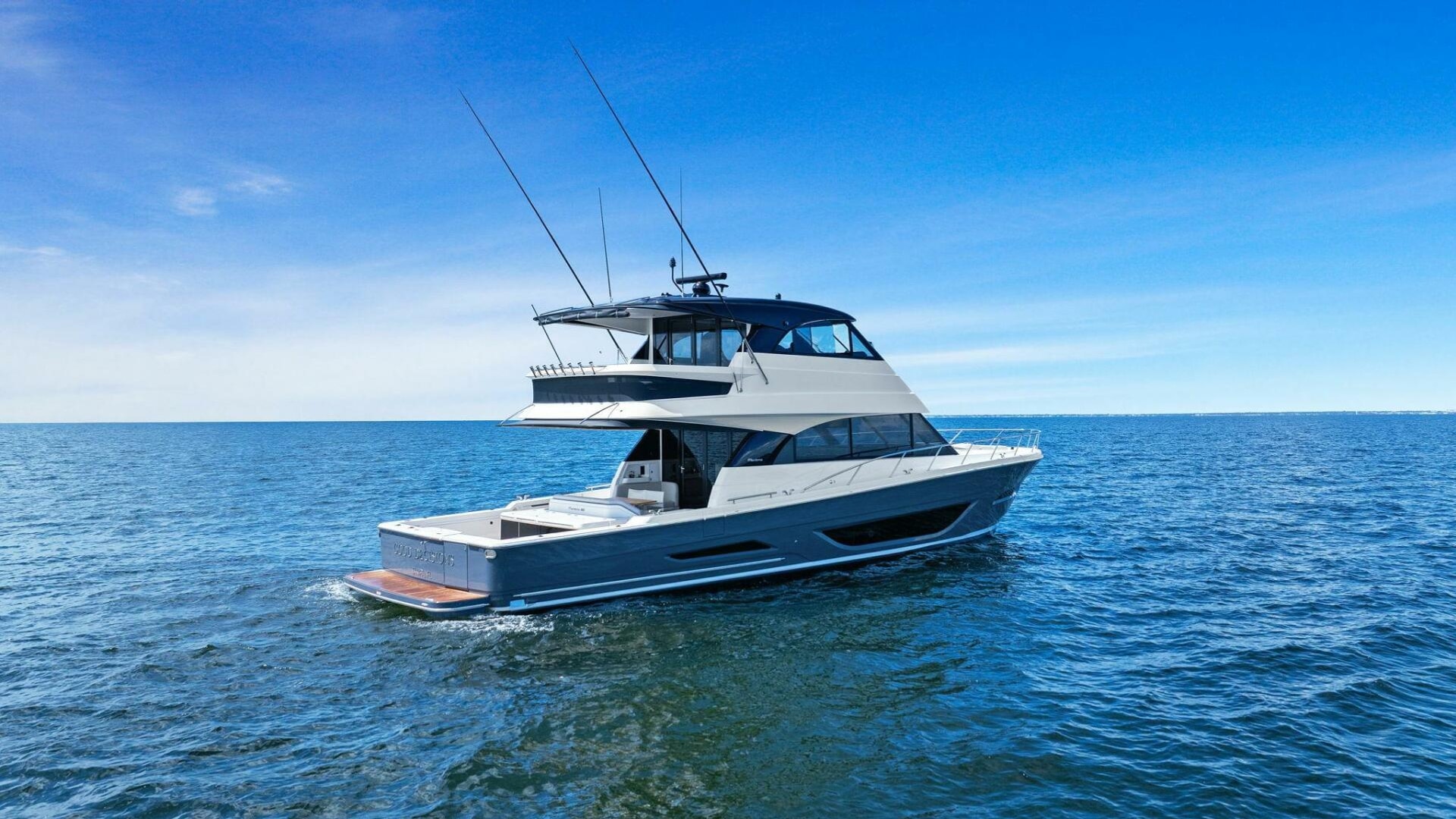 “Good Decisions” began life as a highly customized vessel for an avid boat owner who carefully selected every option, including a distinctive custom painted color scheme. Fitted with the largest engines available for this model — Scania DI 16 1,150 HP — she delivers commanding performance with effortless ease.