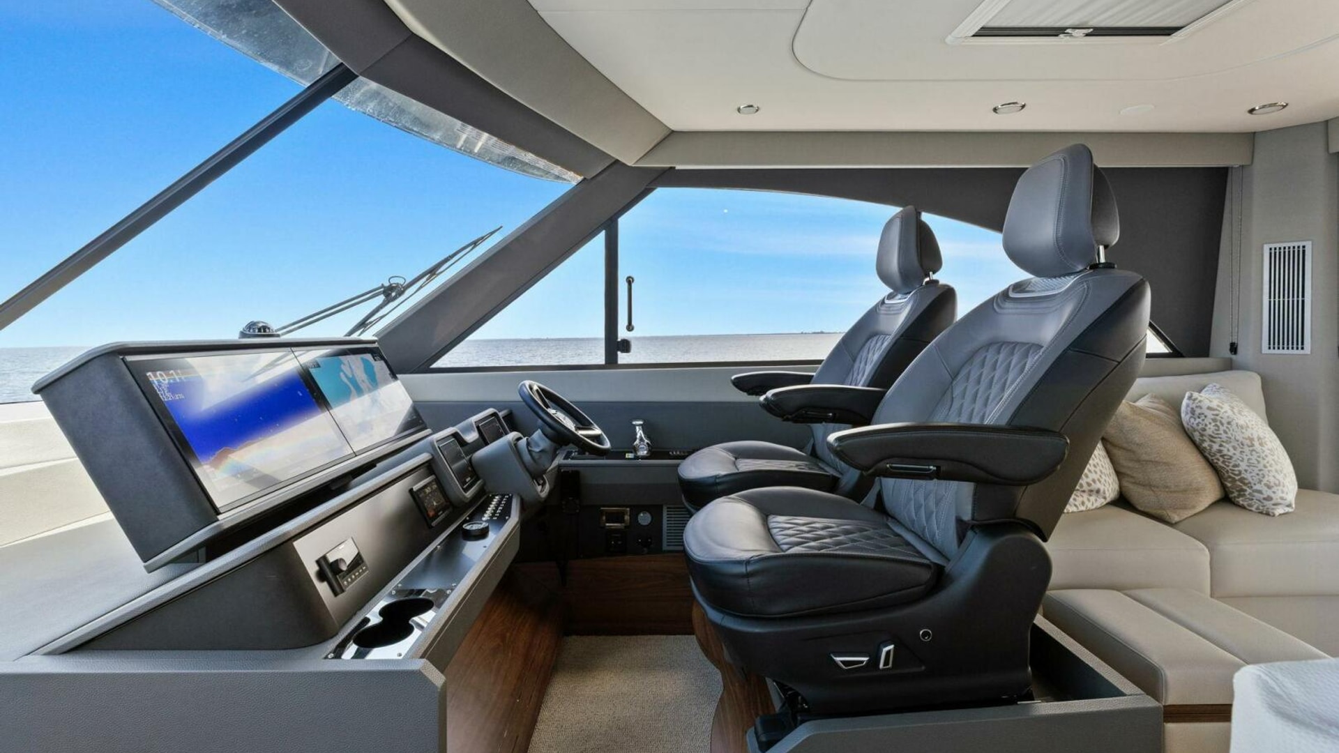 - Helm seat x 2 Electric up/down/fore/aft, recline and heating with wood footrests