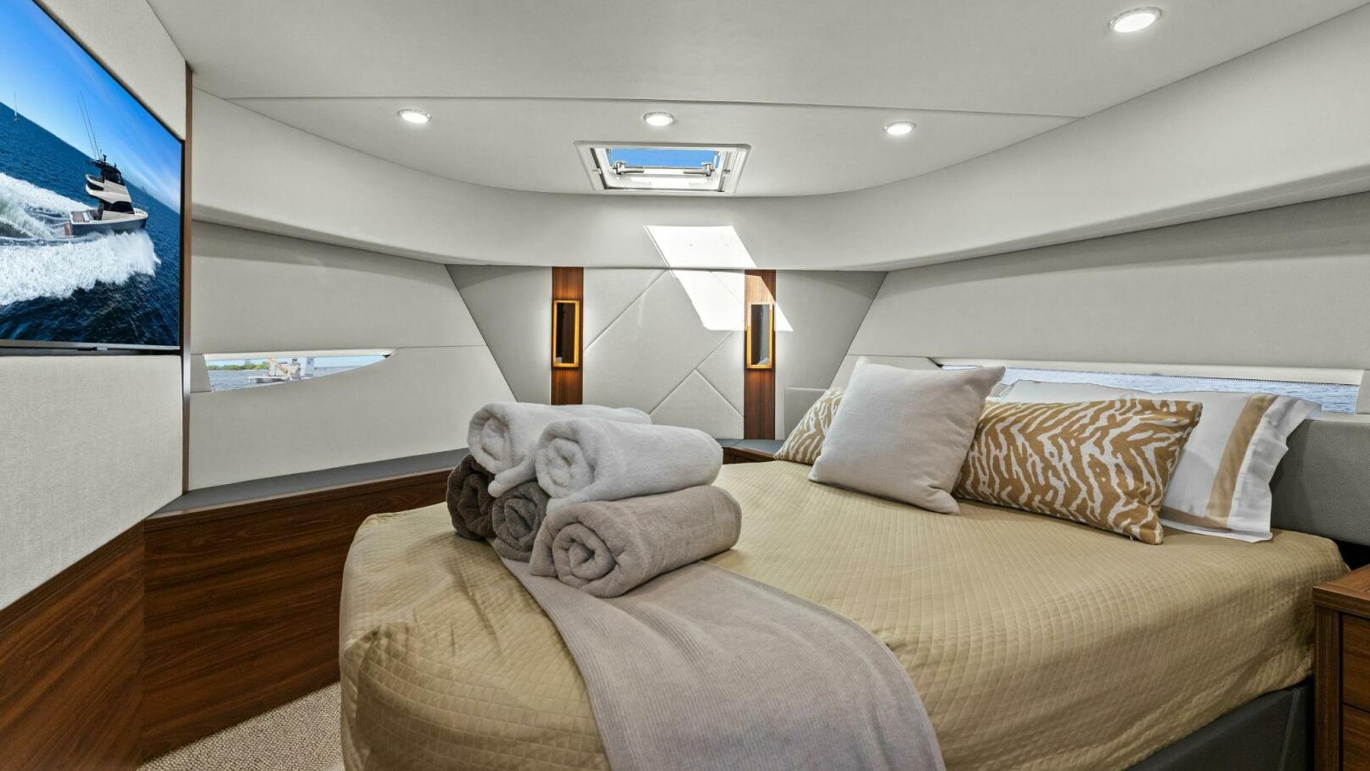 - Forward stateroom: 43" LED TV (fixed)