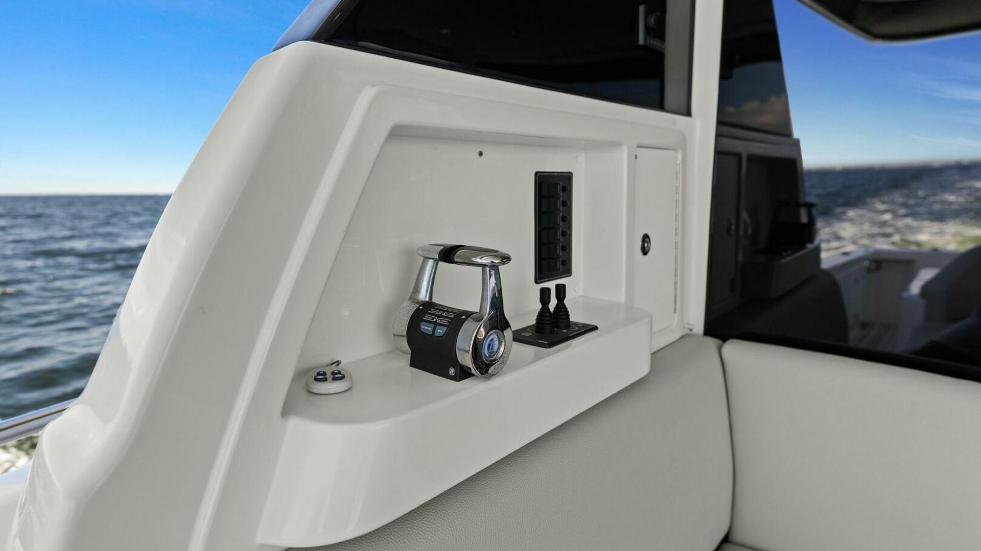 engine controls, engine instrumentation, bow and stern thruster control, trim tab controls, winch up/down controls, compass, 1 x navigation down light