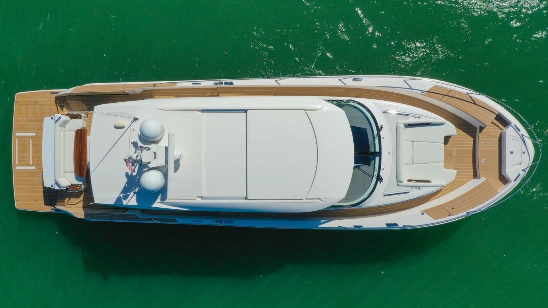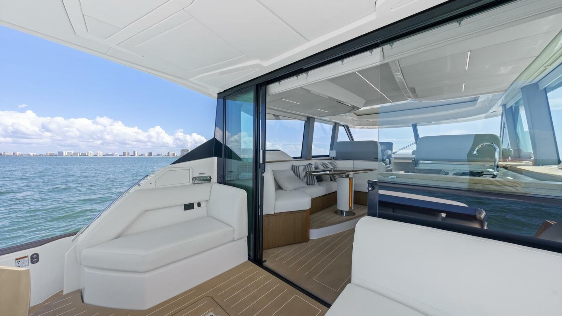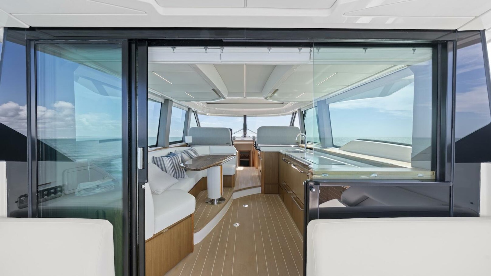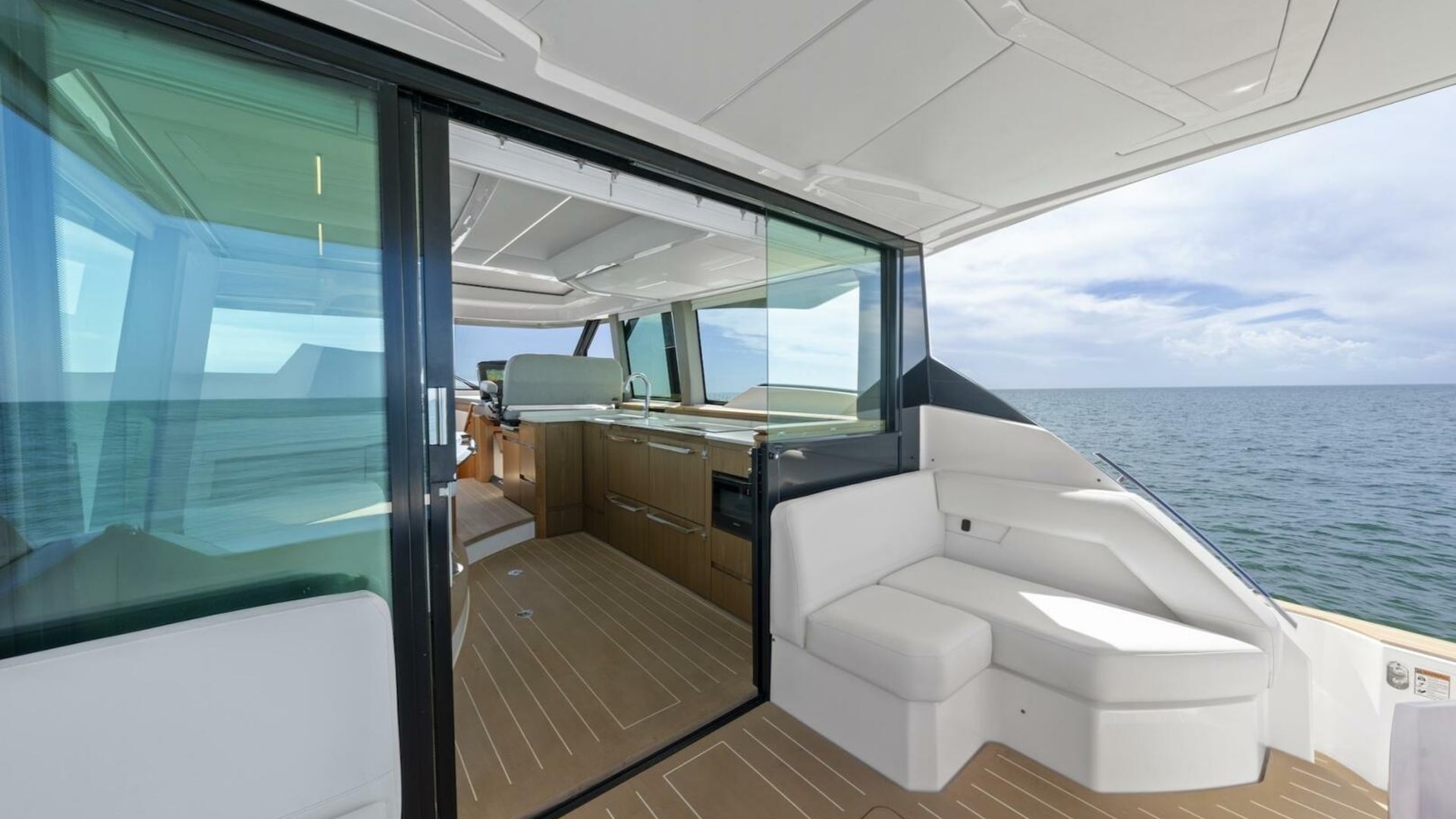 - Port and starboard hullside terraces with Herculan® synthetic teak flooring and integrated boarding doors