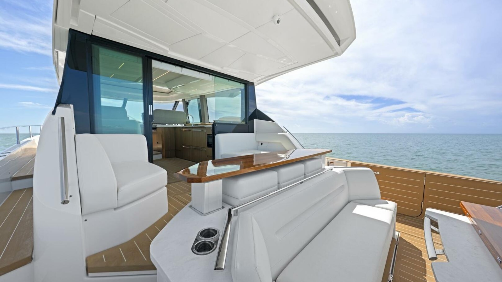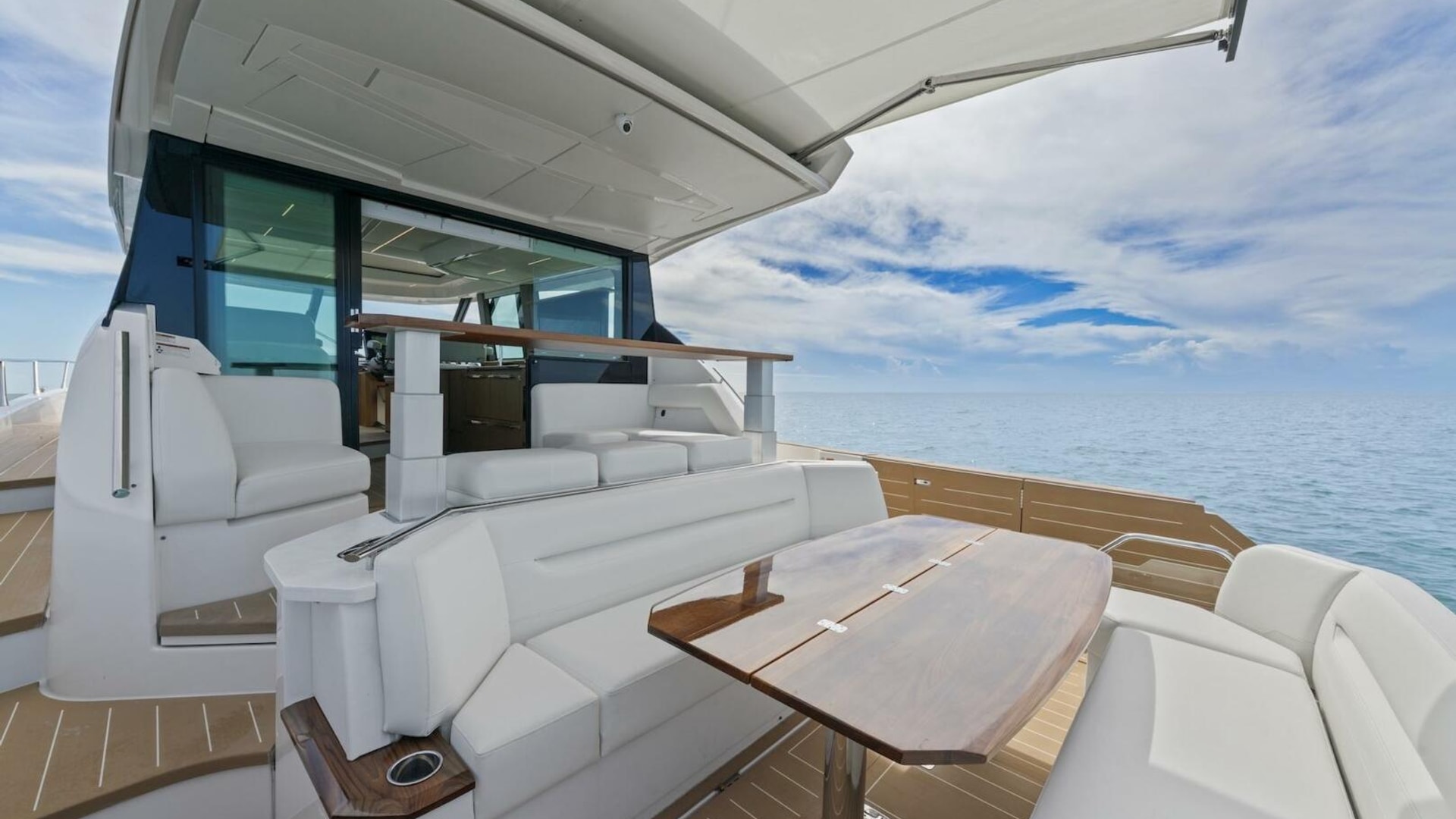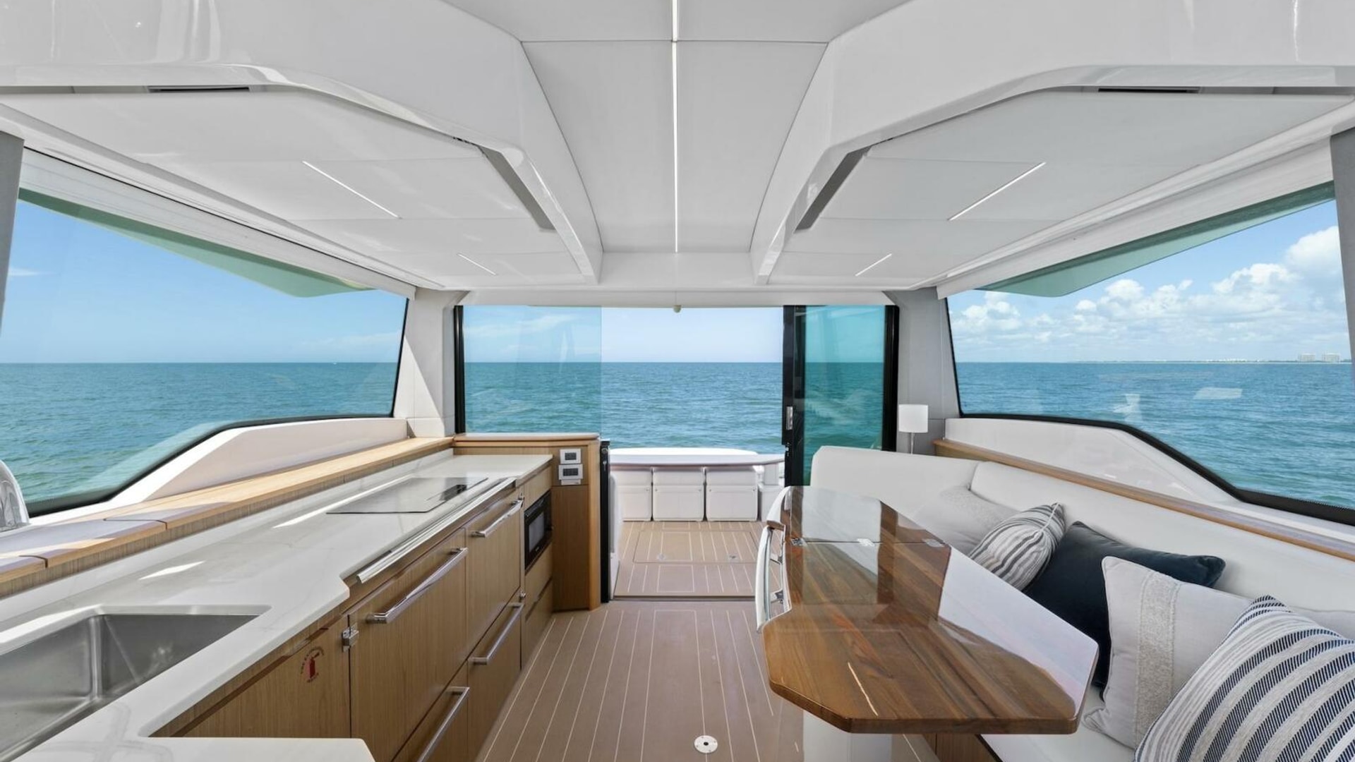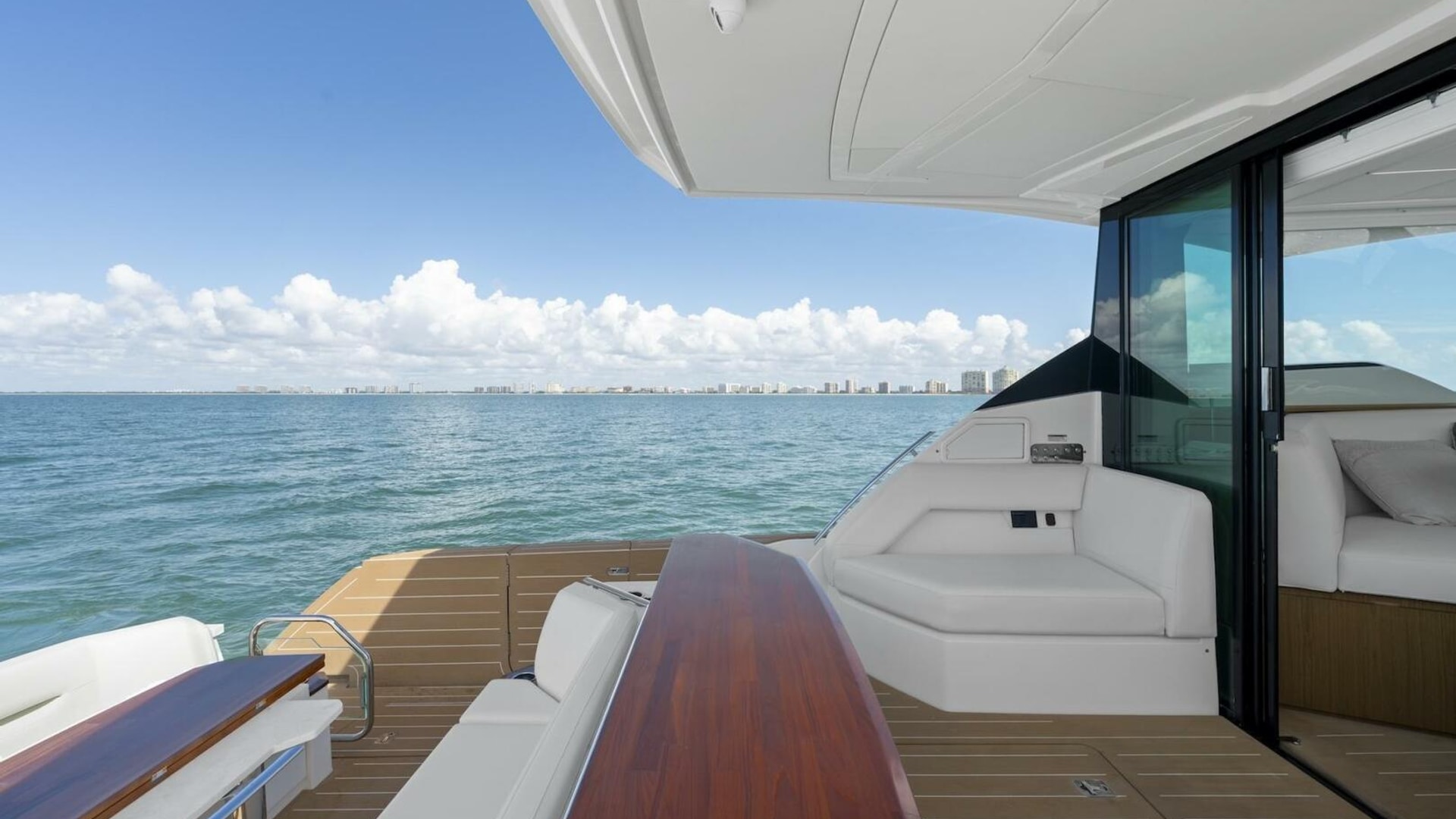 - Port and starboard hullside terraces with Herculan® synthetic teak flooring and integrated boarding doors