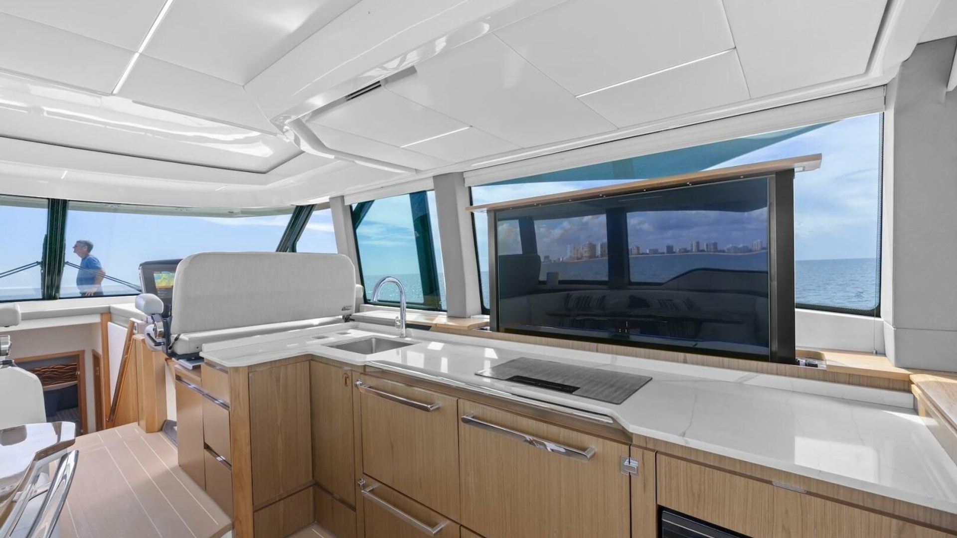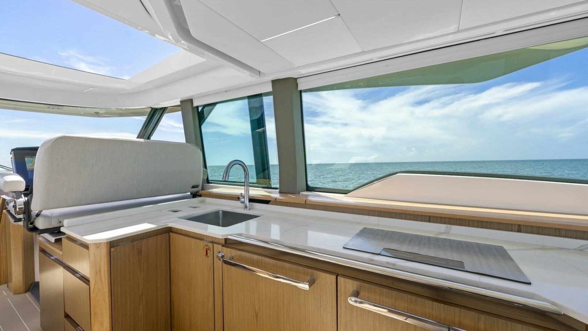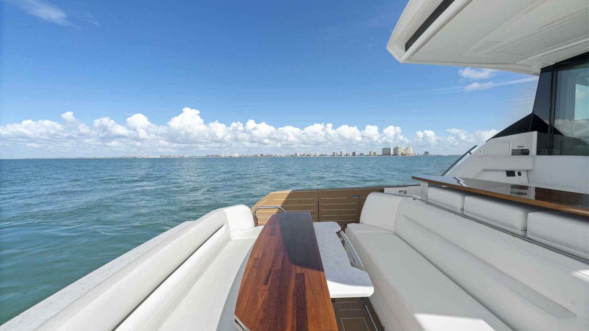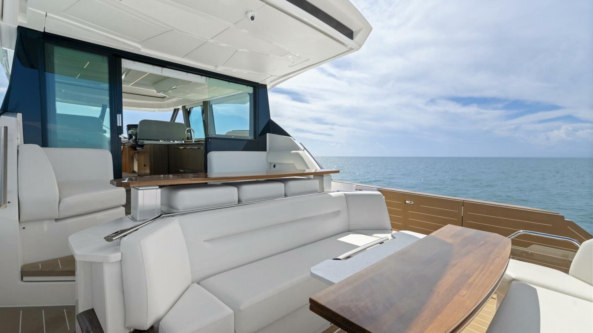 - Port and starboard hullside terraces with Herculan® synthetic teak flooring and integrated boarding doors