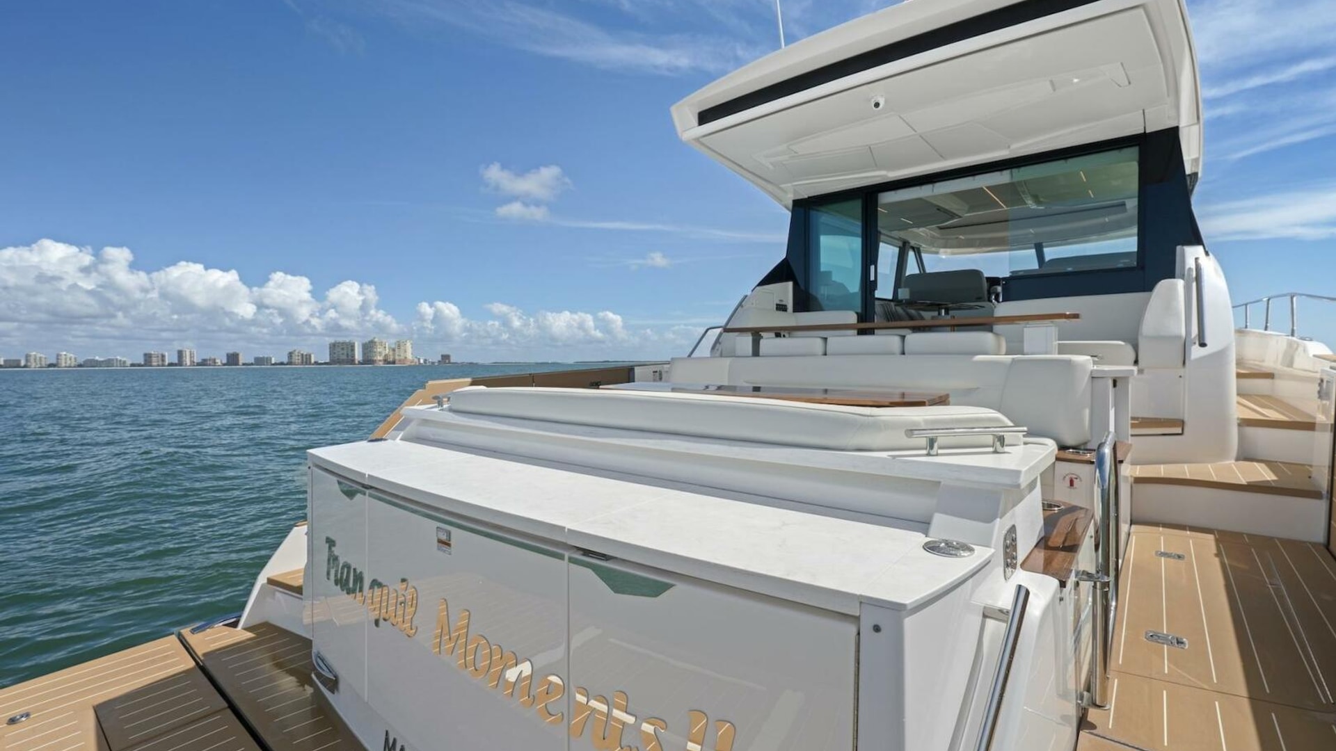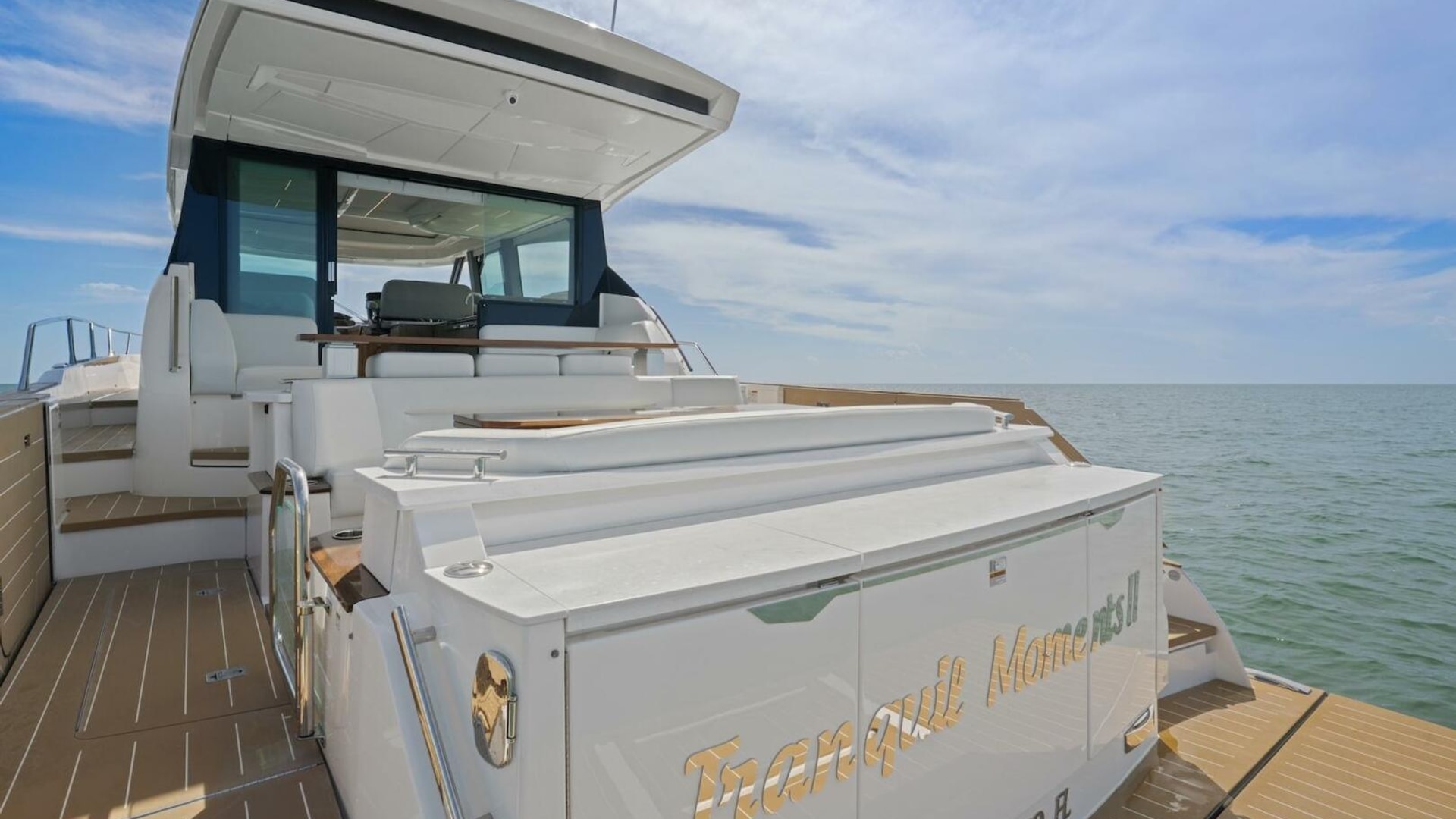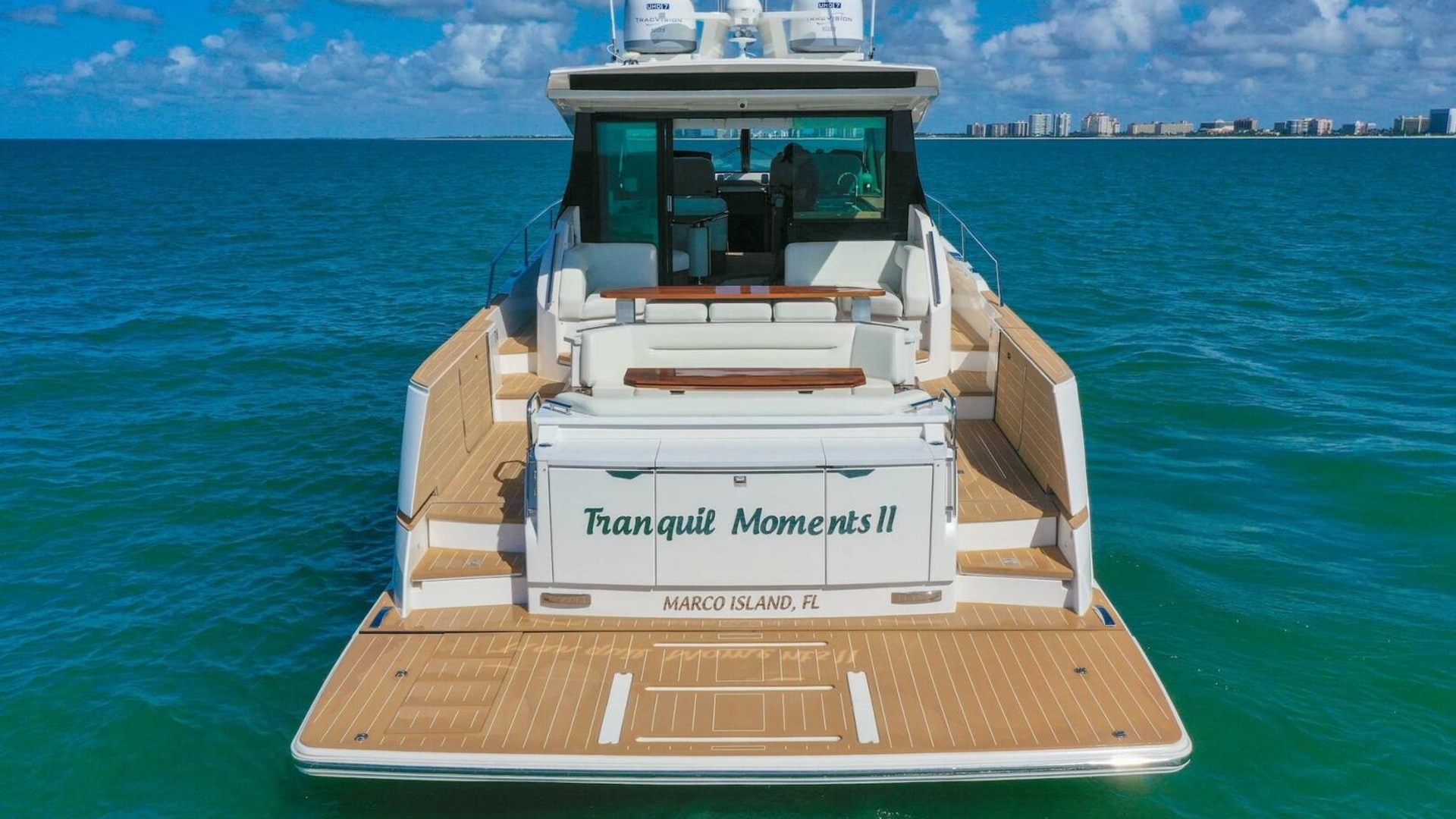 The 2023 Tiara EX 60 TRANQUIL MOMENTS II is very well‐designed, high‐quality luxury sport‐cruiser/entertainer and the EX 60 is the flagship of Tiara Yachts! The “EX” in the name denotes Exploration & eXperience! With a beautiful Flag Blue hull in like new condition, stored indoors in the summertime, Bow Thruster, Electro Sea Strainers, Seakeeper, FLIR. She combines large outdoor social spaces, premium interior accommodation, and strong performance with flexibility to match your boating style, whether day‑cruising with friends, overnighting in style, or a blend of both. This model blends a day‑boat/entertaining deck design with the comfort and cruising capability of a larger yacht. Designed with multiple cockpit modules and layouts so the owner can choose how the exterior spaces are configured (for lounging, fishing, entertaining, etc. The hull & deck structure are high‐end: infused fiberglass, with structural foam coring, a reinforced grid system and a sound‐insulated engine room. Featuring three staterooms and two heads. The main deck is designed for easy flow: large cockpit opens to salon, wide side decks, large bow lounge/sunpad area. With its large fuel/water capacities, comfortable staterooms and premium fit/finish, this yacht should be well suited for longer weekends or cruising beyond day‑use.