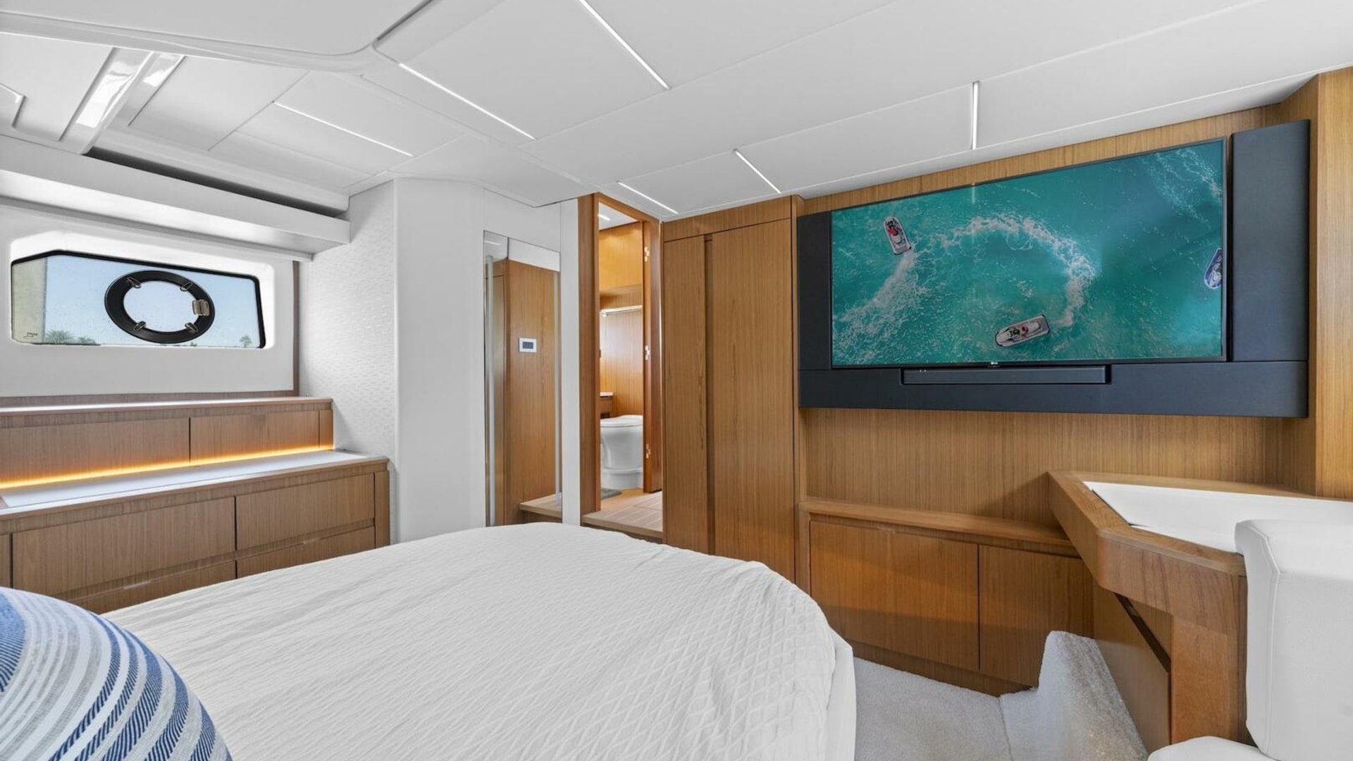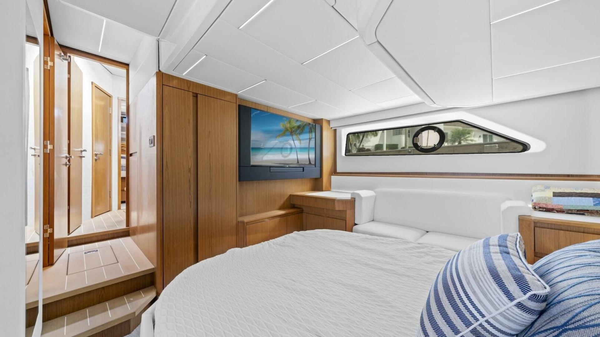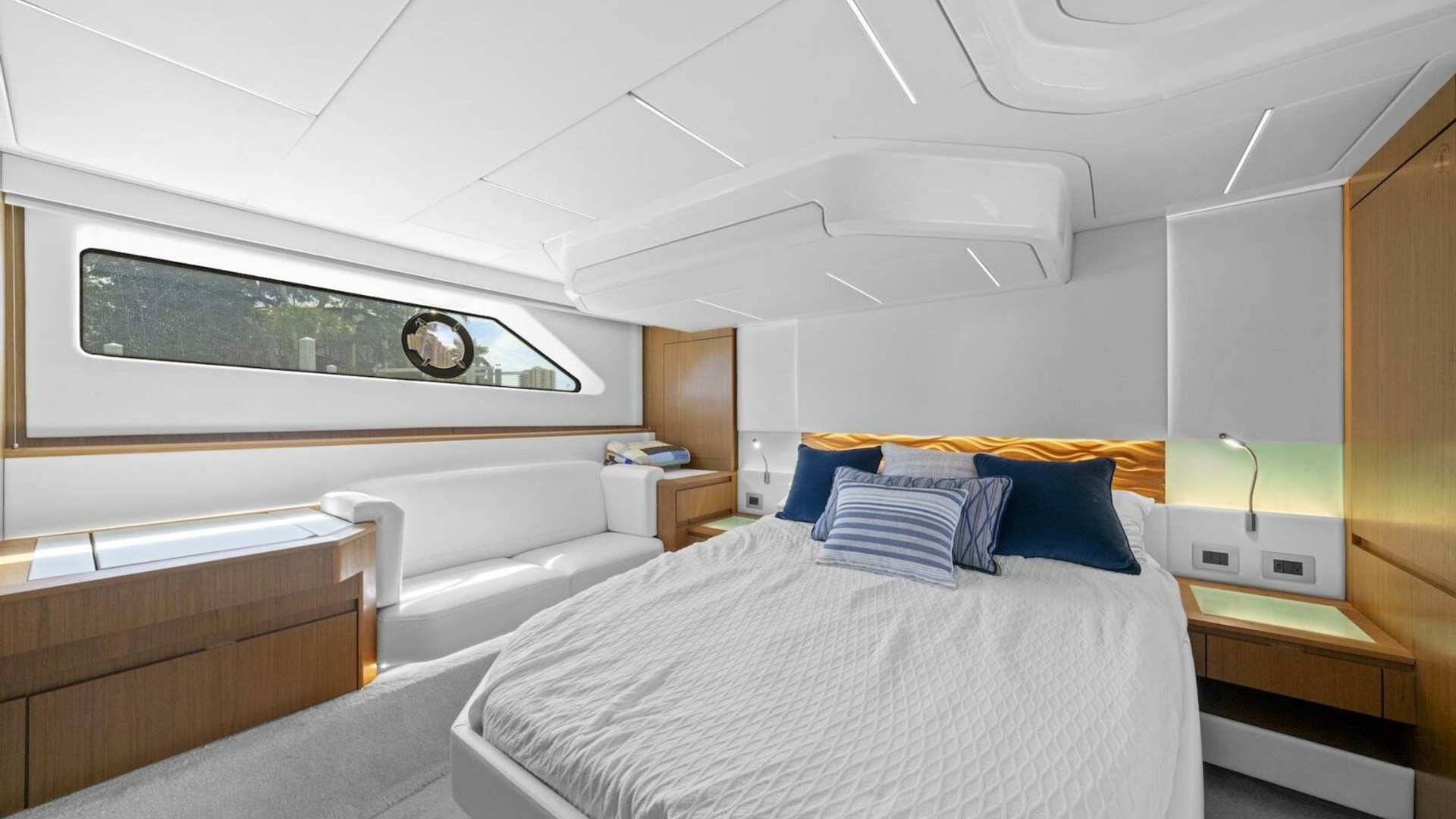 The 2023 Tiara EX 60 TRANQUIL MOMENTS II is very well‐designed, high‐quality luxury sport‐cruiser/entertainer and the EX 60 is the flagship of Tiara Yachts! The “EX” in the name denotes Exploration & eXperience! With a beautiful Flag Blue hull in like new condition, stored indoors in the summertime, Bow Thruster, Electro Sea Strainers, Seakeeper, FLIR. She combines large outdoor social spaces, premium interior accommodation, and strong performance with flexibility to match your boating style, whether day‑cruising with friends, overnighting in style, or a blend of both. This model blends a day‑boat/entertaining deck design with the comfort and cruising capability of a larger yacht. Designed with multiple cockpit modules and layouts so the owner can choose how the exterior spaces are configured (for lounging, fishing, entertaining, etc. The hull & deck structure are high‐end: infused fiberglass, with structural foam coring, a reinforced grid system and a sound‐insulated engine room. Featuring three staterooms and two heads. The main deck is designed for easy flow: large cockpit opens to salon, wide side decks, large bow lounge/sunpad area. With its large fuel/water capacities, comfortable staterooms and premium fit/finish, this yacht should be well suited for longer weekends or cruising beyond day‑use.