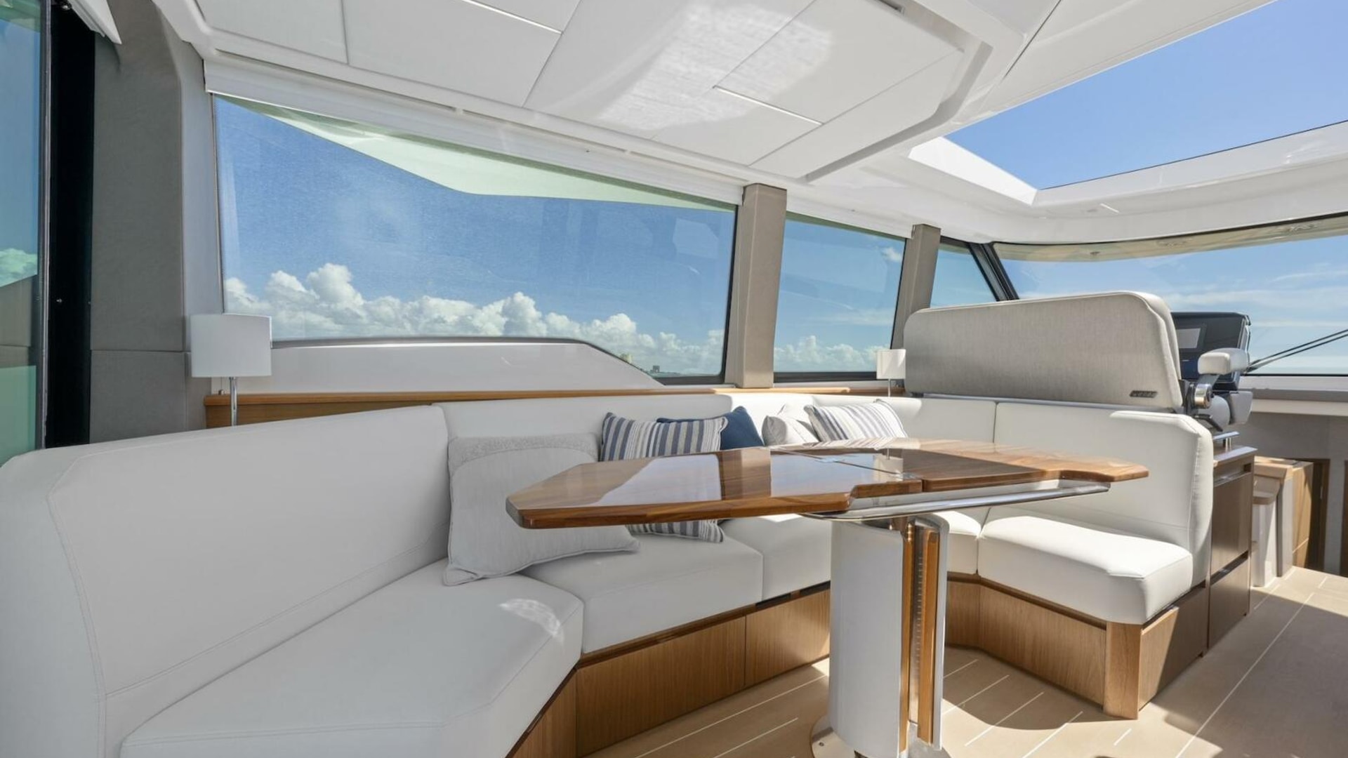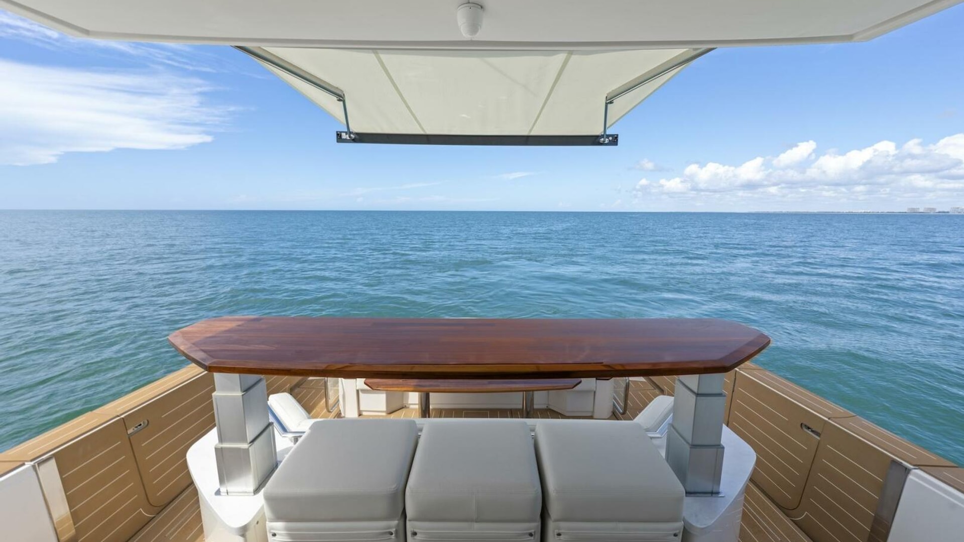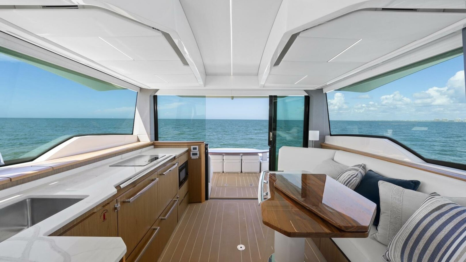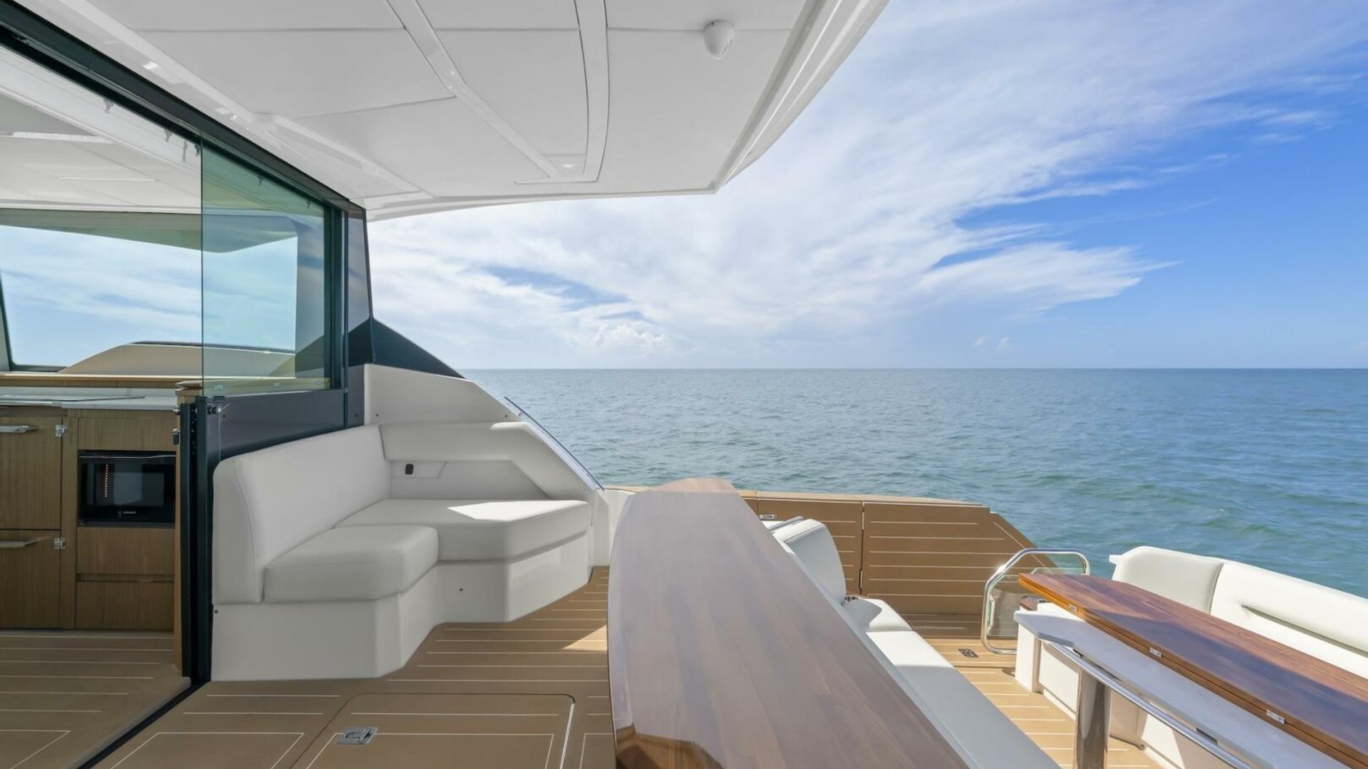 - Herculan® synthetic teak flooring and accents in bow seating area