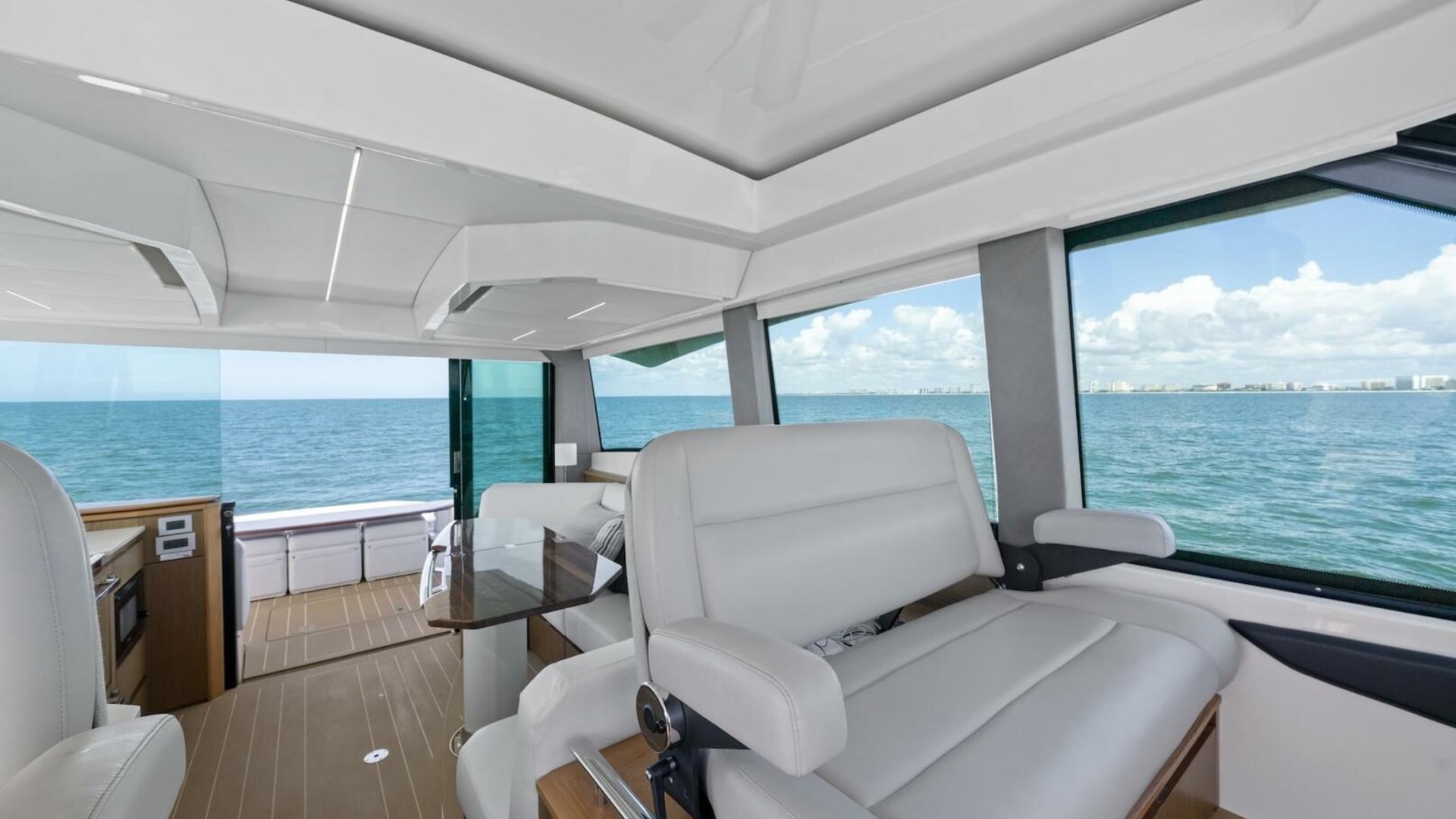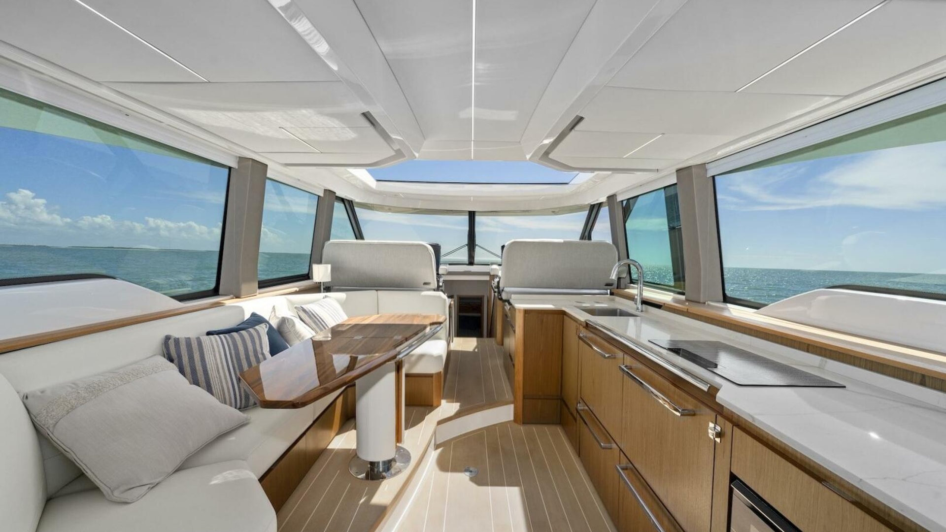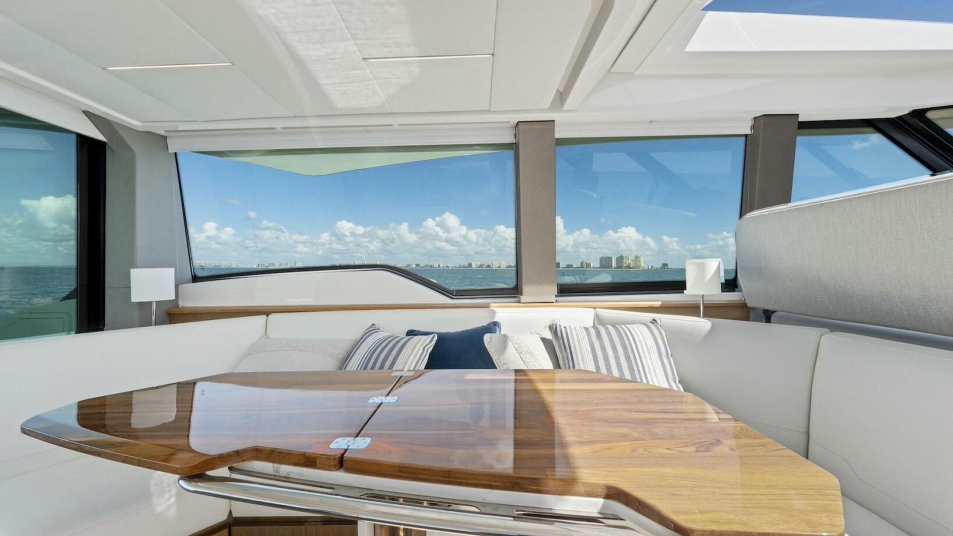 - Herculan® synthetic teak flooring and accents in bow seating area