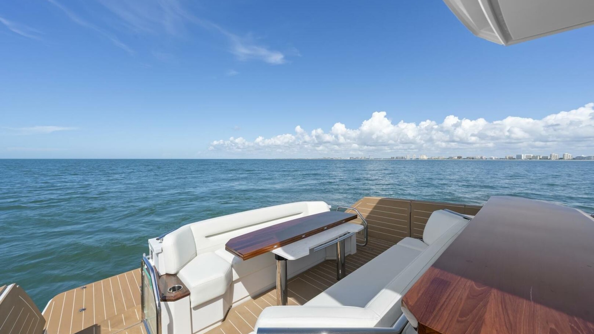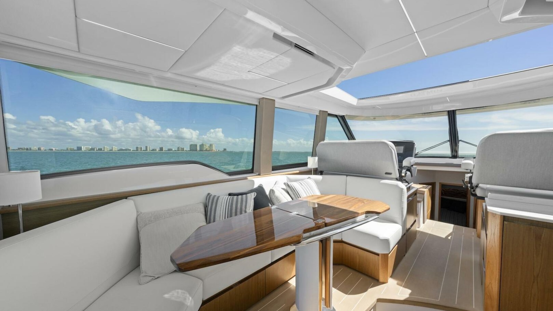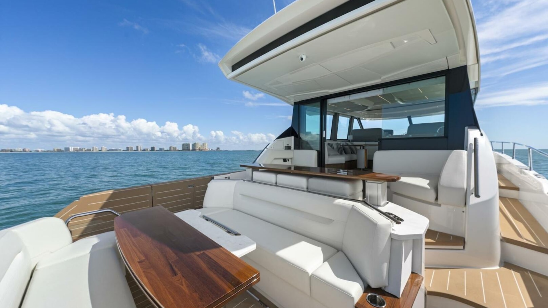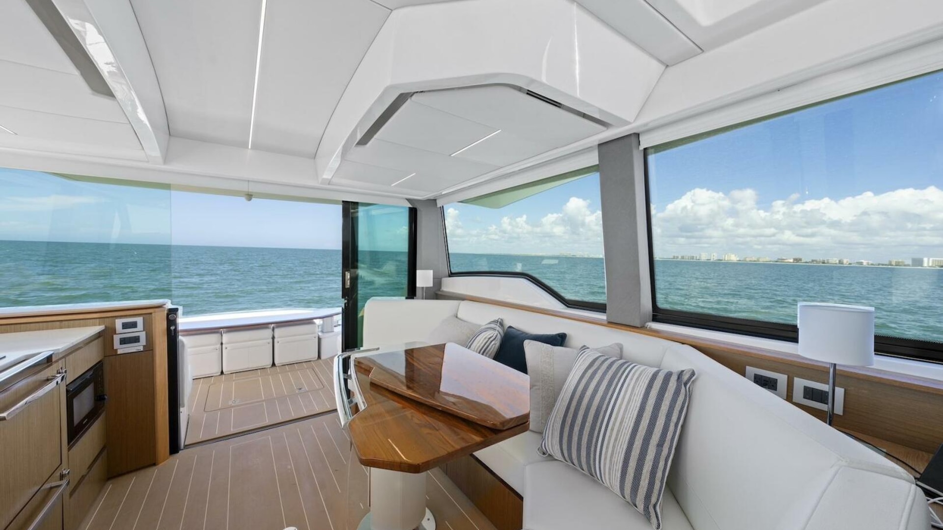 - Herculan® synthetic teak flooring and accents in bow seating area