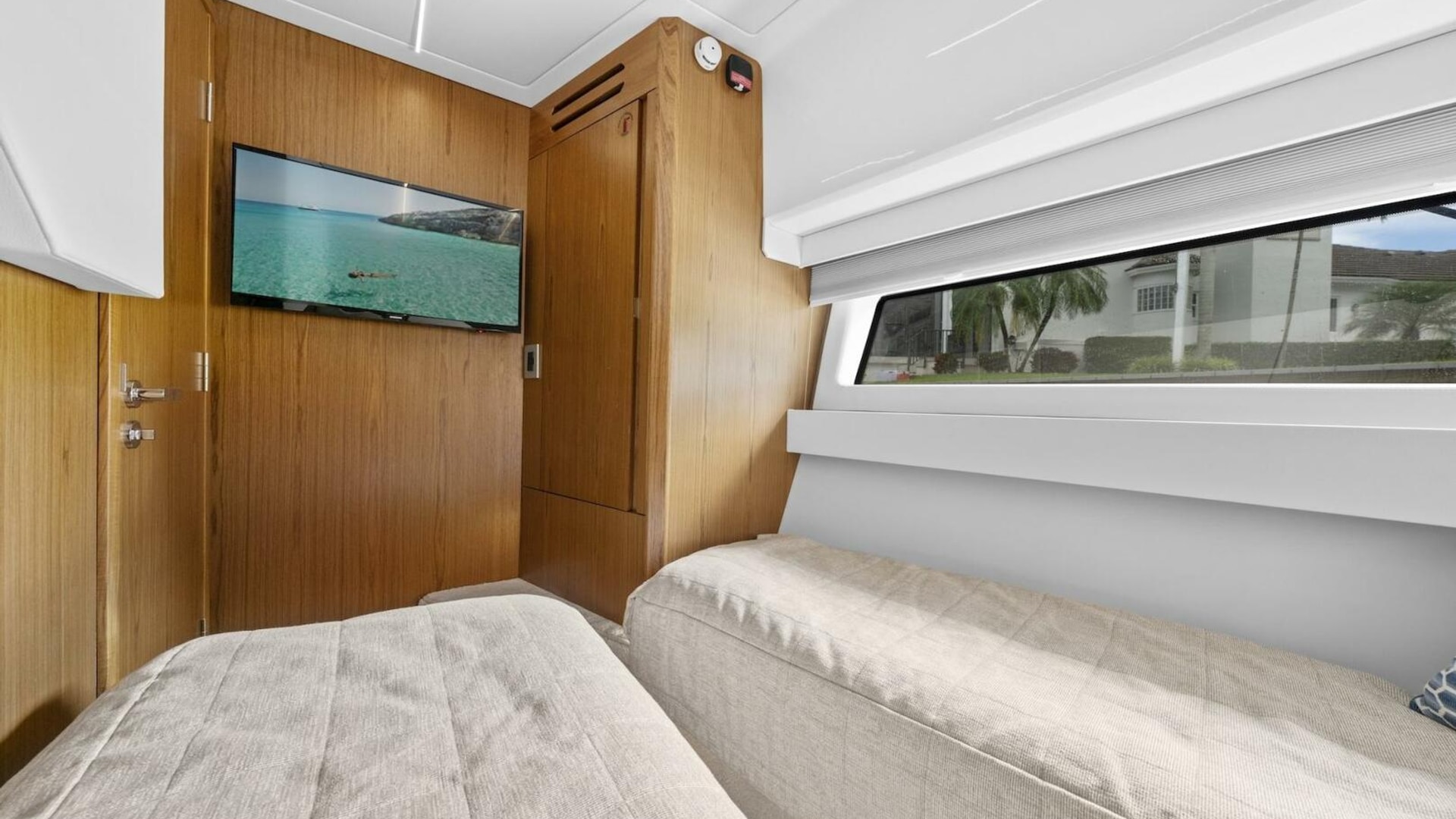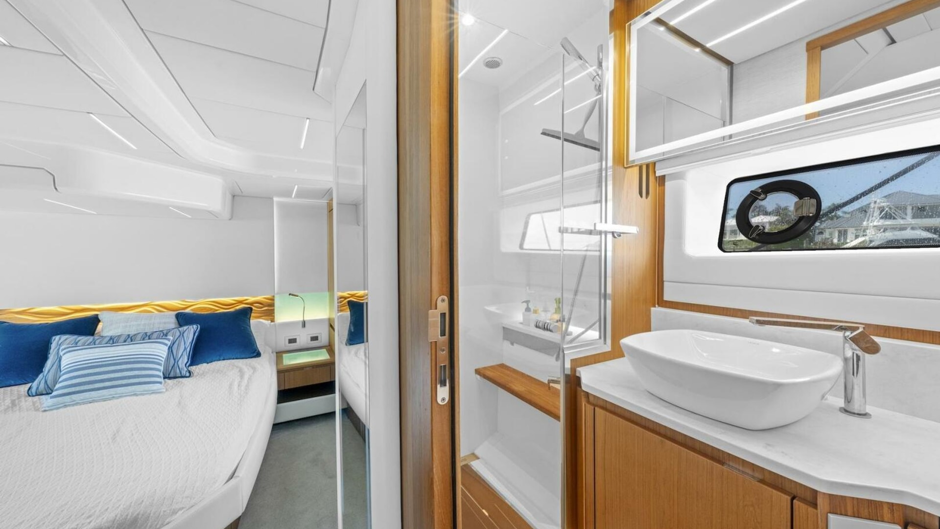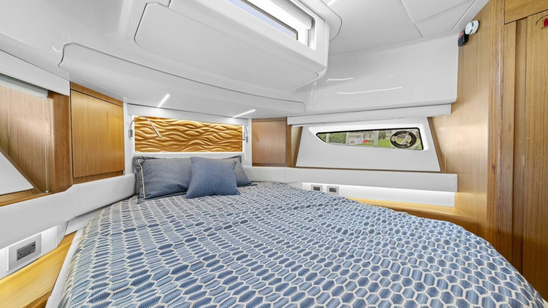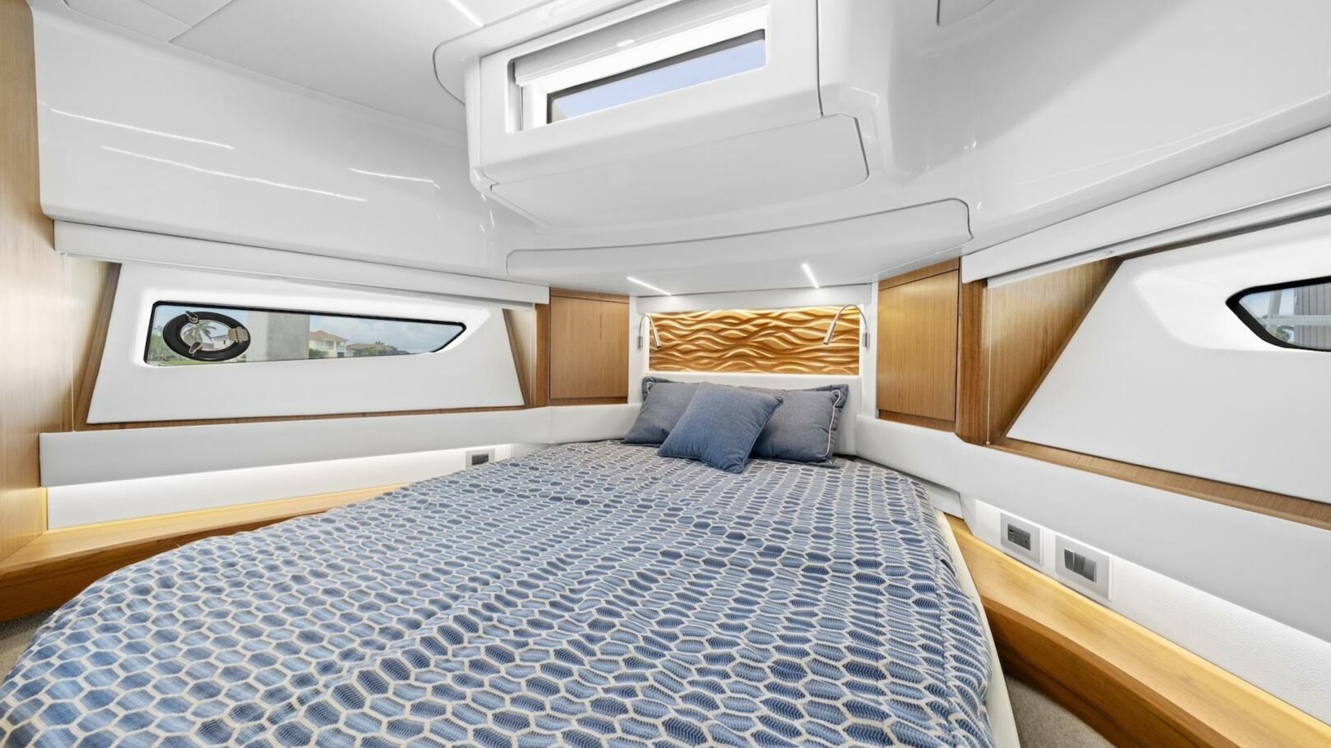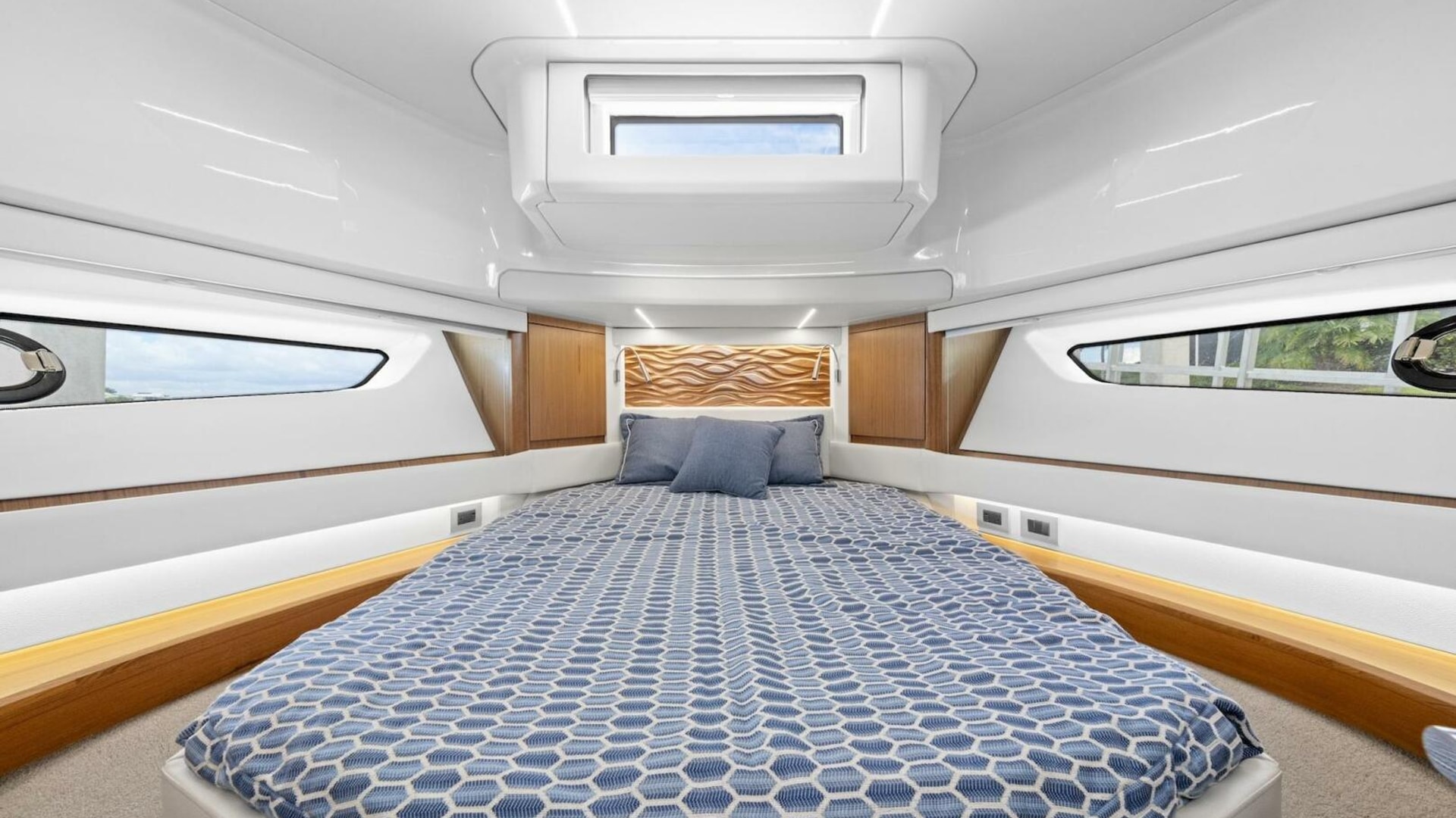 - Storage compartments in port and starboard bow with dedicated locations for fenders, lines and equipment