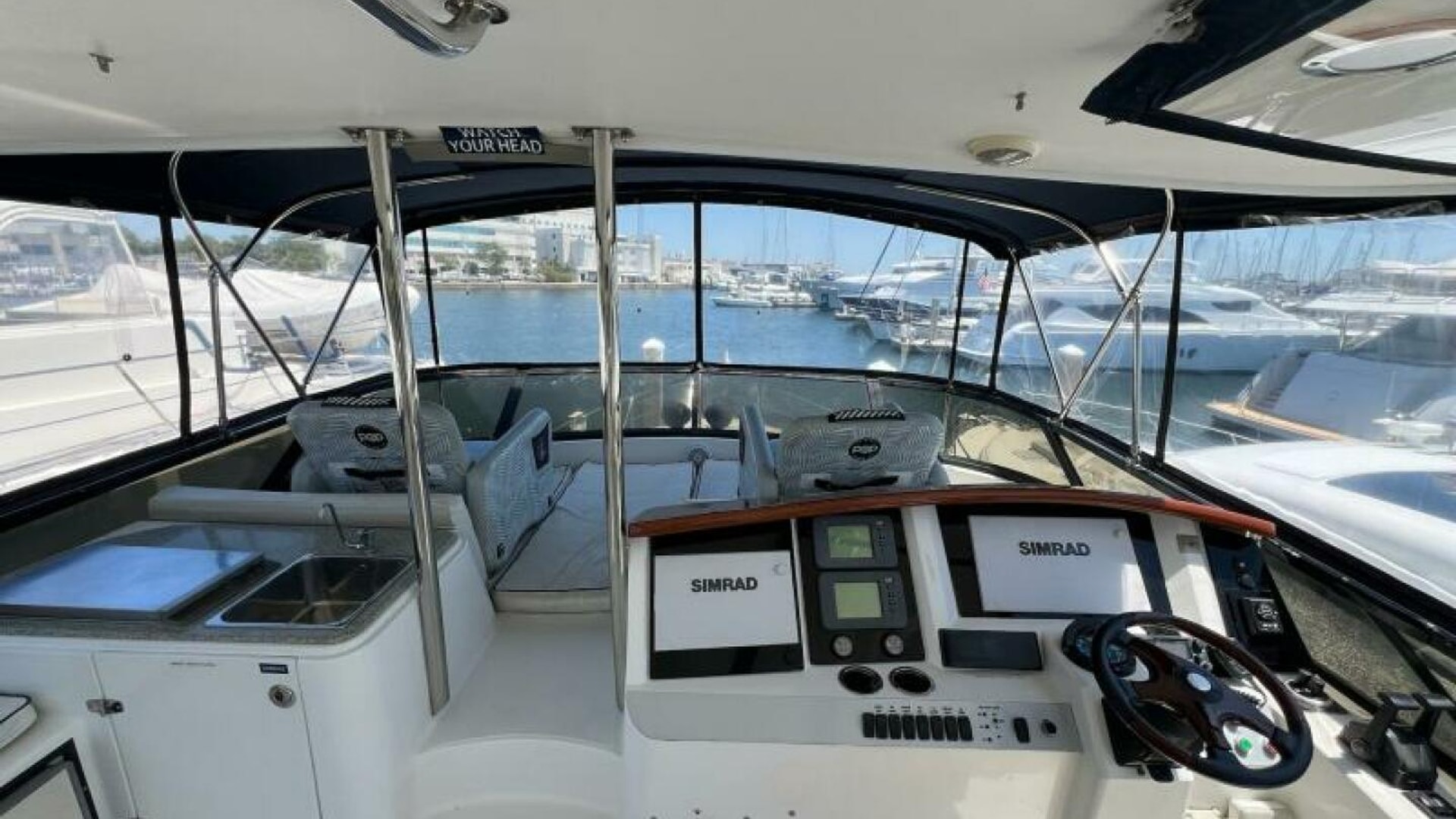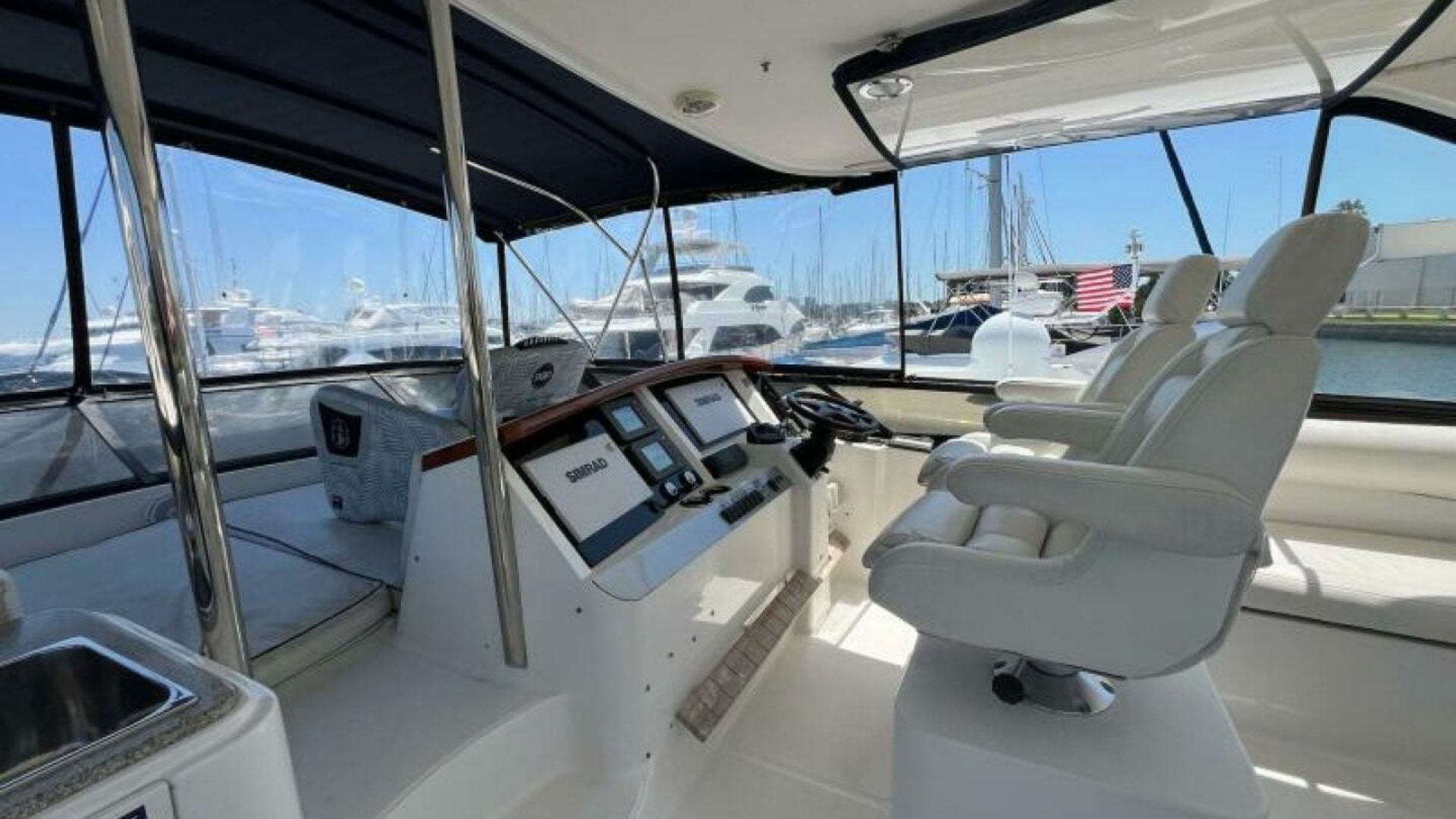 Dual helm stations—upper and lower—give you flexibility in any weather, and updated Simrad electronics ensure you’re fully equipped for safe, modern navigation.
