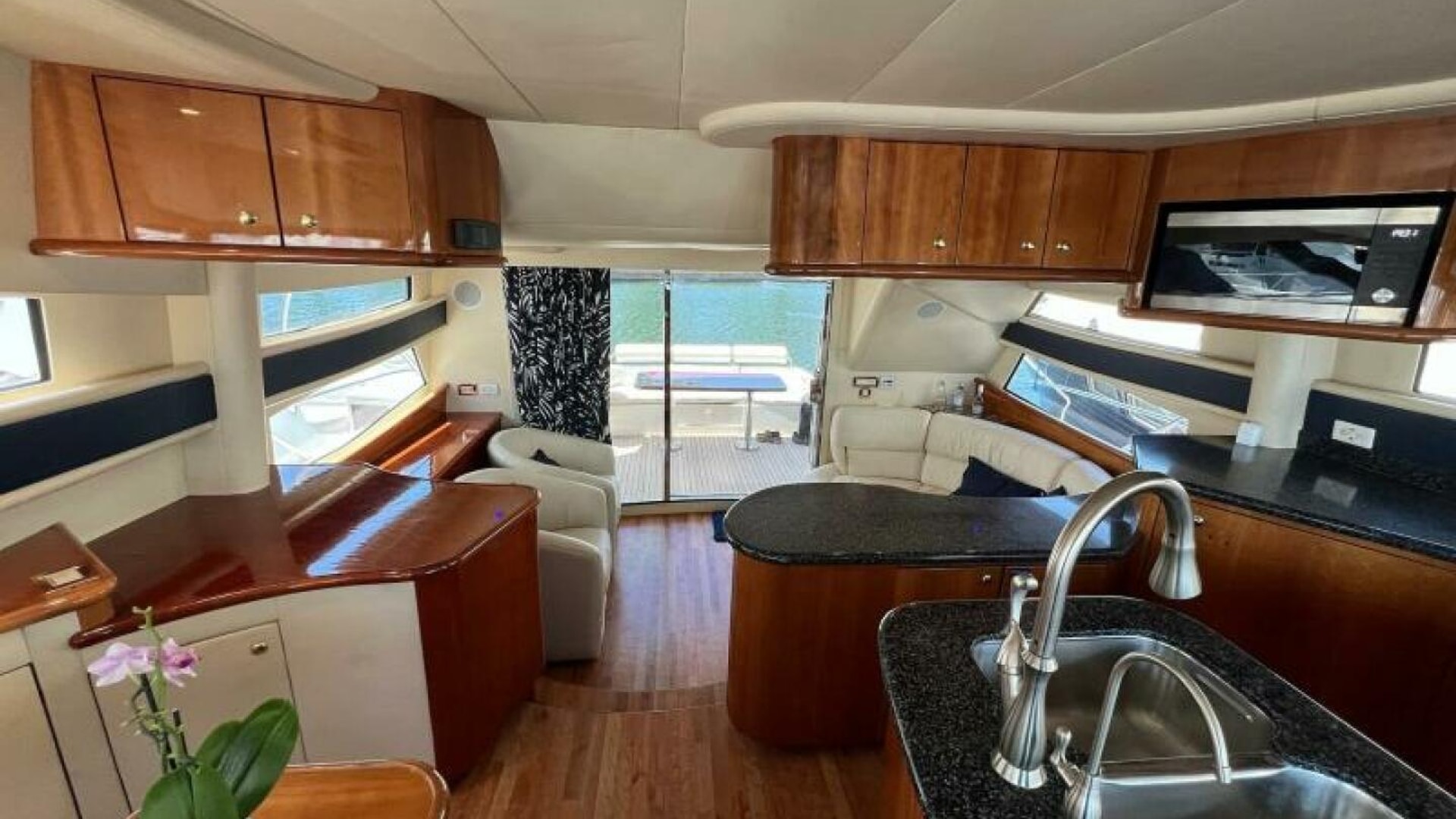 - Lounge-style seating forward of Helm