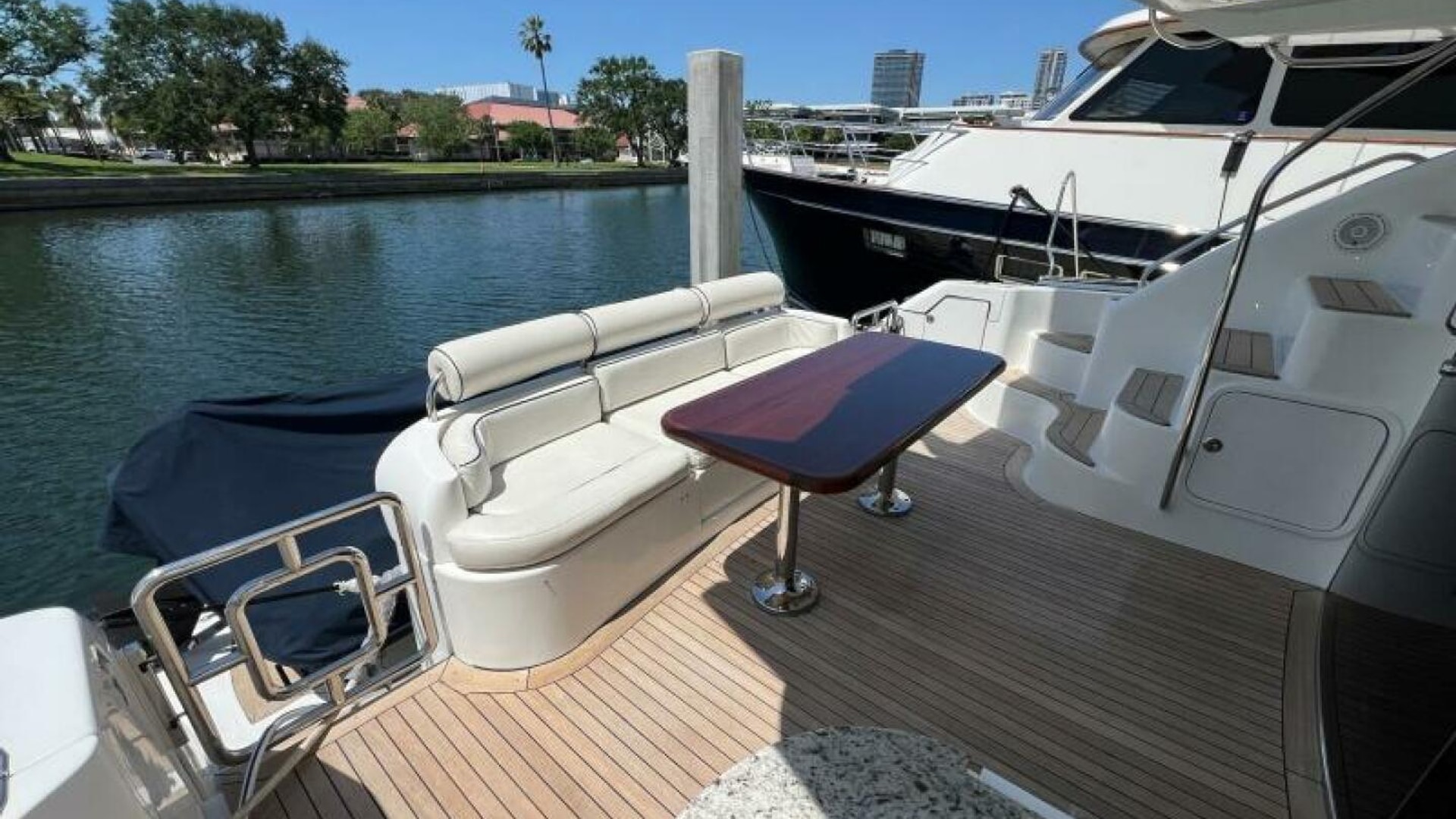 Featuring a 3-stateroom, 2-head layout, this yacht provides generous accommodations for extended cruising or liveaboard comfort. The interior is bright and open with warm wood finishes, a spacious salon, and a well-equipped galley designed for entertaining.