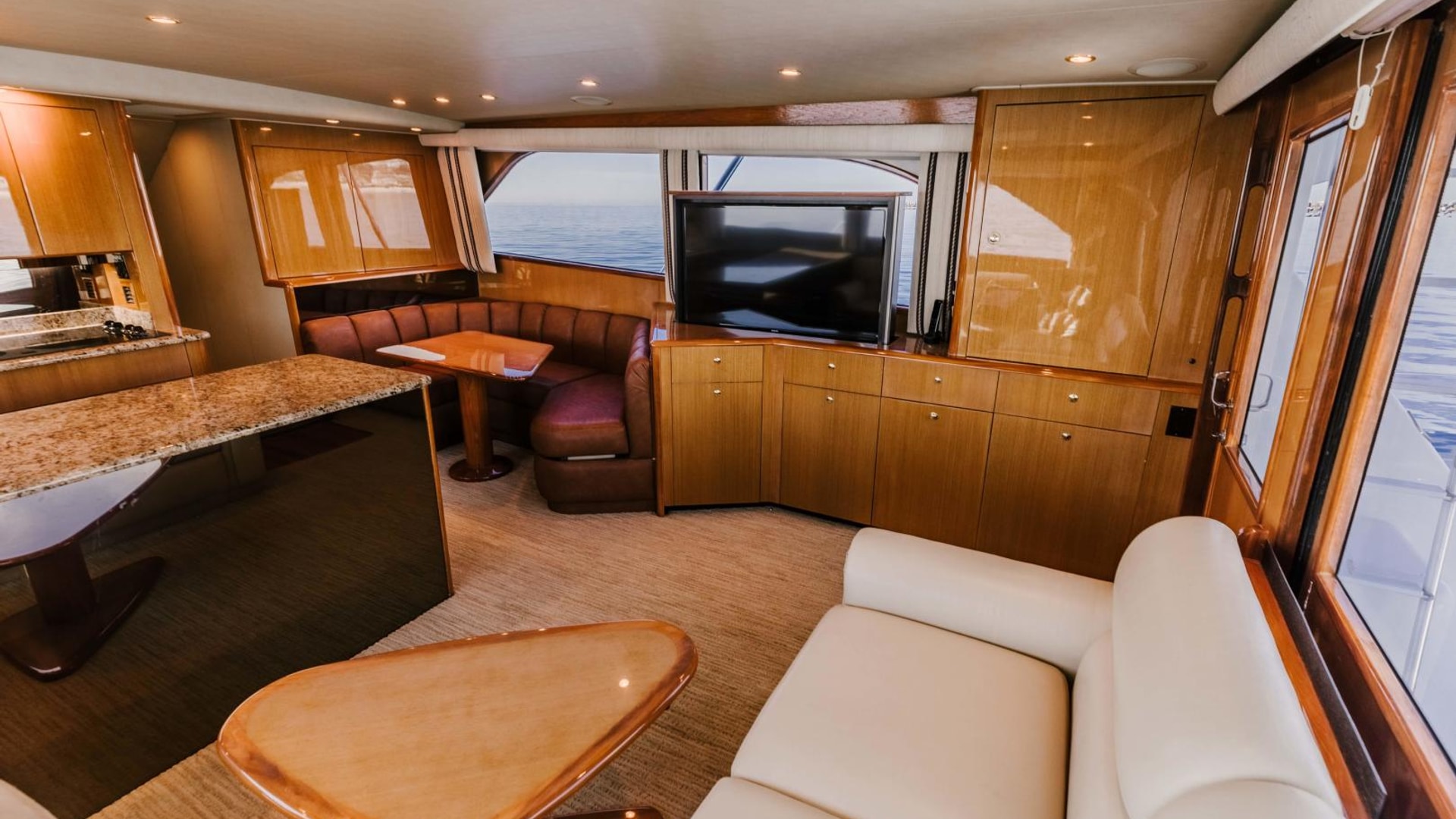- Custom headliner material throughout vessel