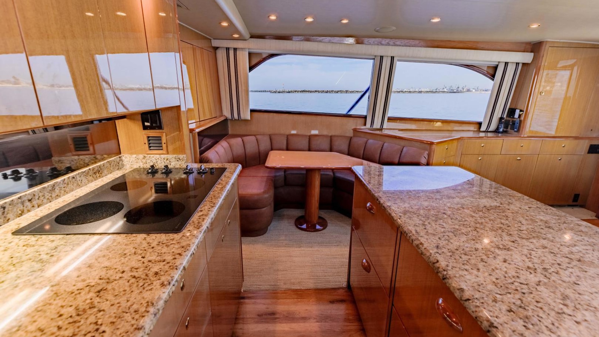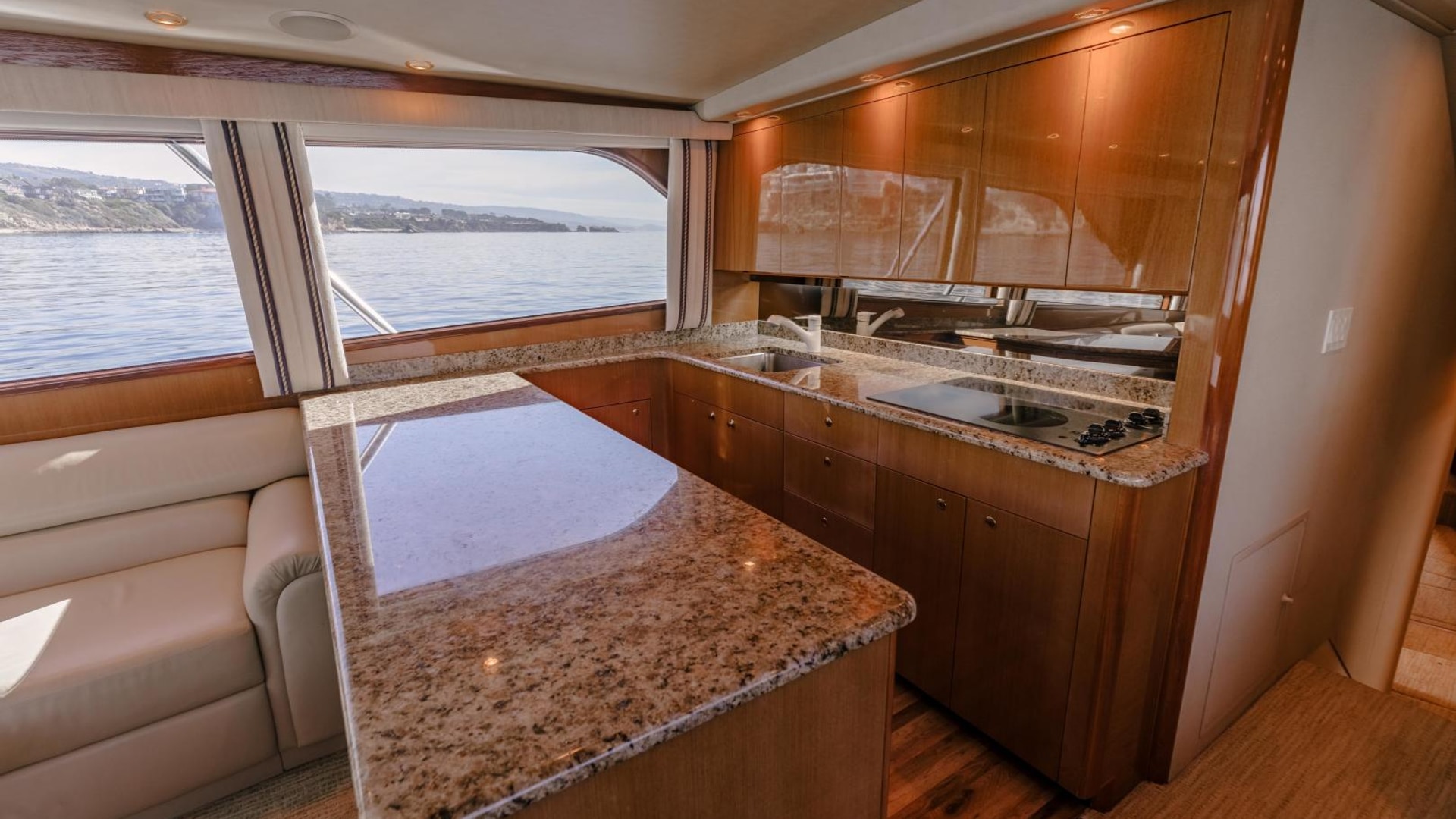 - Oversized glass cooktop in galley
