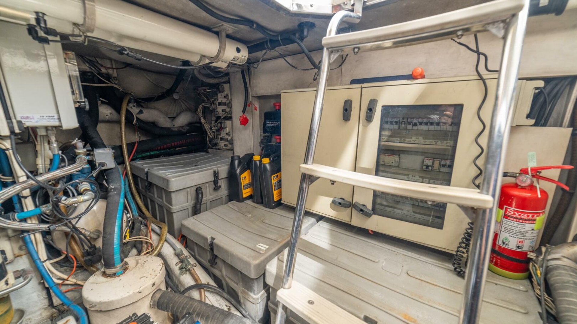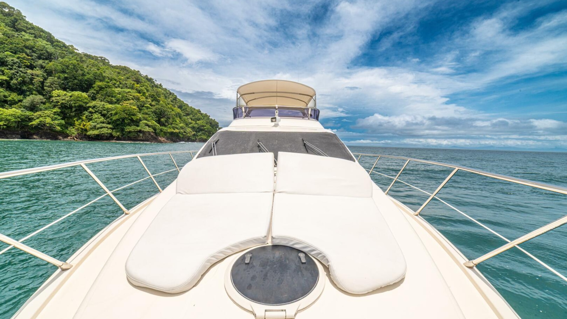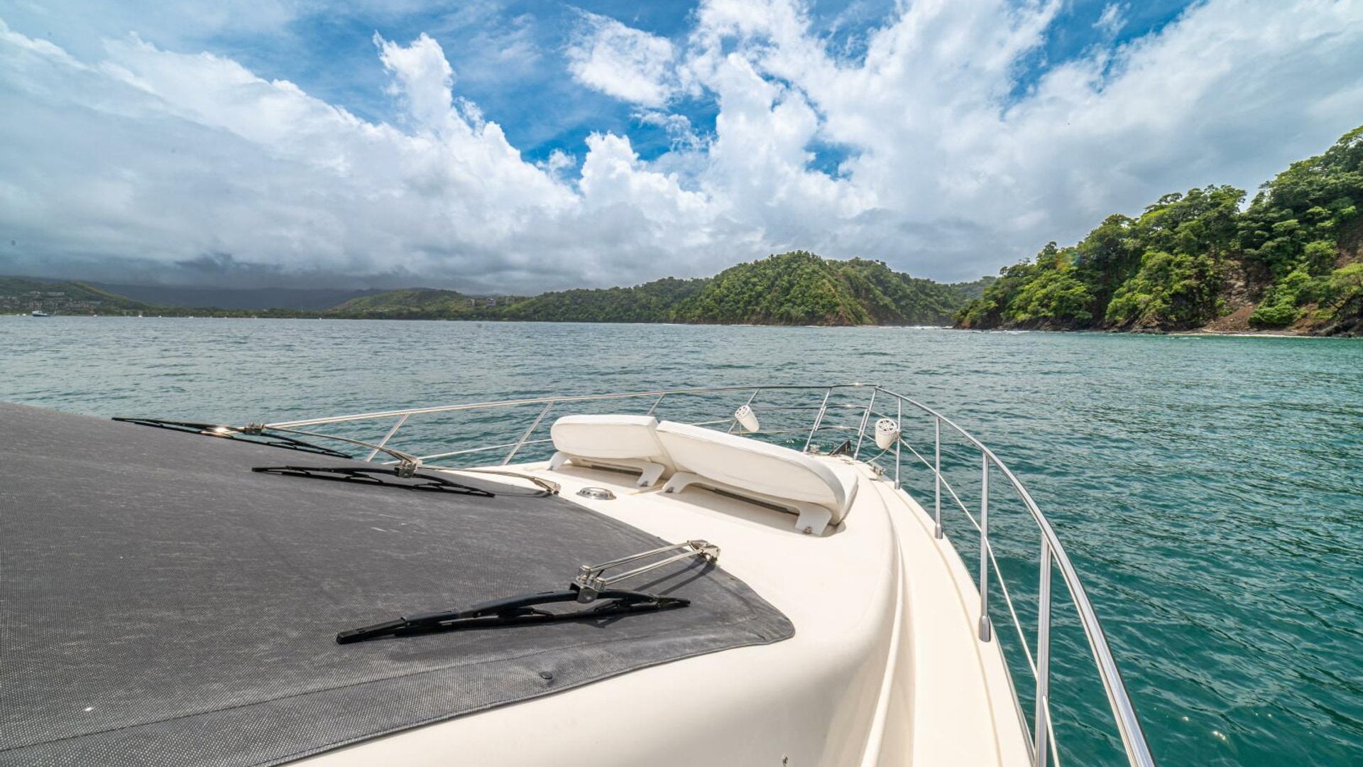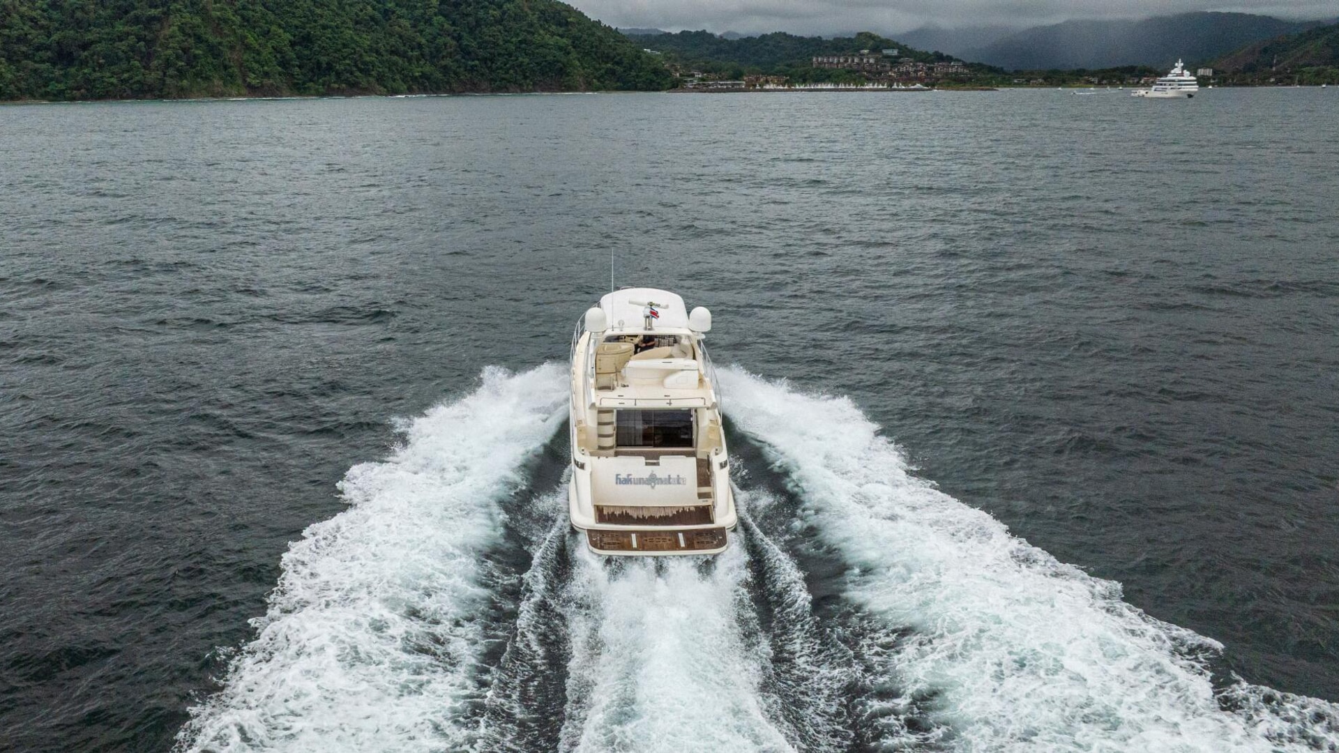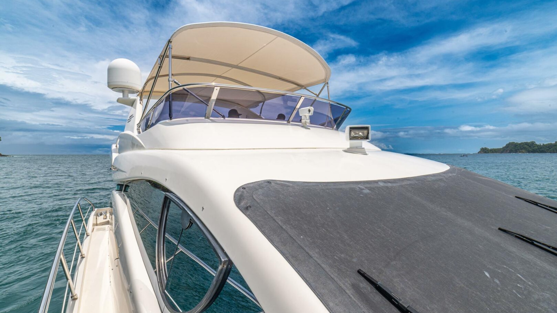 Three cabins with a full beam master, double VIP and third cabin with twin berths. Cherry wood finishing with cream color carpets throughout.