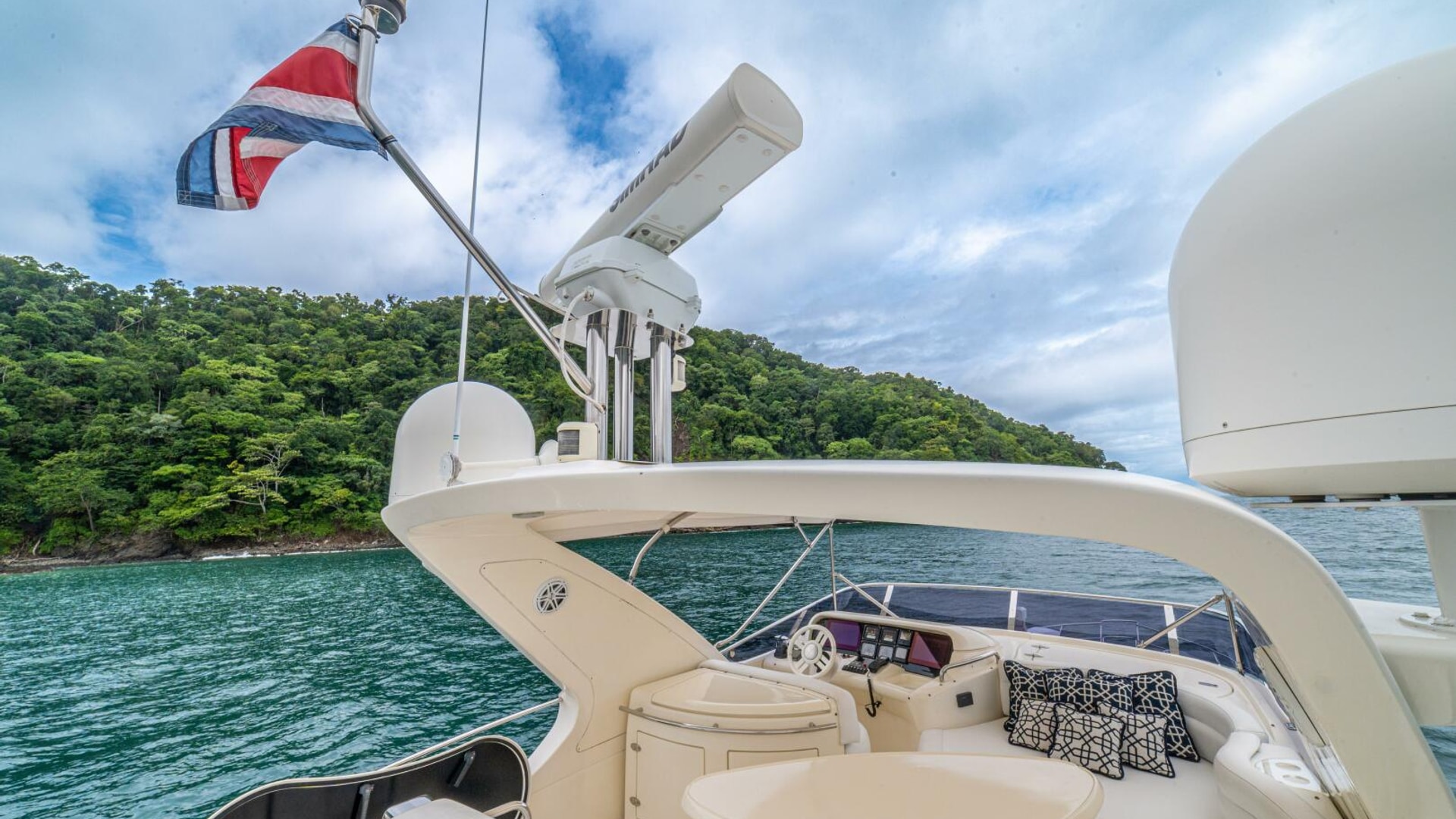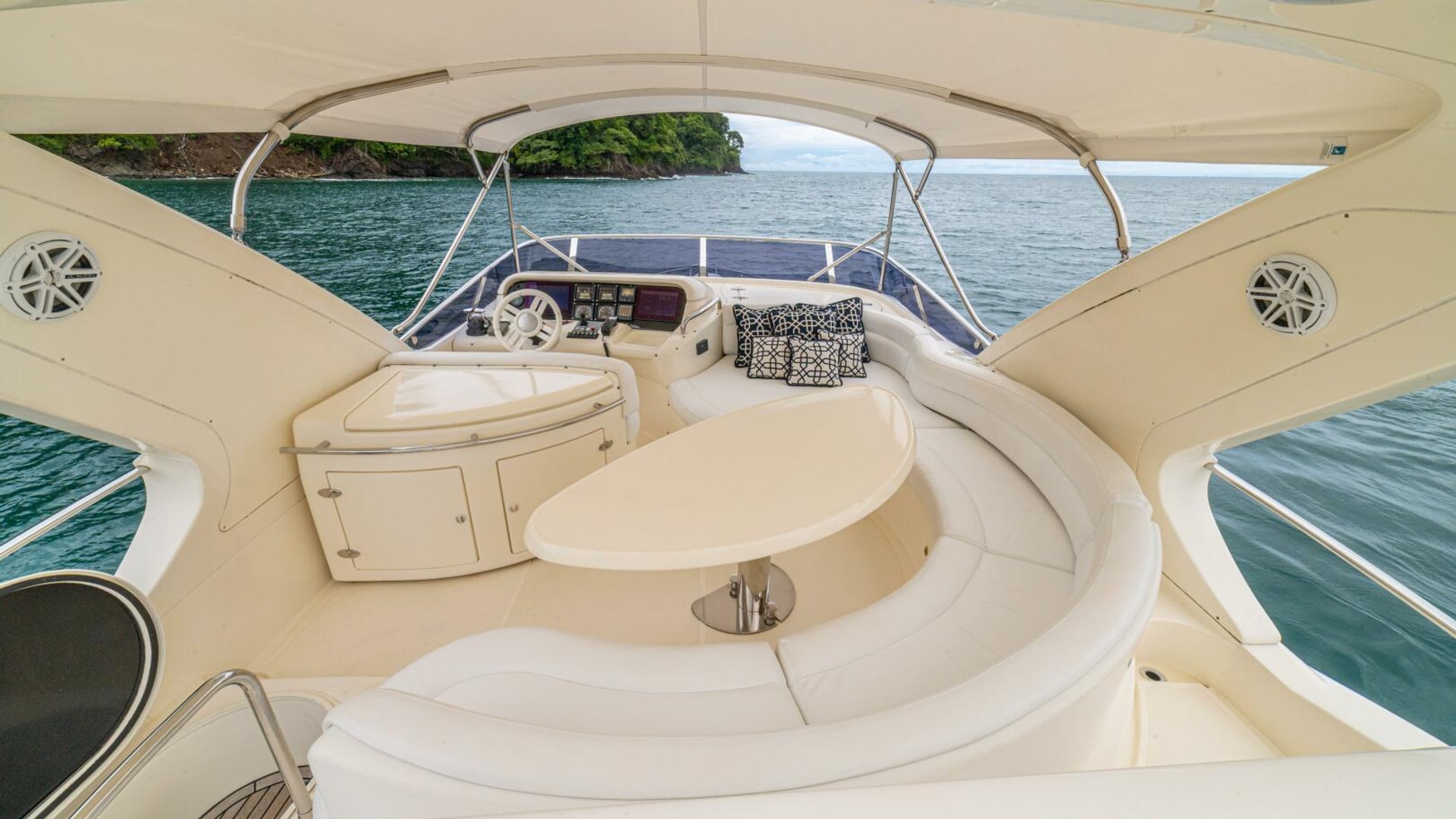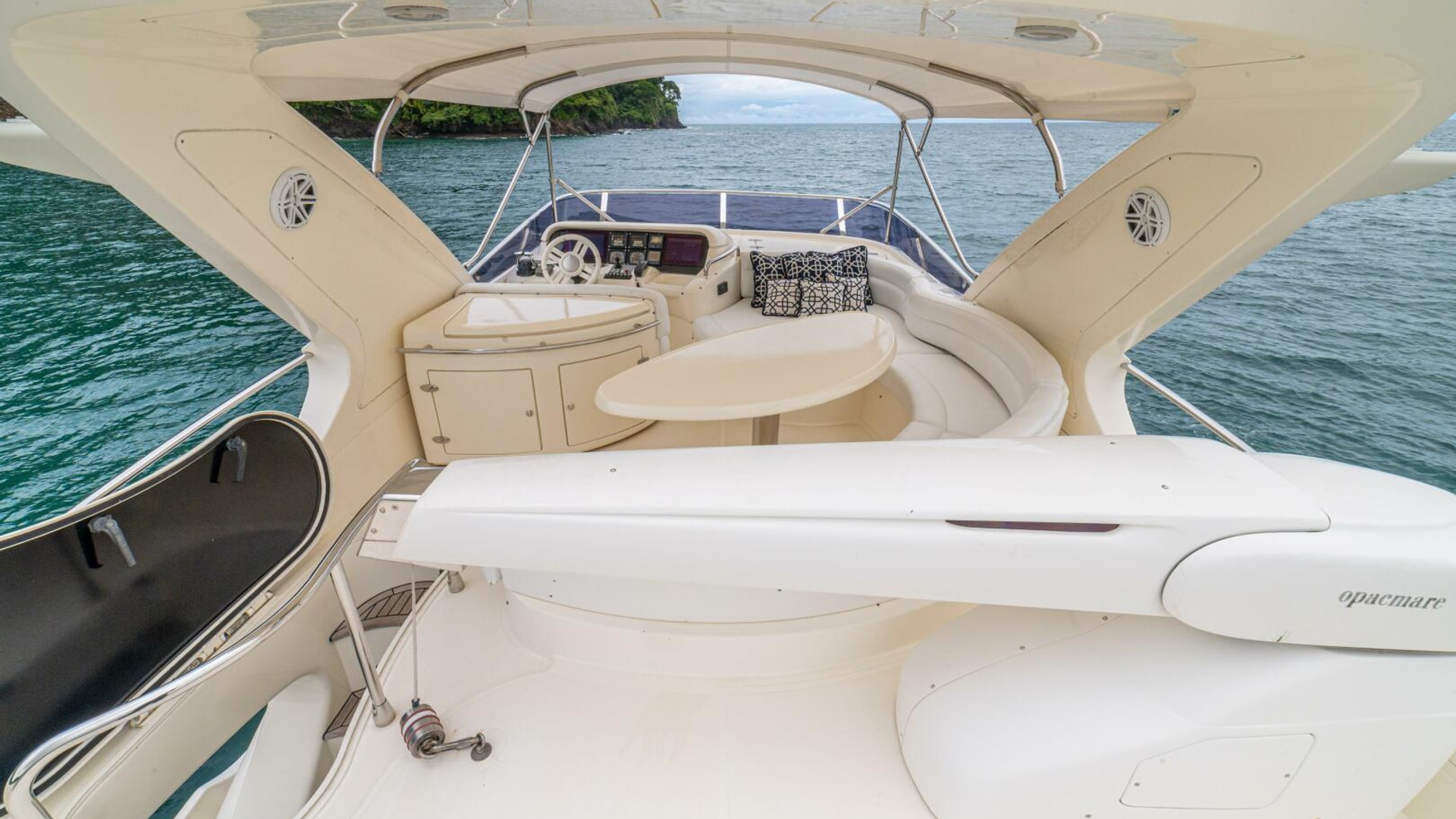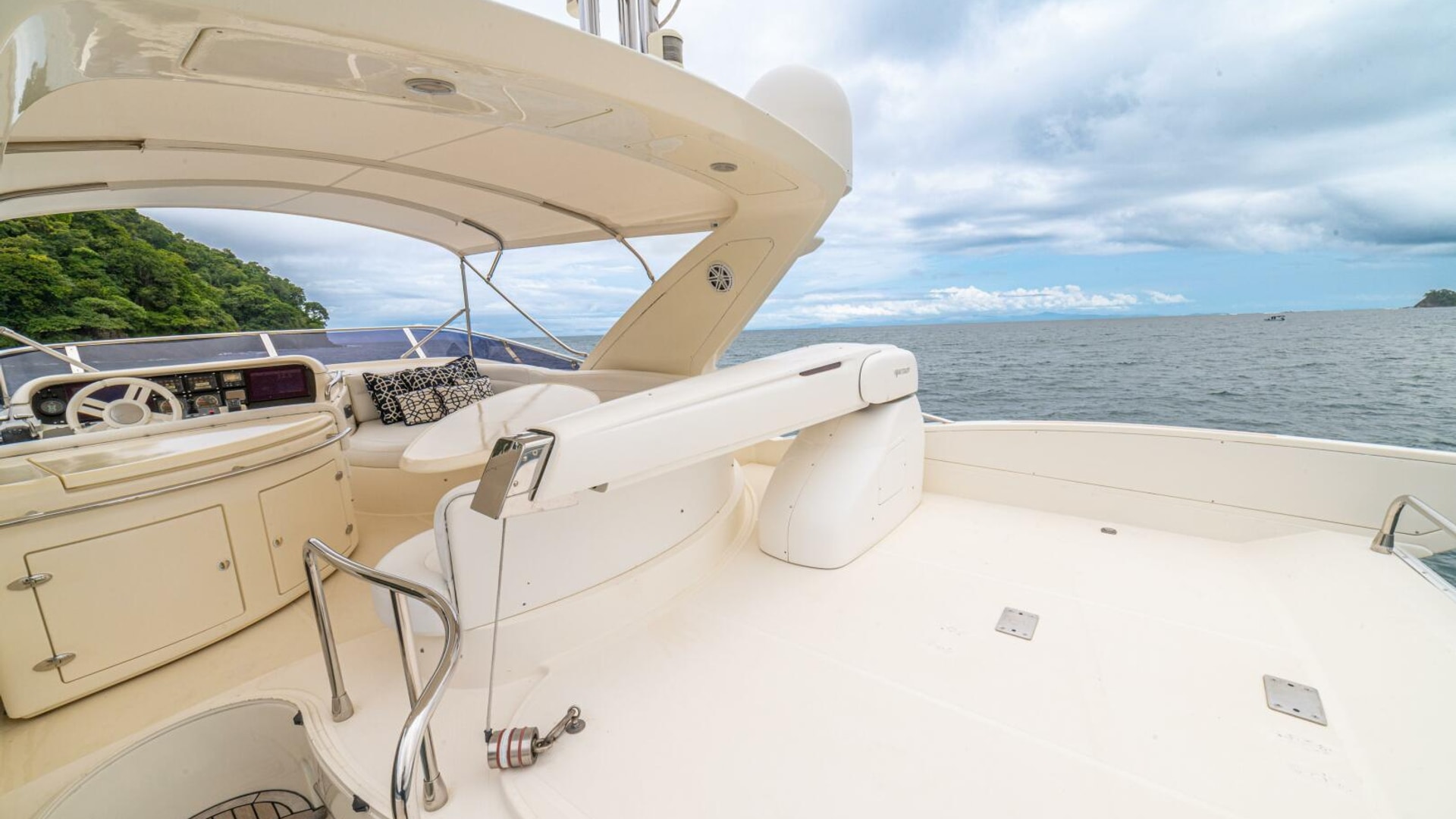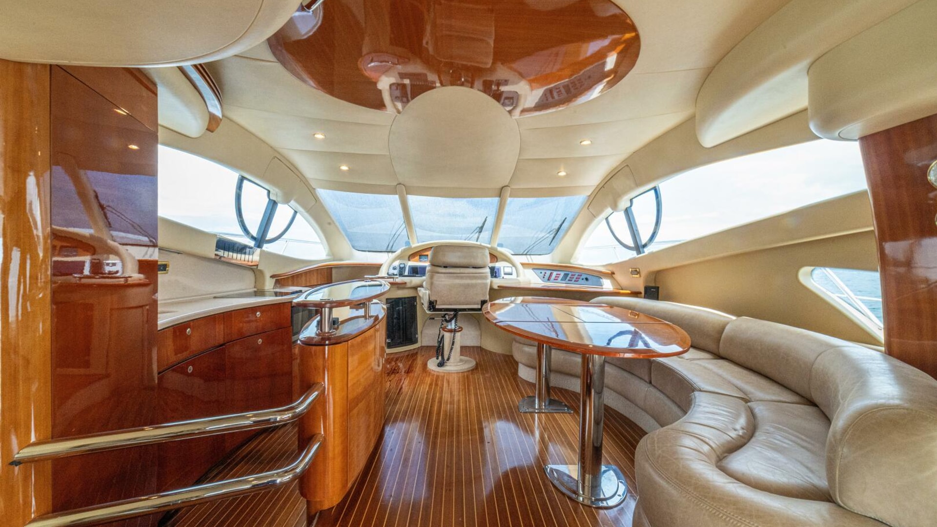 Very spacious flybridge with ample seating for entertainment. Teak decking to the forward part of the flybridge and GRP nonskid to the aft. Well equipped with BBQ, fridge and sink.