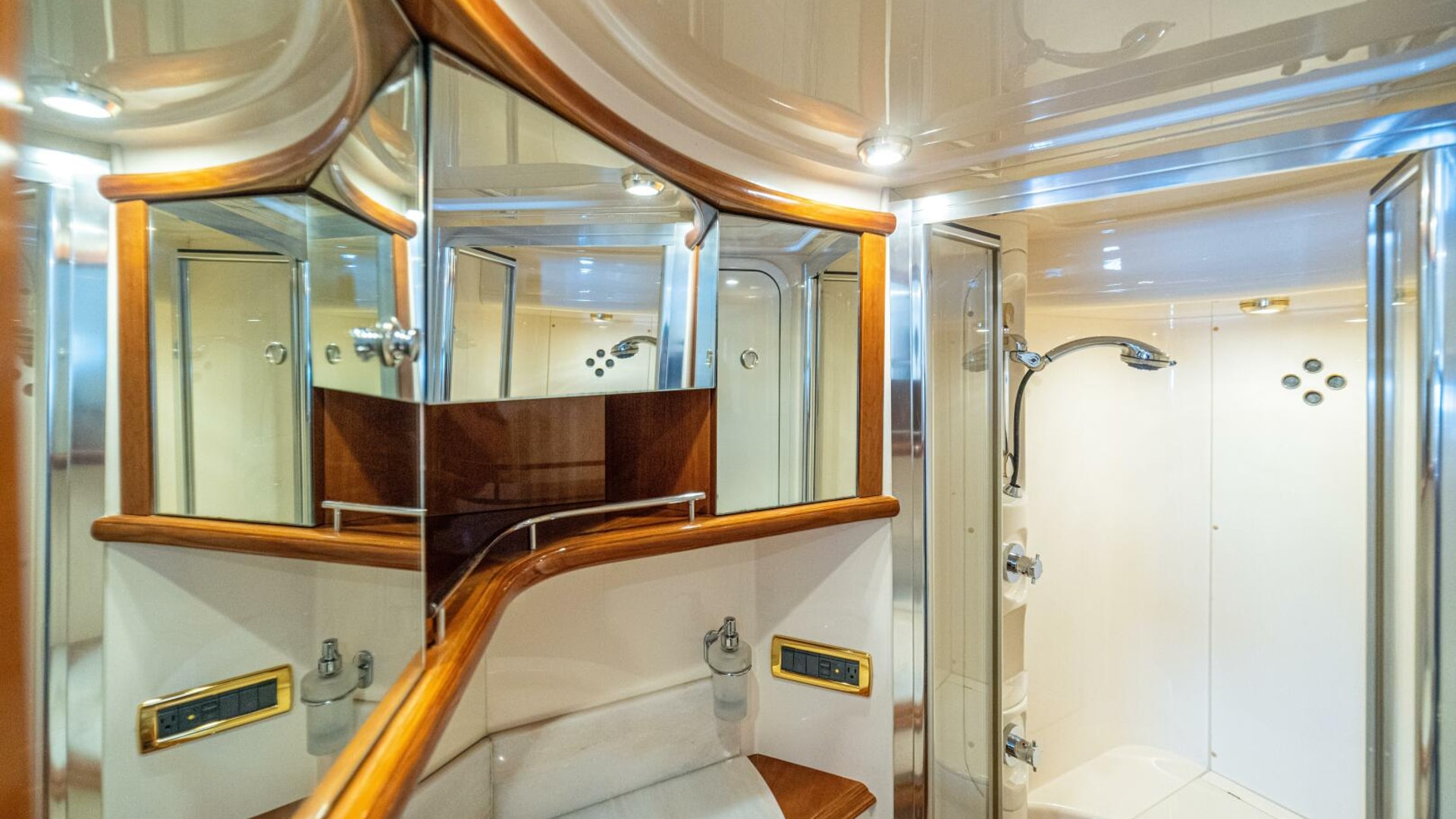 Two heads, one en-suite to the master and the other acting as either an en-suite to the VIP or as a shared heads with the third cabin. Both heads are well appointed with sinks, electric toilets and spacious showers.