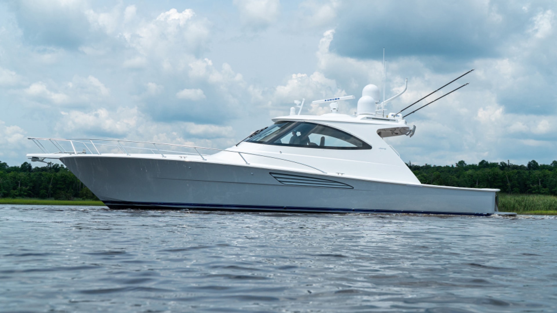 With its aggressive entry, raked stem, one-piece wraparound windshield, and Palm Beach Towers (PBT) hardtop and tuna tower, the 54 O present a striking profile while excelling as a stylish fish-and-cruise Viking thoroughbred. The 54 ST features a three-sided fiberglass deckhouse (with an optional solid aft bulkhead) and a PBT tuna tower. This version is also available sans tower in our sophisticated SC rendition. Similarly, the 54 O can be delivered without a tuna tower as a sleek express yacht. All three models run on the same advanced hull form of the 54 C, which has exceeded all performance expectations.