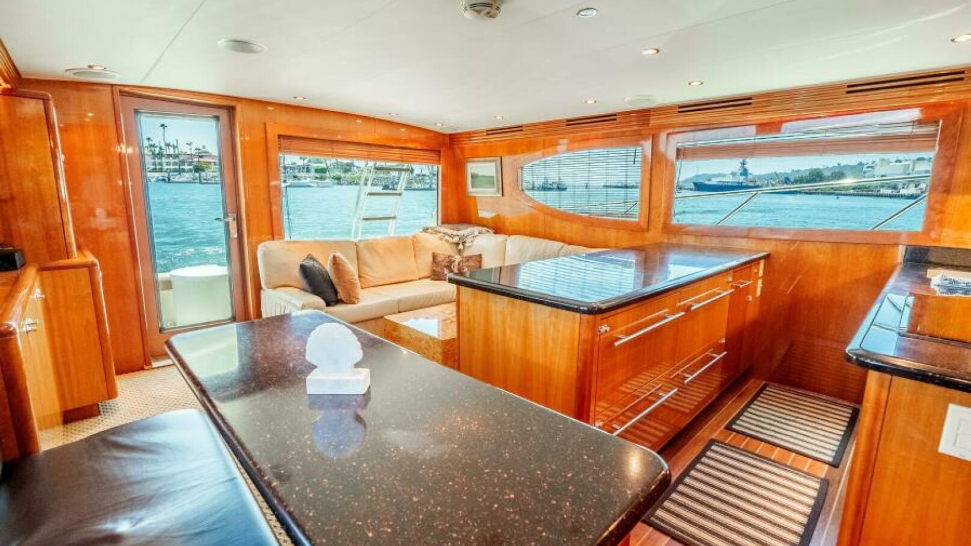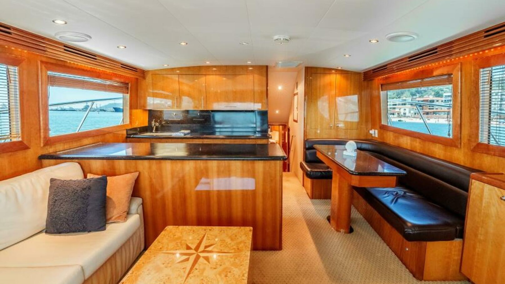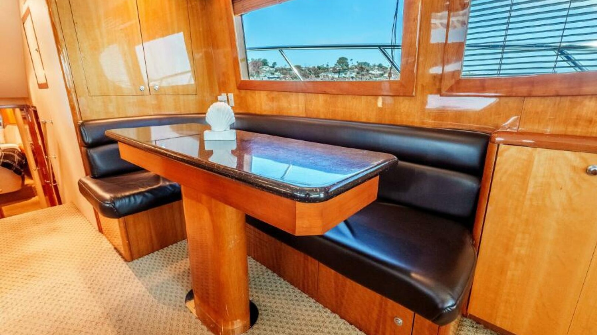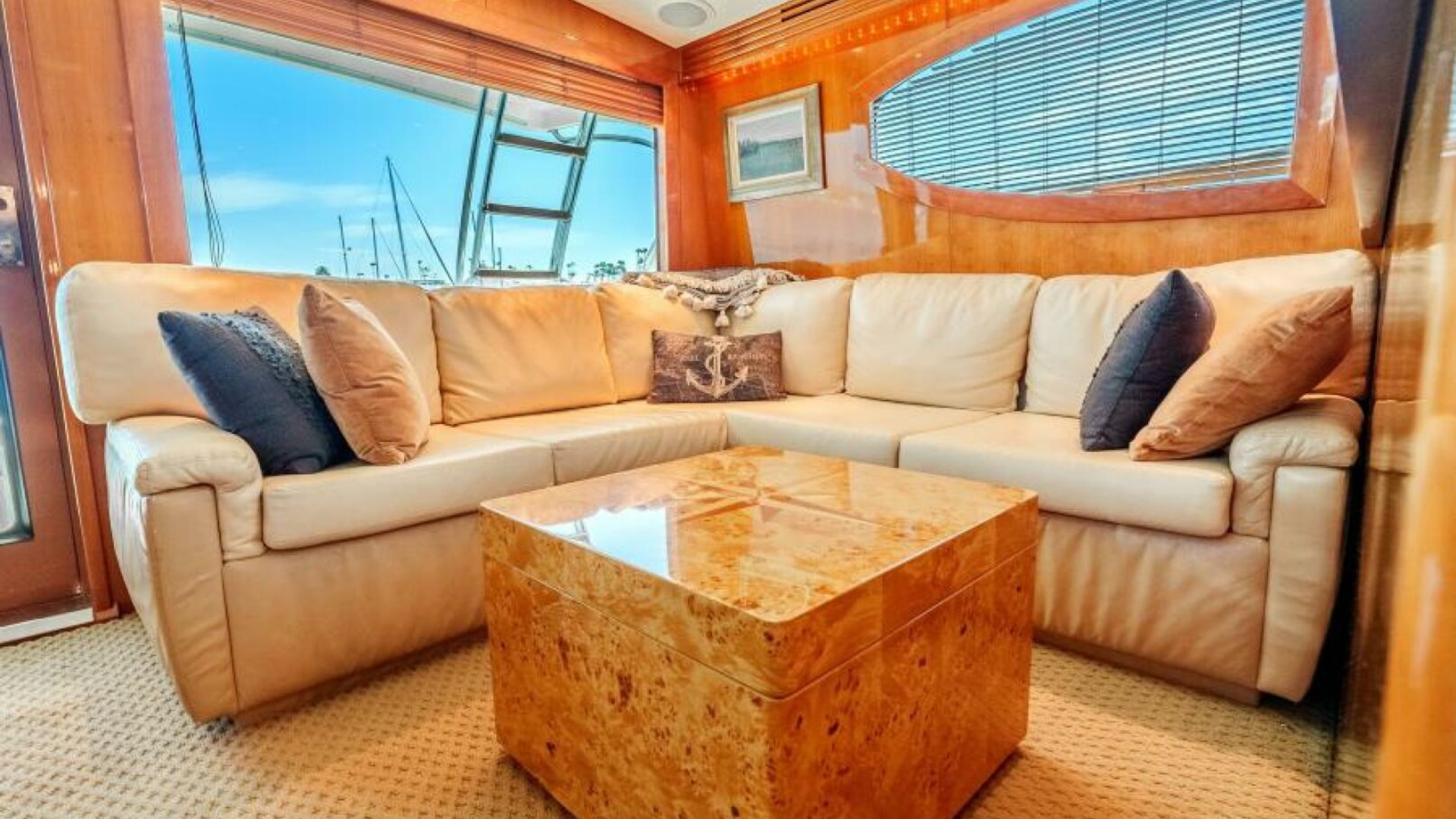 The interior of the 2004 Hatteras 54 Convertible is the epitome of elegance and function. Below deck, the yacht features a luxurious, well-appointed salon with large windows that bathe the space in natural light. Polished wood finishes, soft leather upholstery, and designer fixtures provide an inviting and upscale atmosphere. Whether you're chasing fish offshore or enjoying a weekend getaway, the Hatteras 54 Convertible excels at offering versatility and luxury. This yacht is perfect for the owner who seeks a blend of performance, comfort, and style.