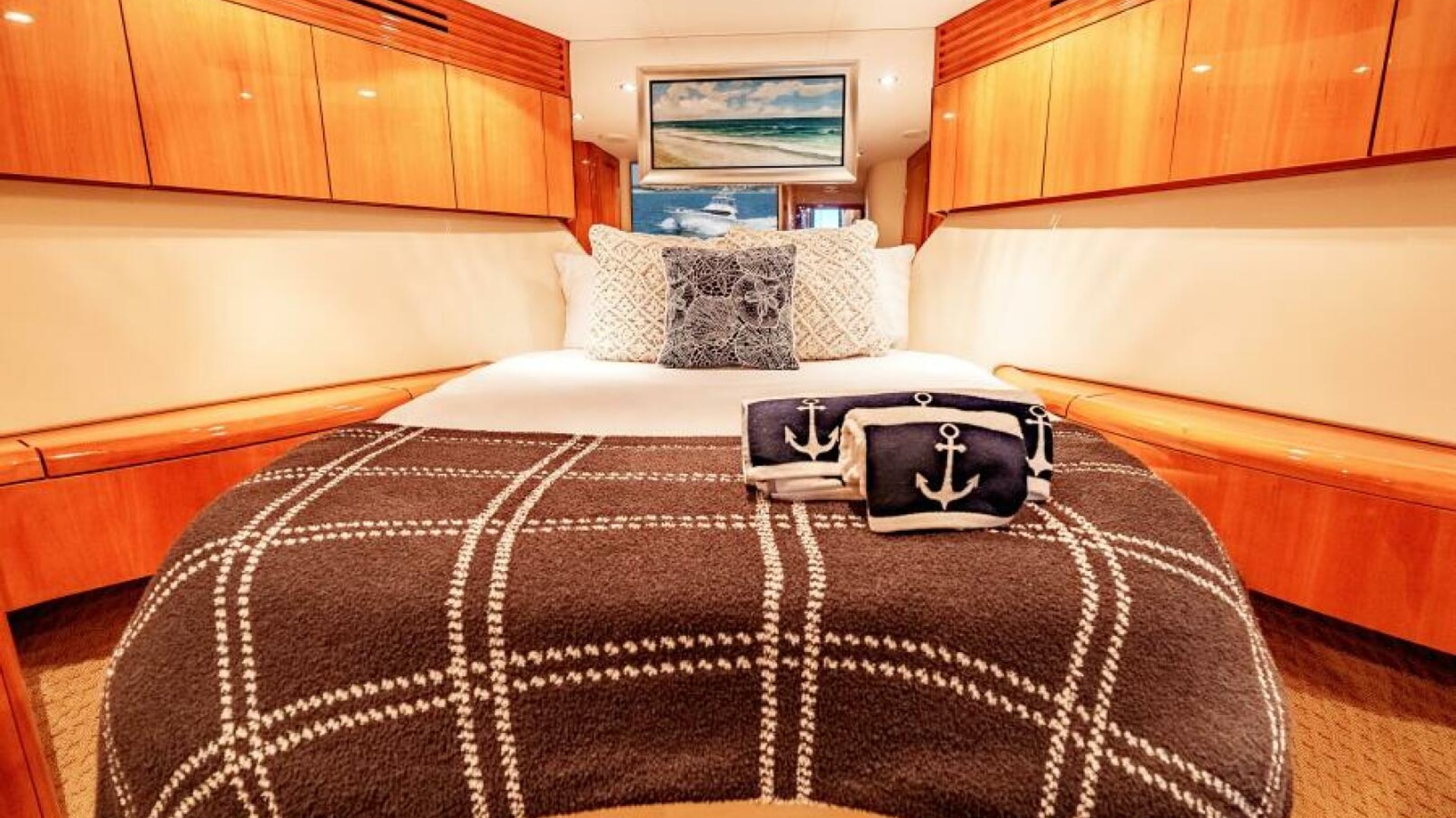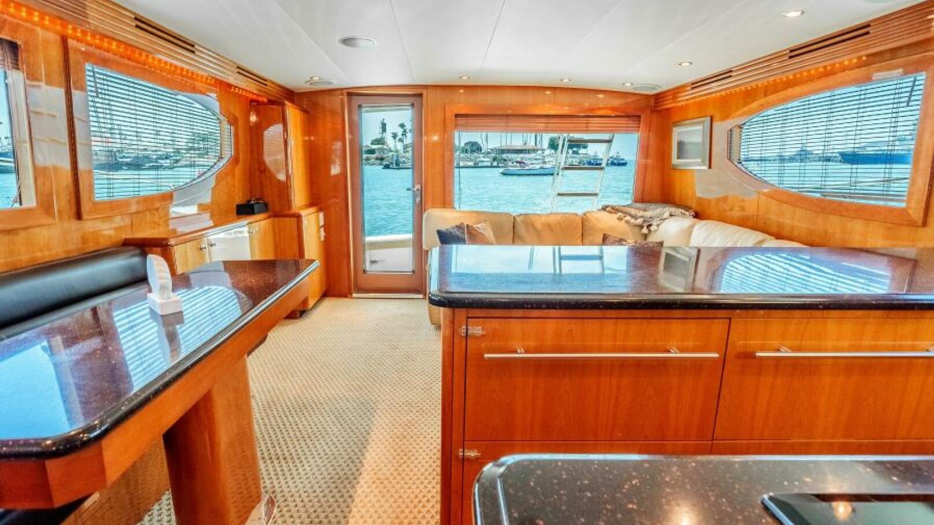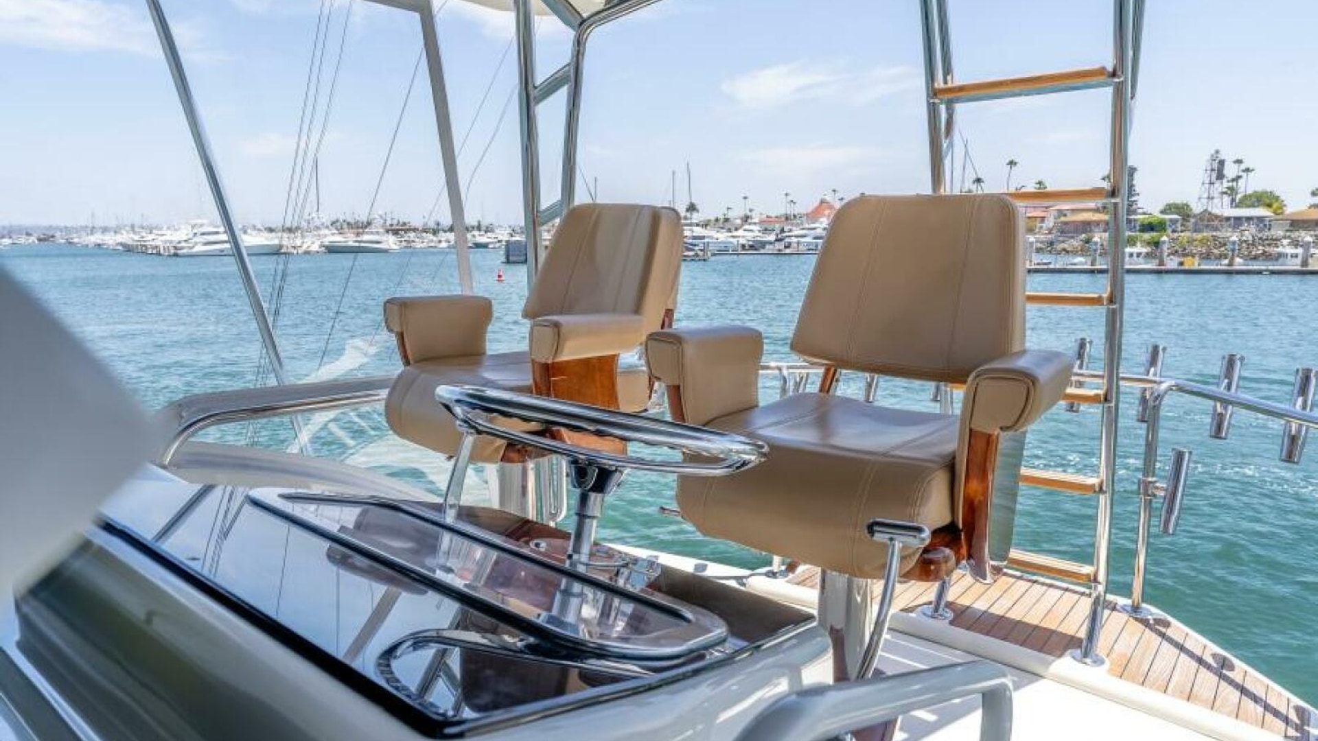 The interior of the 2004 Hatteras 54 Convertible is the epitome of elegance and function. Below deck, the yacht features a luxurious, well-appointed salon with large windows that bathe the space in natural light. Polished wood finishes, soft leather upholstery, and designer fixtures provide an inviting and upscale atmosphere. Whether you're chasing fish offshore or enjoying a weekend getaway, the Hatteras 54 Convertible excels at offering versatility and luxury. This yacht is perfect for the owner who seeks a blend of performance, comfort, and style.