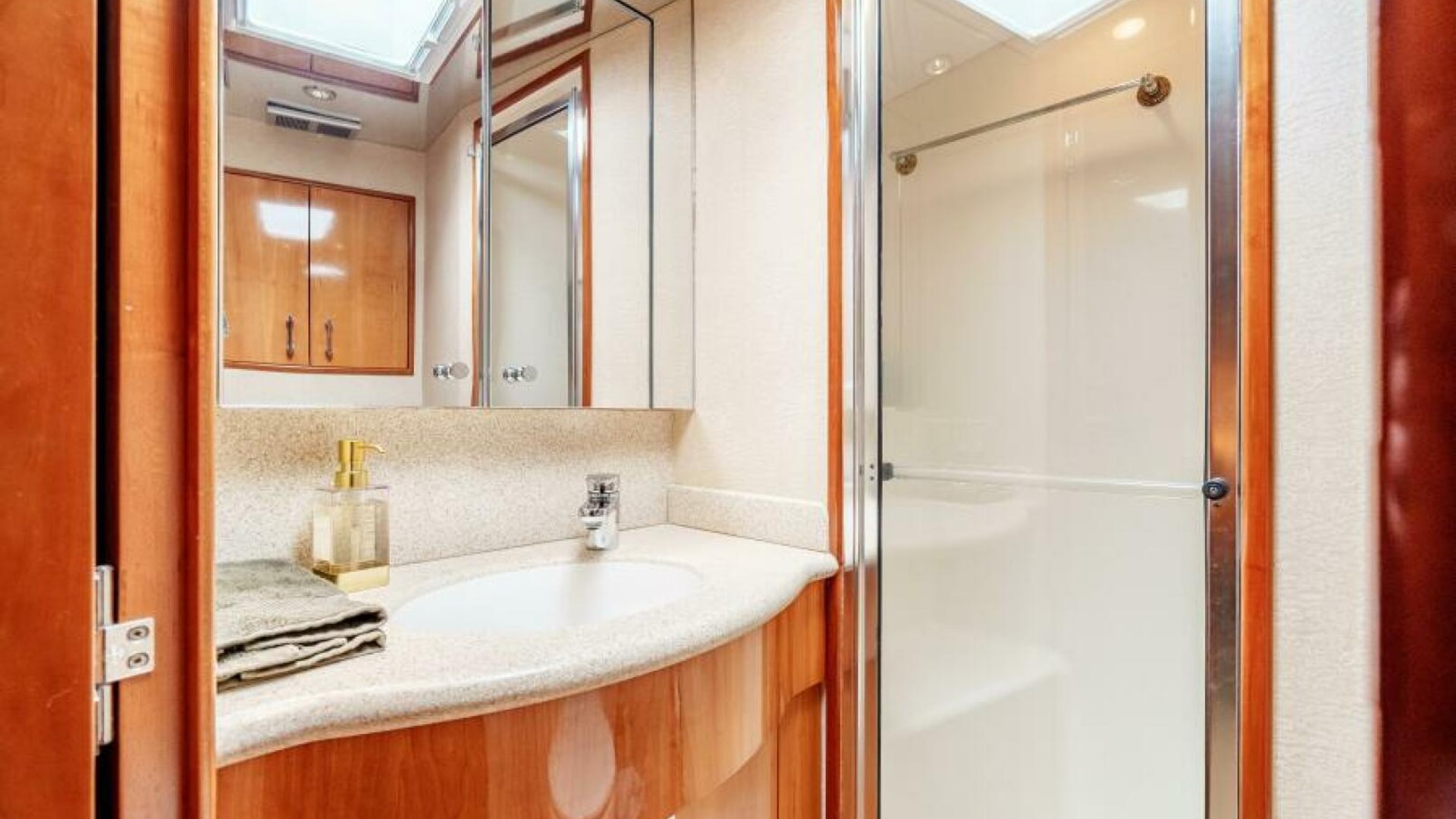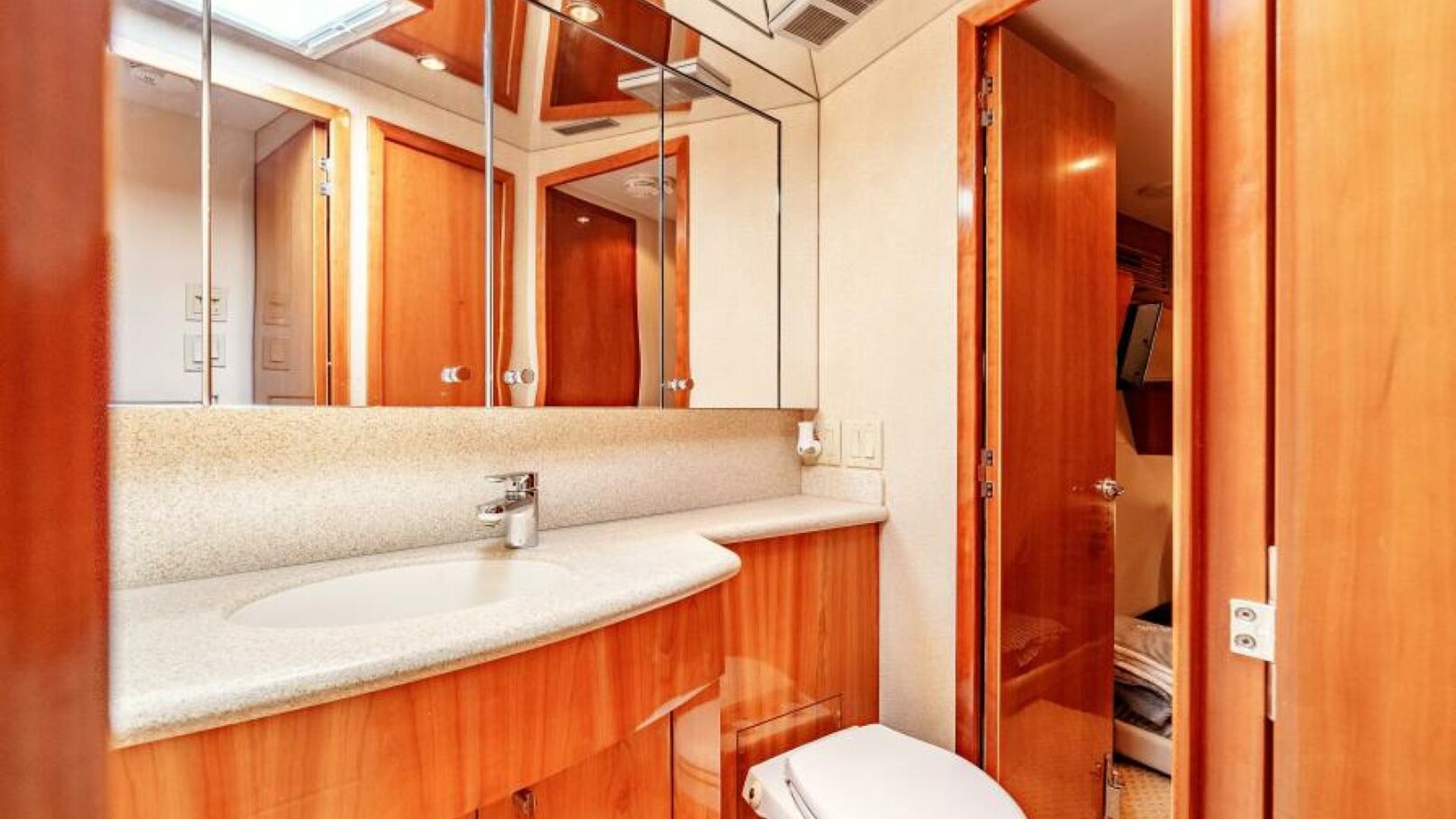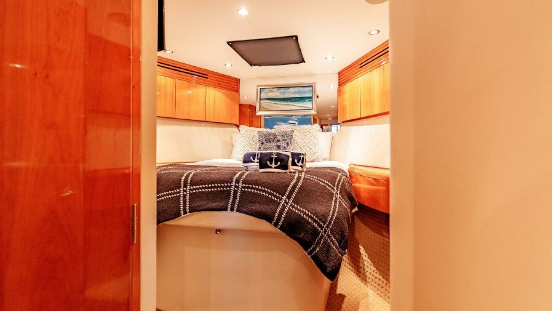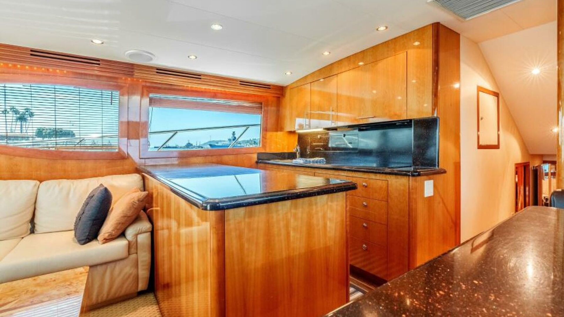 The interior of the 2004 Hatteras 54 Convertible is the epitome of elegance and function. Below deck, the yacht features a luxurious, well-appointed salon with large windows that bathe the space in natural light. Polished wood finishes, soft leather upholstery, and designer fixtures provide an inviting and upscale atmosphere. Whether you're chasing fish offshore or enjoying a weekend getaway, the Hatteras 54 Convertible excels at offering versatility and luxury. This yacht is perfect for the owner who seeks a blend of performance, comfort, and style.