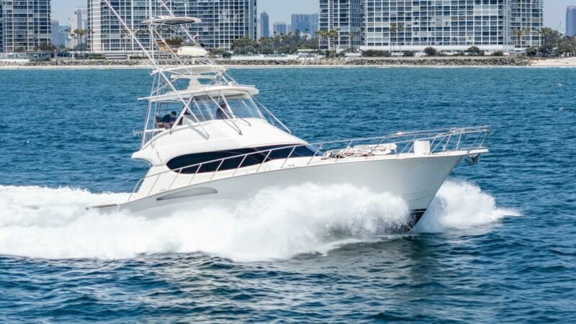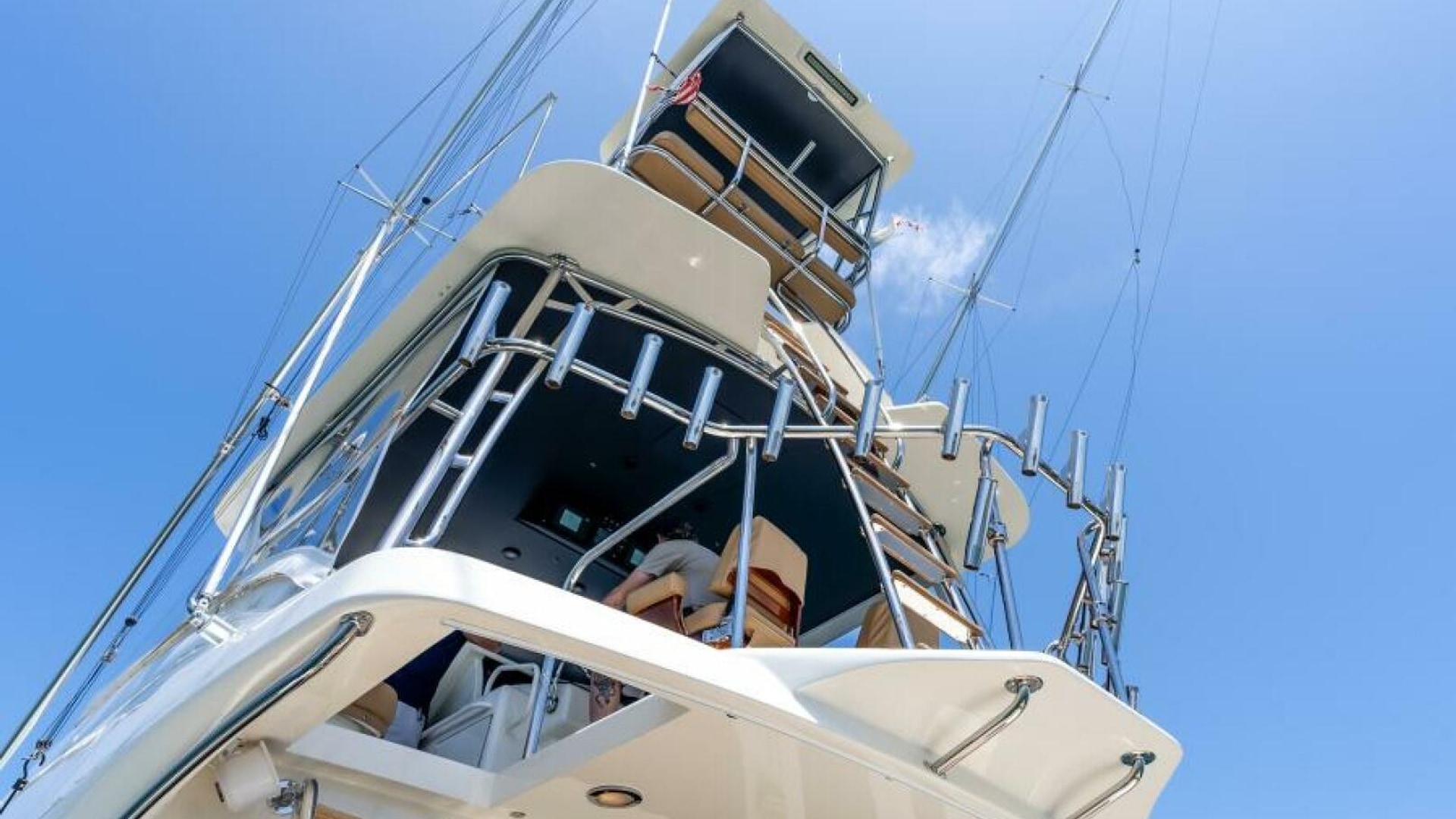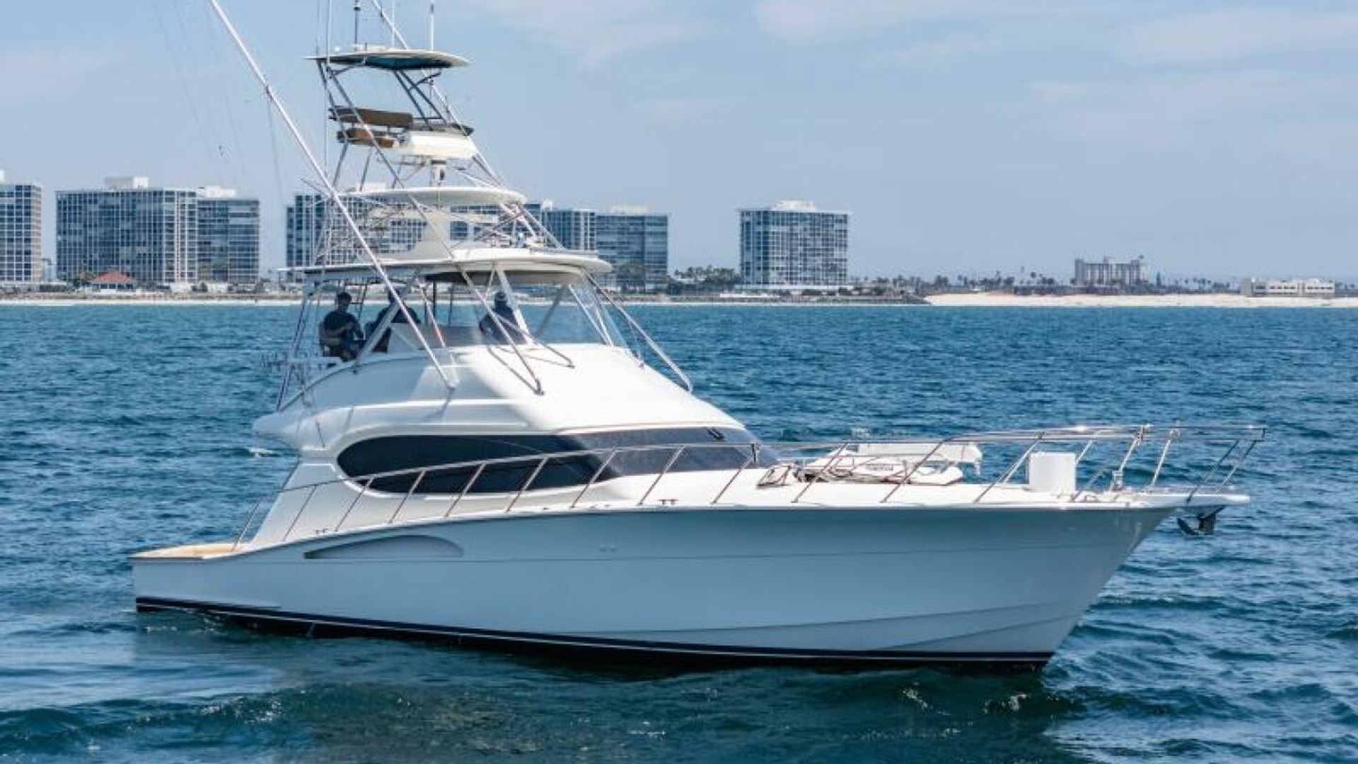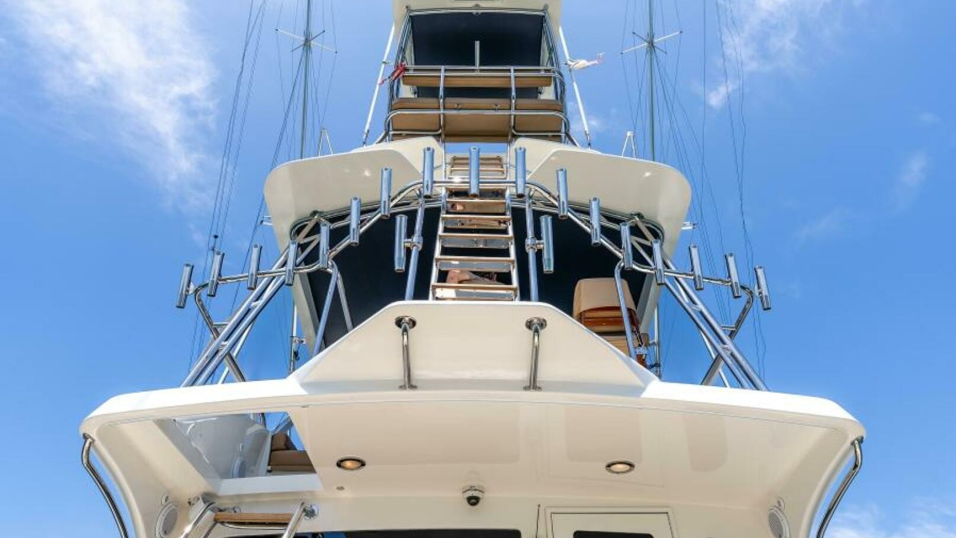 The 2004 Hatteras 54 Convertible blends precision engineering, luxurious comfort, and powerful performance, making it a standout in its class. Ideal for both serious sportfishing and upscale cruising, this yacht boasts a sleek profile with high-performance amenities that are designed to handle the most demanding conditions on the water. The exterior of the Hatteras 54 Convertible features a robust and refined design, showcasing Hatteras' commitment to quality. The oversized cockpit offers ample space for anglers and guests alike, with an integrated transom door, built-in bait freezer, and oversized fish box. The flybridge, which provides excellent visibility for both cruising and fishing, comes equipped with a custom helm station, upholstered seating, and a full set of electronics for navigation and control.