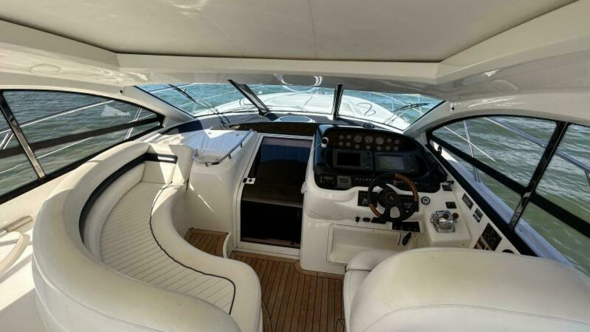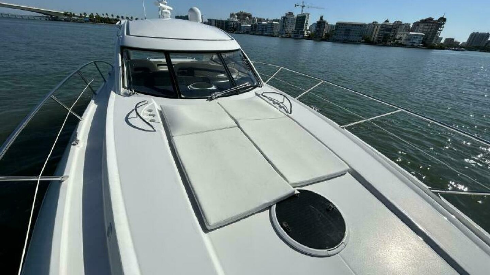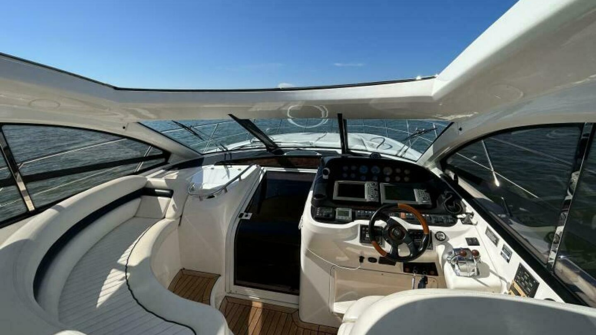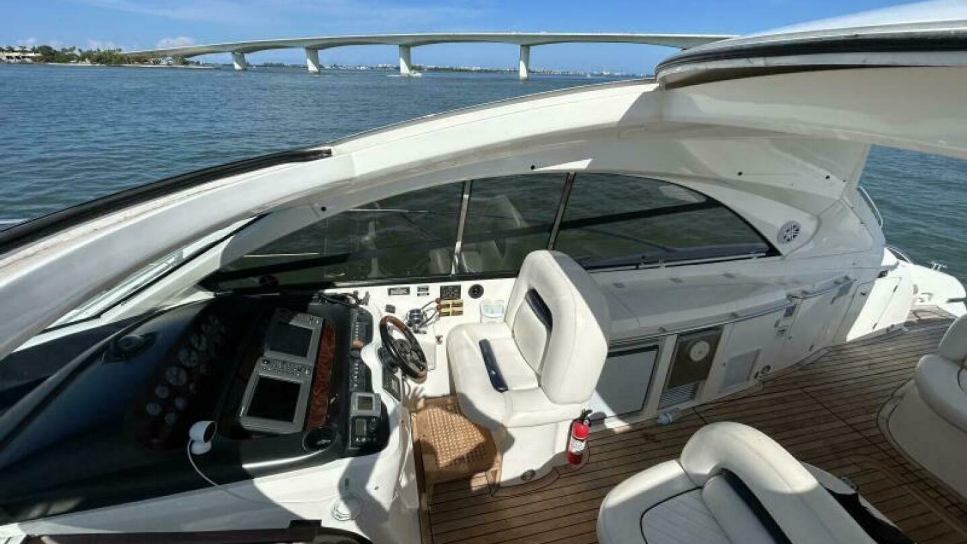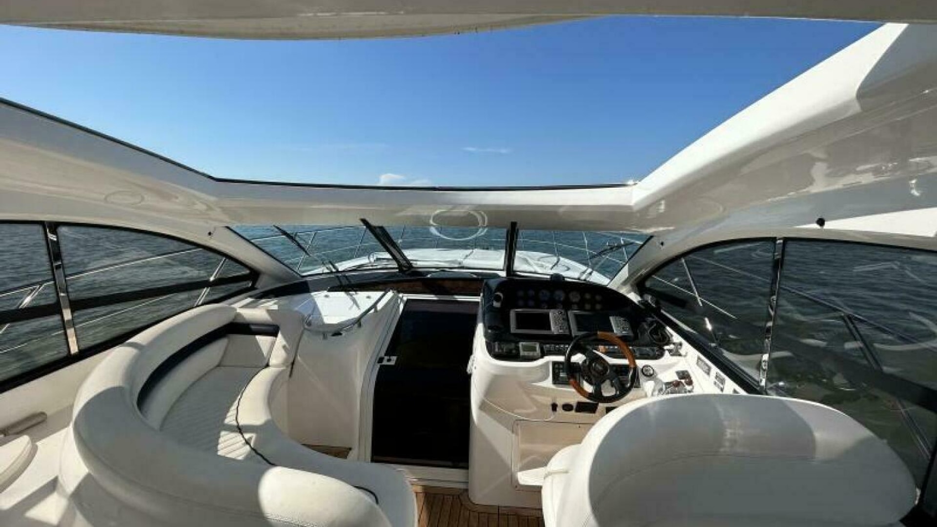 This 2003 Sunseeker Camargue 50 has the top of the line 'Offshore Cruiser' package which includes an electric hard top that opens at the push of a button but it also has many luxurious and comfortable cruising features like her large cockpit for entertaining on the main deck that features a grill, A/C, refrigerator, and teak decks. With direct shaft drives for extra stability and economical performance, the Sunseeker Camargue 50 is a luxurious sports cruiser capable of speeds over 30 knots. As well as a large cockpit and bathing platform, tender garage, a large open-plan saloon, and comfortable accommodation in the en suite cabins.