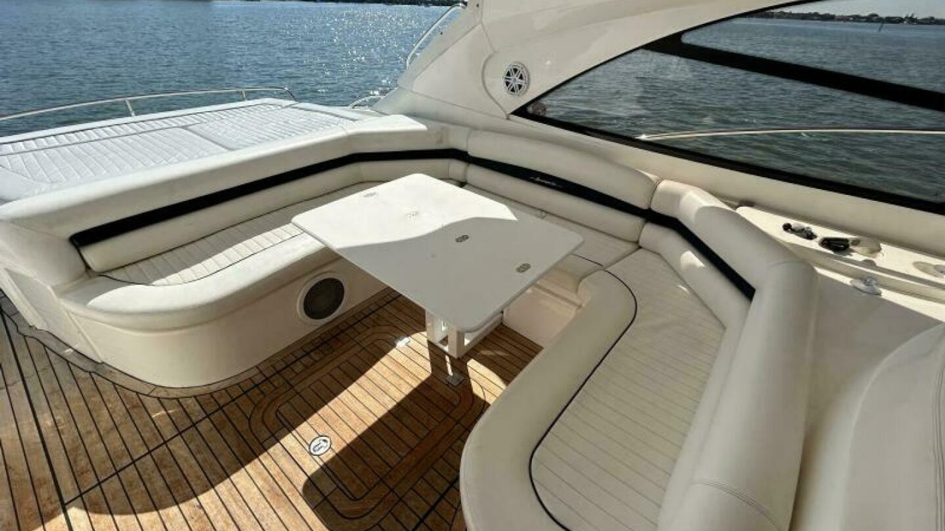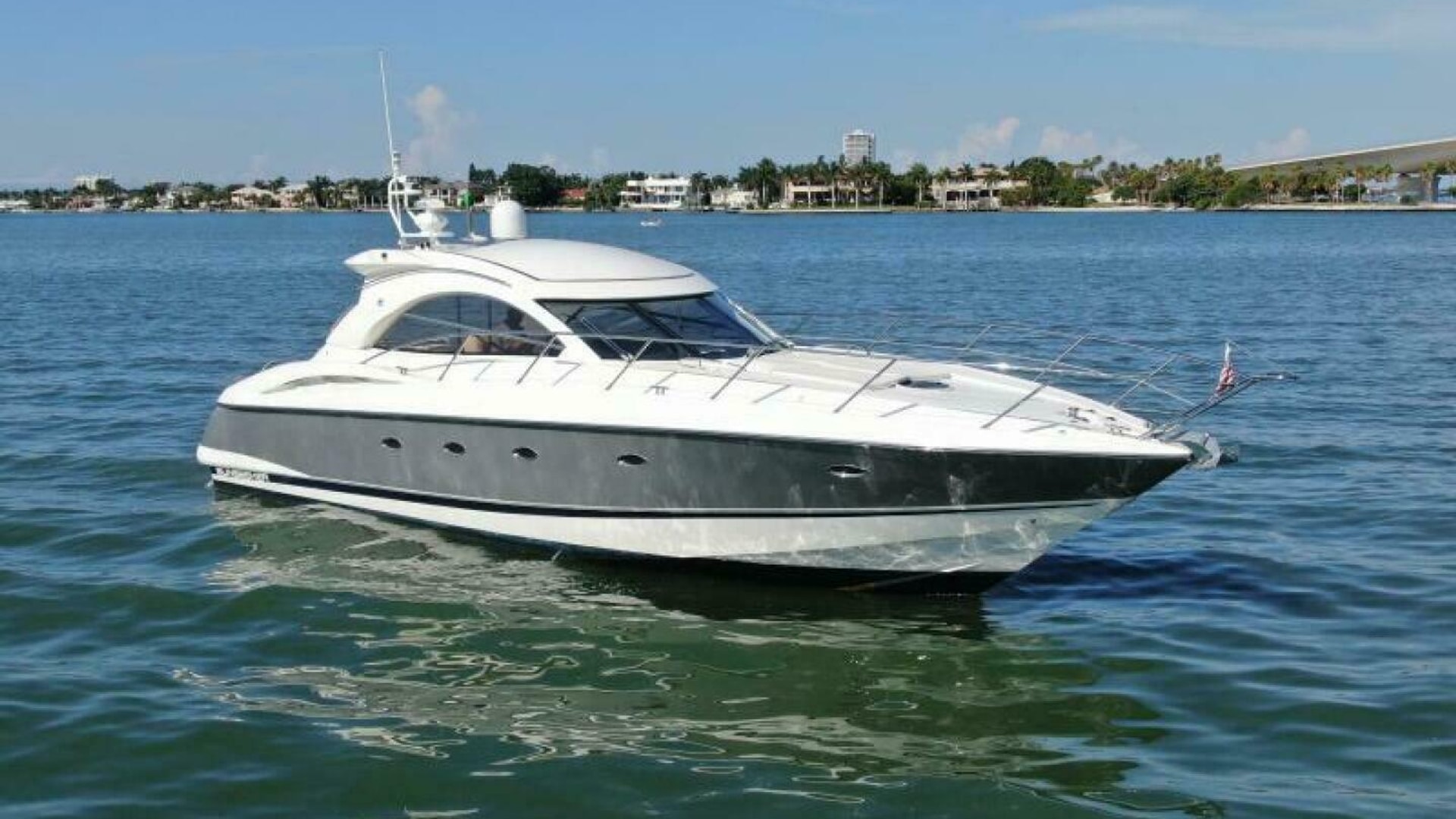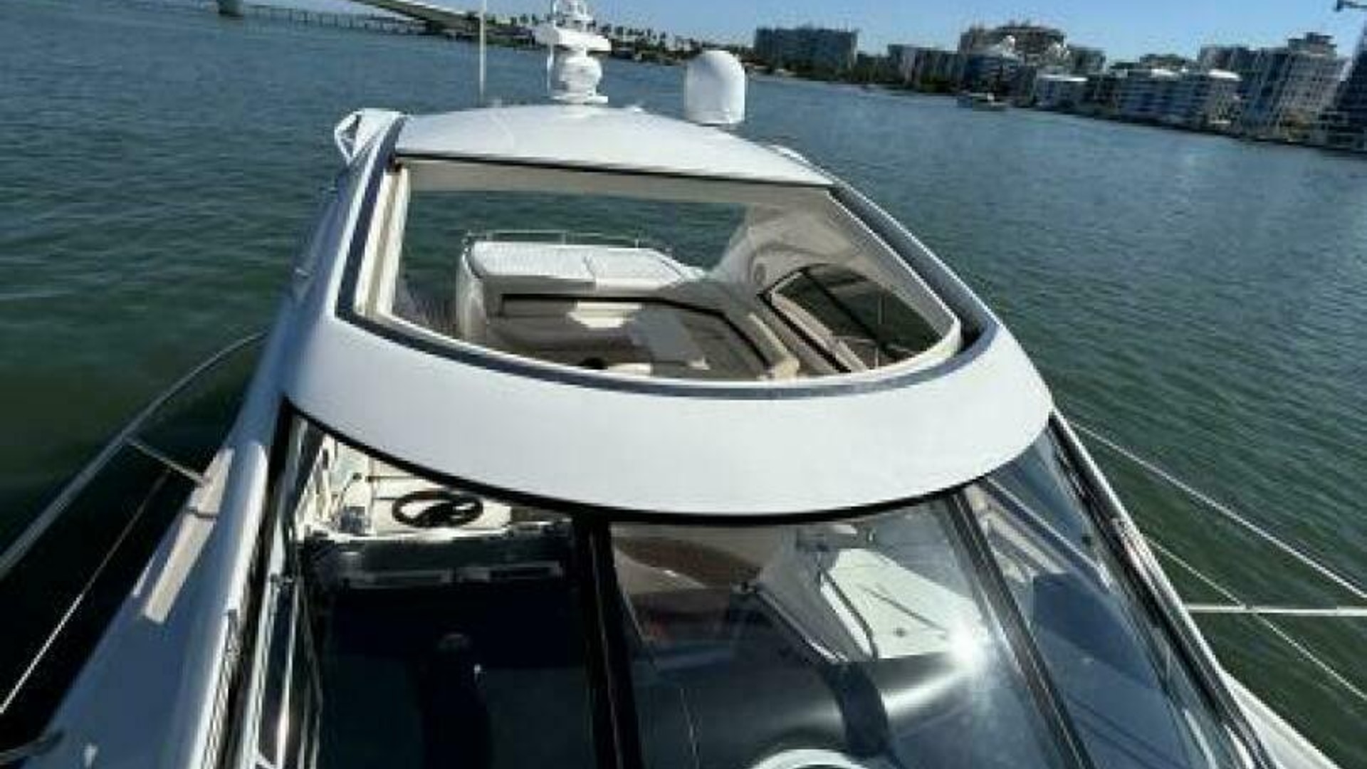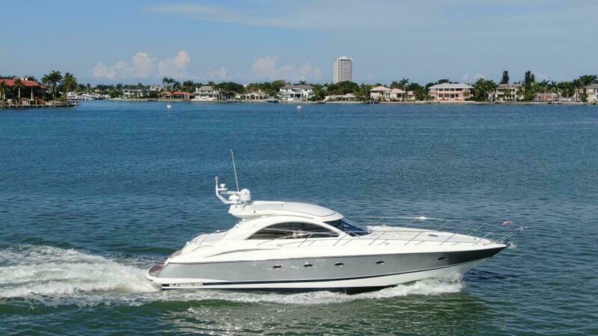 This 2003 Sunseeker Camargue 50 has the top of the line 'Offshore Cruiser' package which includes an electric hard top that opens at the push of a button but it also has many luxurious and comfortable cruising features like her large cockpit for entertaining on the main deck that features a grill, A/C, refrigerator, and teak decks. With direct shaft drives for extra stability and economical performance, the Sunseeker Camargue 50 is a luxurious sports cruiser capable of speeds over 30 knots. As well as a large cockpit and bathing platform, tender garage, a large open-plan saloon, and comfortable accommodation in the en suite cabins.