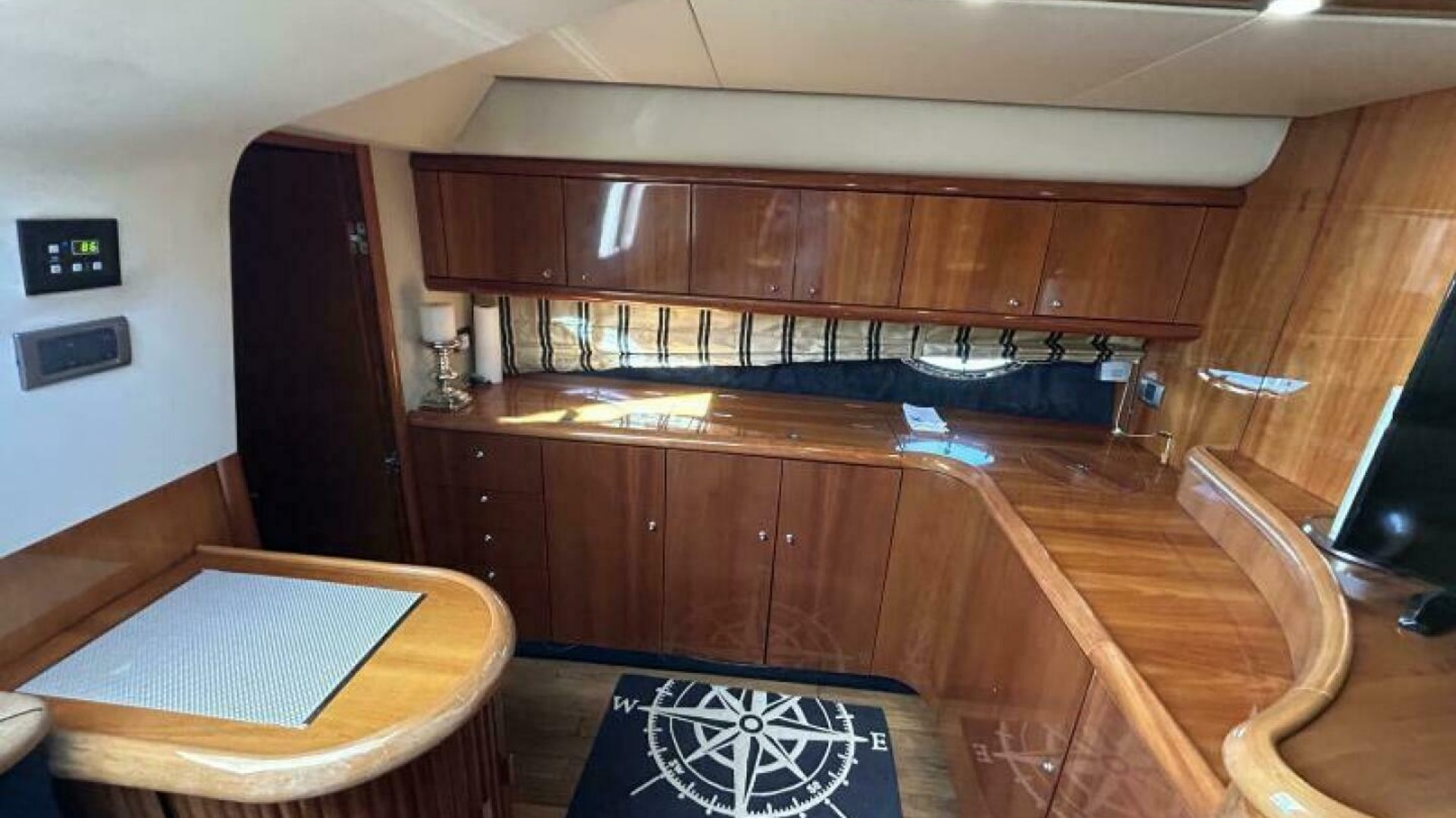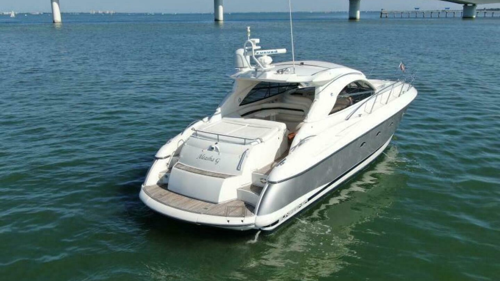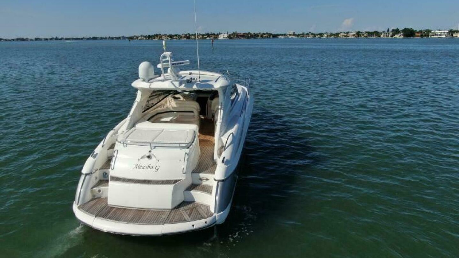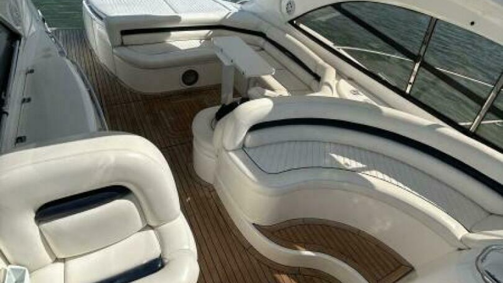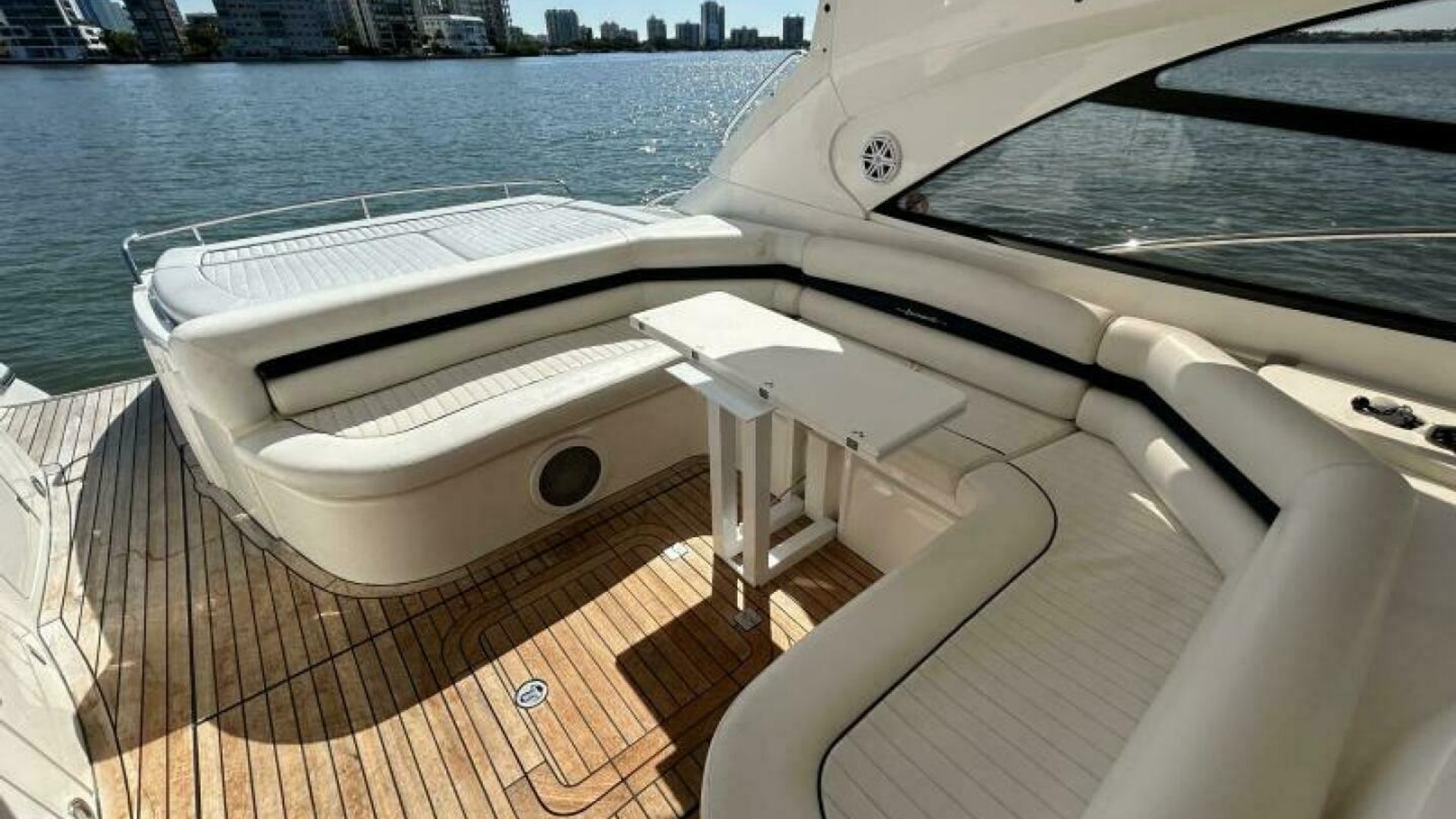 This 2003 Sunseeker Camargue 50 has the top of the line 'Offshore Cruiser' package which includes an electric hard top that opens at the push of a button but it also has many luxurious and comfortable cruising features like her large cockpit for entertaining on the main deck that features a grill, A/C, refrigerator, and teak decks. With direct shaft drives for extra stability and economical performance, the Sunseeker Camargue 50 is a luxurious sports cruiser capable of speeds over 30 knots. As well as a large cockpit and bathing platform, tender garage, a large open-plan saloon, and comfortable accommodation in the en suite cabins.