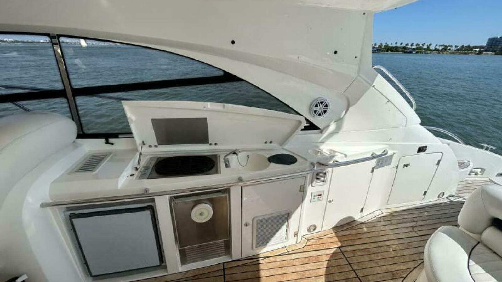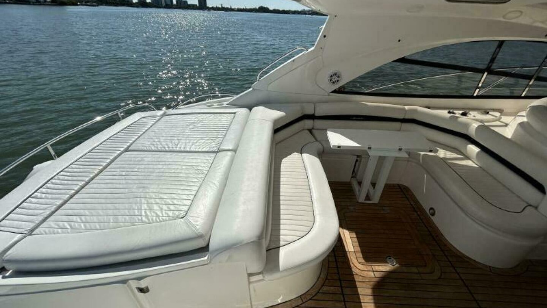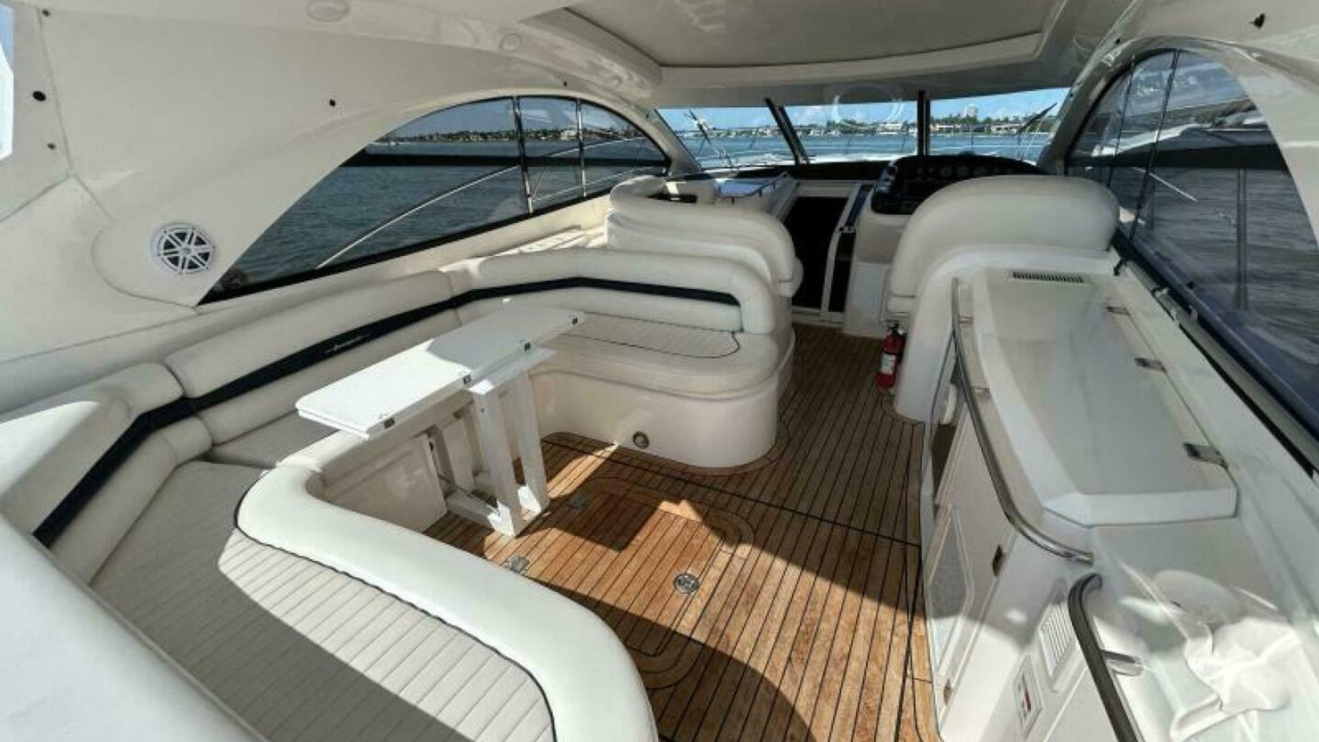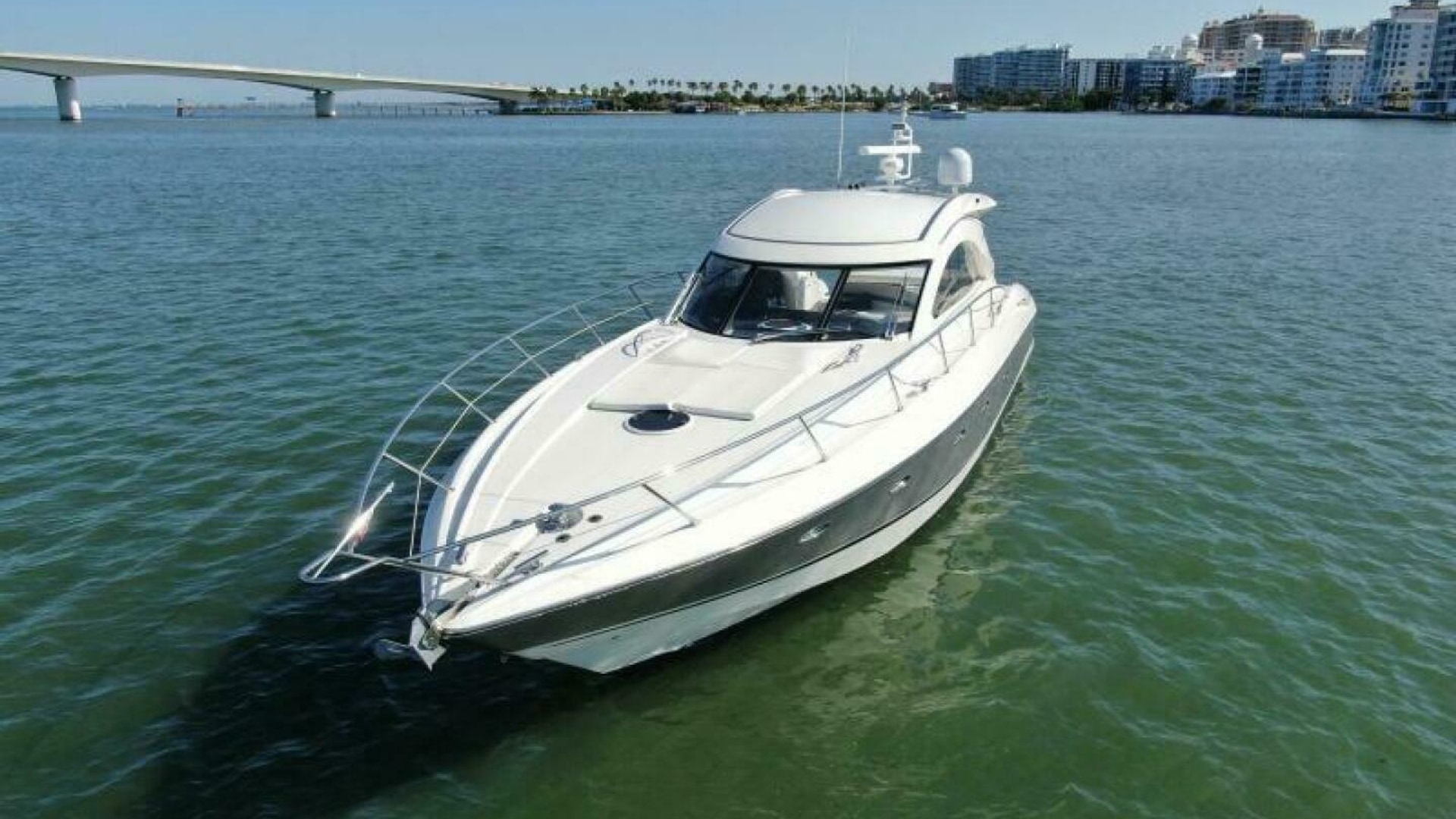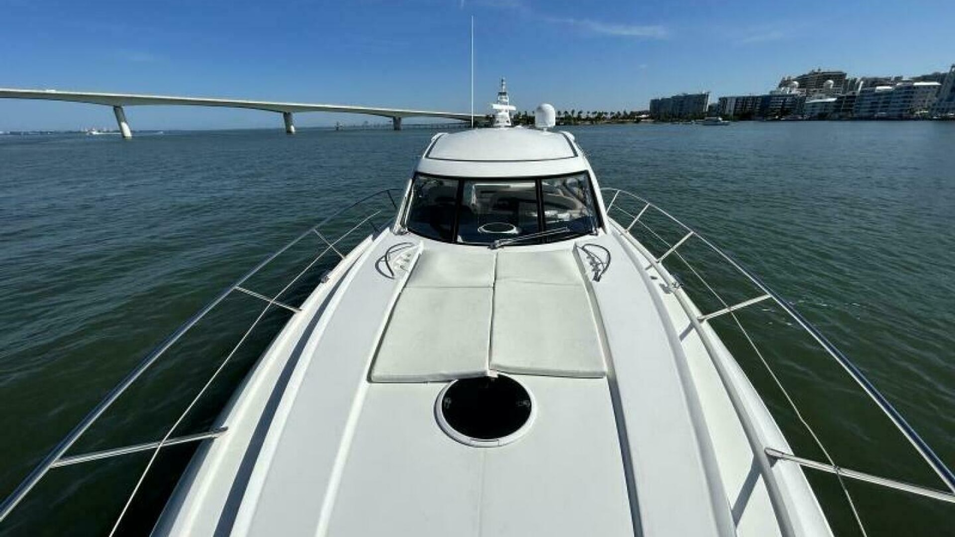 This 2003 Sunseeker Camargue 50 has the top of the line 'Offshore Cruiser' package which includes an electric hard top that opens at the push of a button but it also has many luxurious and comfortable cruising features like her large cockpit for entertaining on the main deck that features a grill, A/C, refrigerator, and teak decks. With direct shaft drives for extra stability and economical performance, the Sunseeker Camargue 50 is a luxurious sports cruiser capable of speeds over 30 knots. As well as a large cockpit and bathing platform, tender garage, a large open-plan saloon, and comfortable accommodation in the en suite cabins.