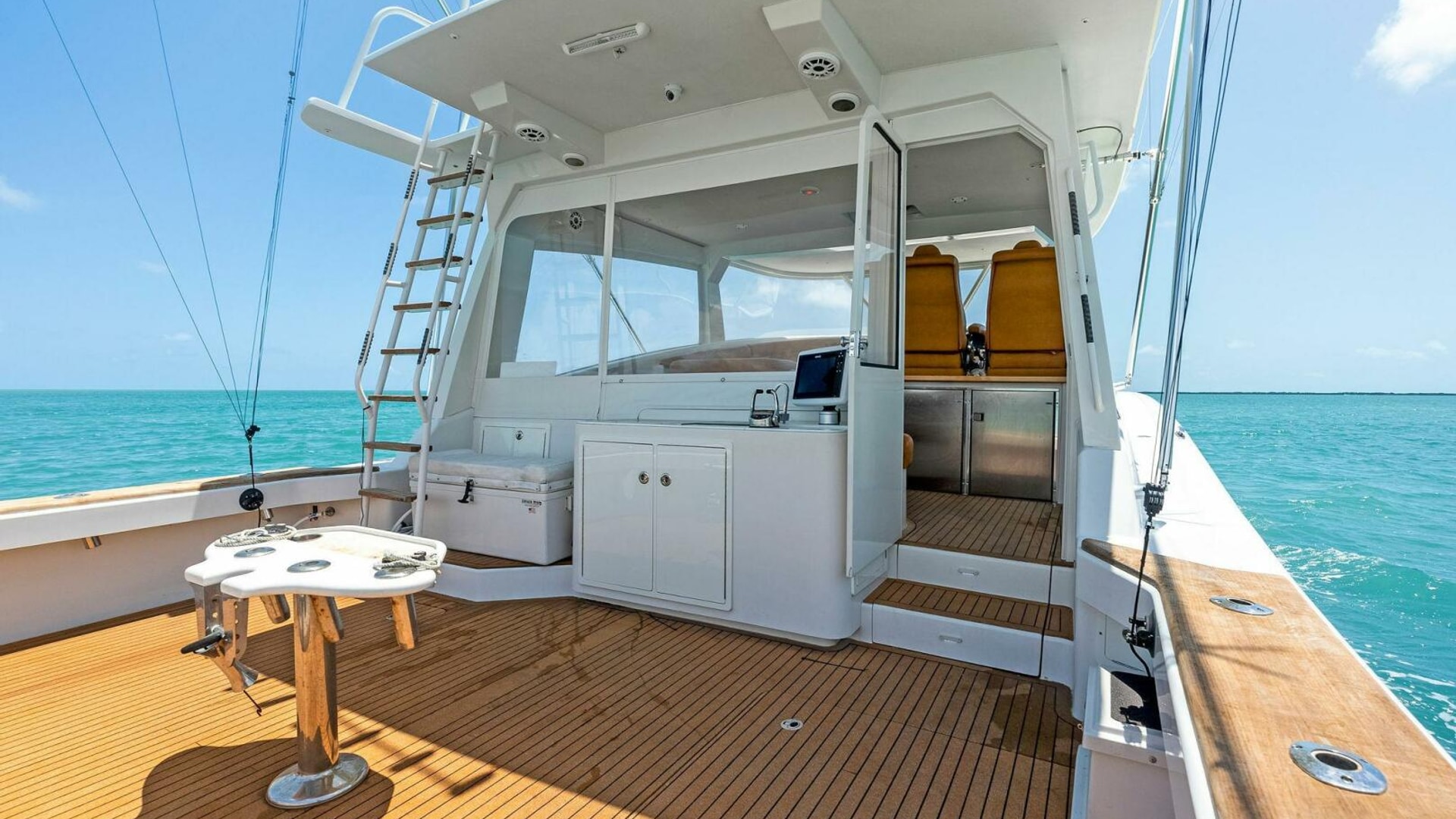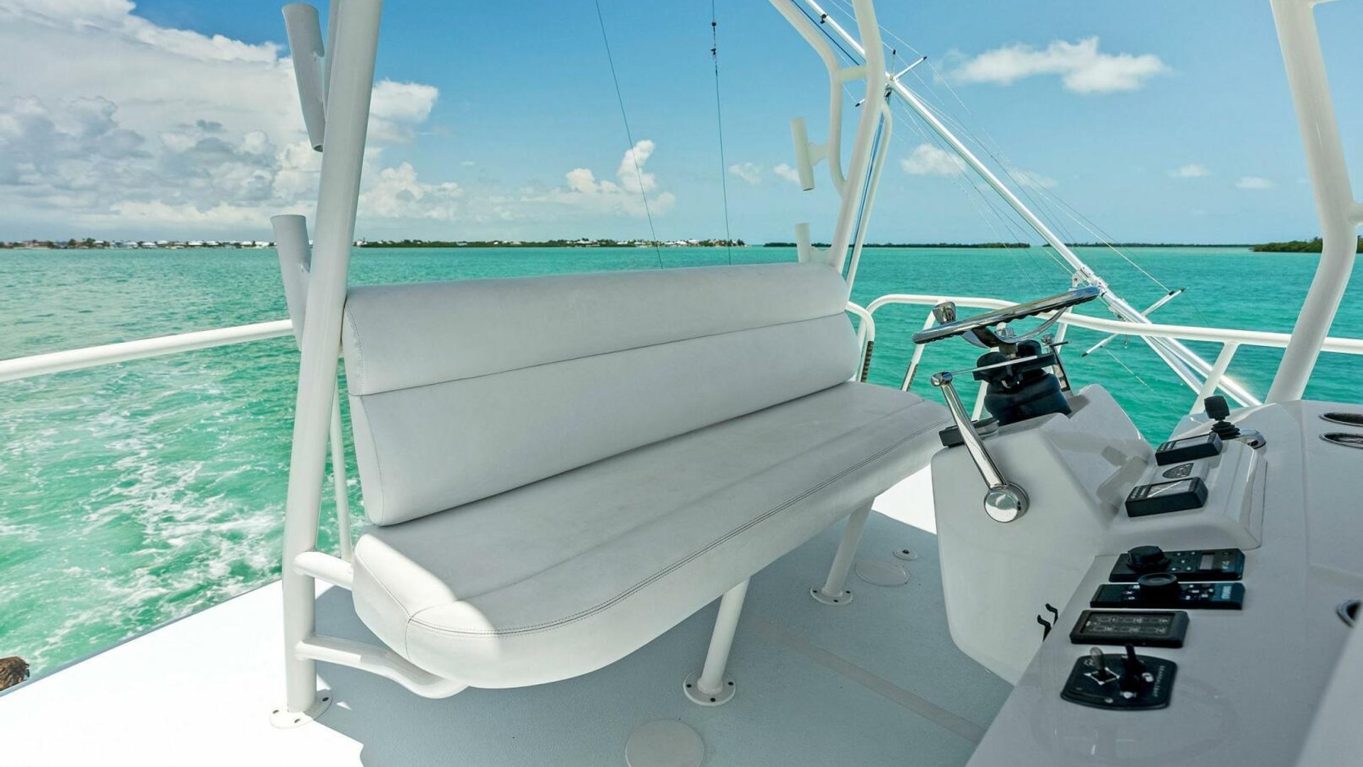 The Calcutta 480 is a one-of-a-kind boat that boasts very unique features. You have a 17ft beam that provides a huge cockpit that any professional or recreational fisherman will surely appreciate. Upon the bridge, you have a full walk-around tower with a forward-facing sun lounge. This area is great for spotting fish and also a comfortable spot to relax. The Calcutta 480 is powered by twin Cummins 550 with Arneson surface drives. Couple that with the incredibly efficient Calcutta hull design and you get one amazing fishing and cruising machine. The surface drives provide great trimming abilities to customize your ride and allow you to troll at faster speeds while still producing a clean wake. With the 600 Gallon fuel capacity and great efficiency, the Calcutta 480 is the perfect offshore and long-distance cruising platform. Call or text today to schedule a showing!