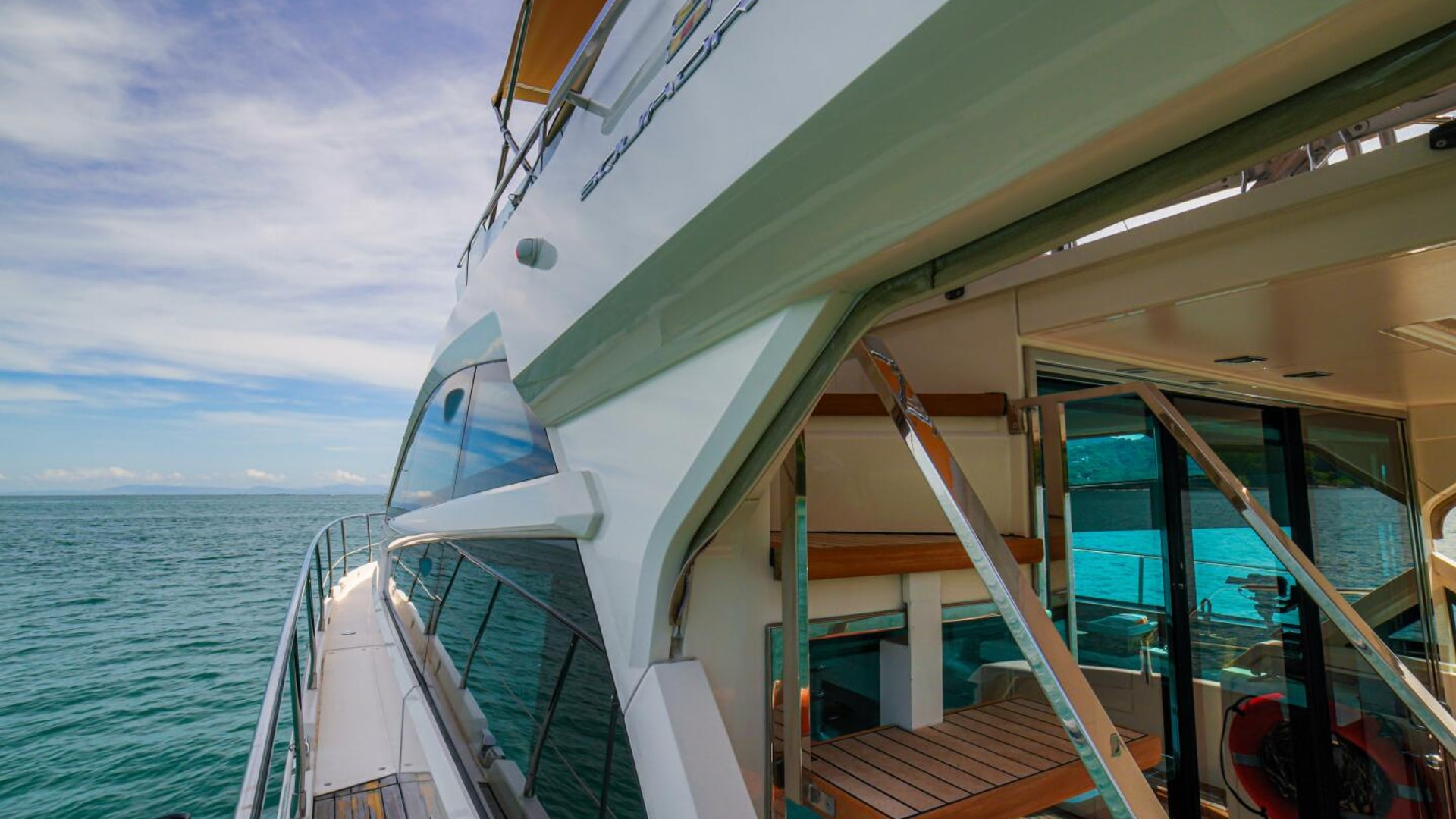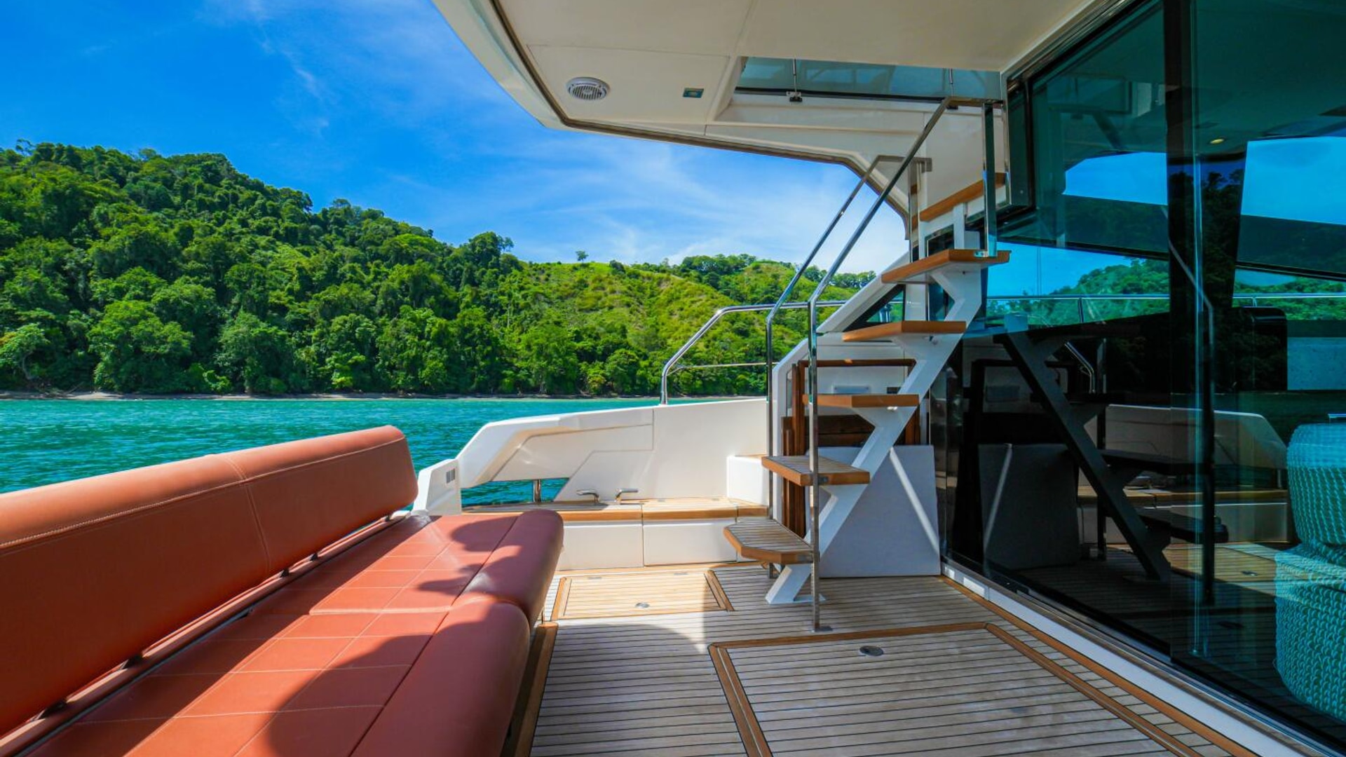 - Teak laid flybridge steps