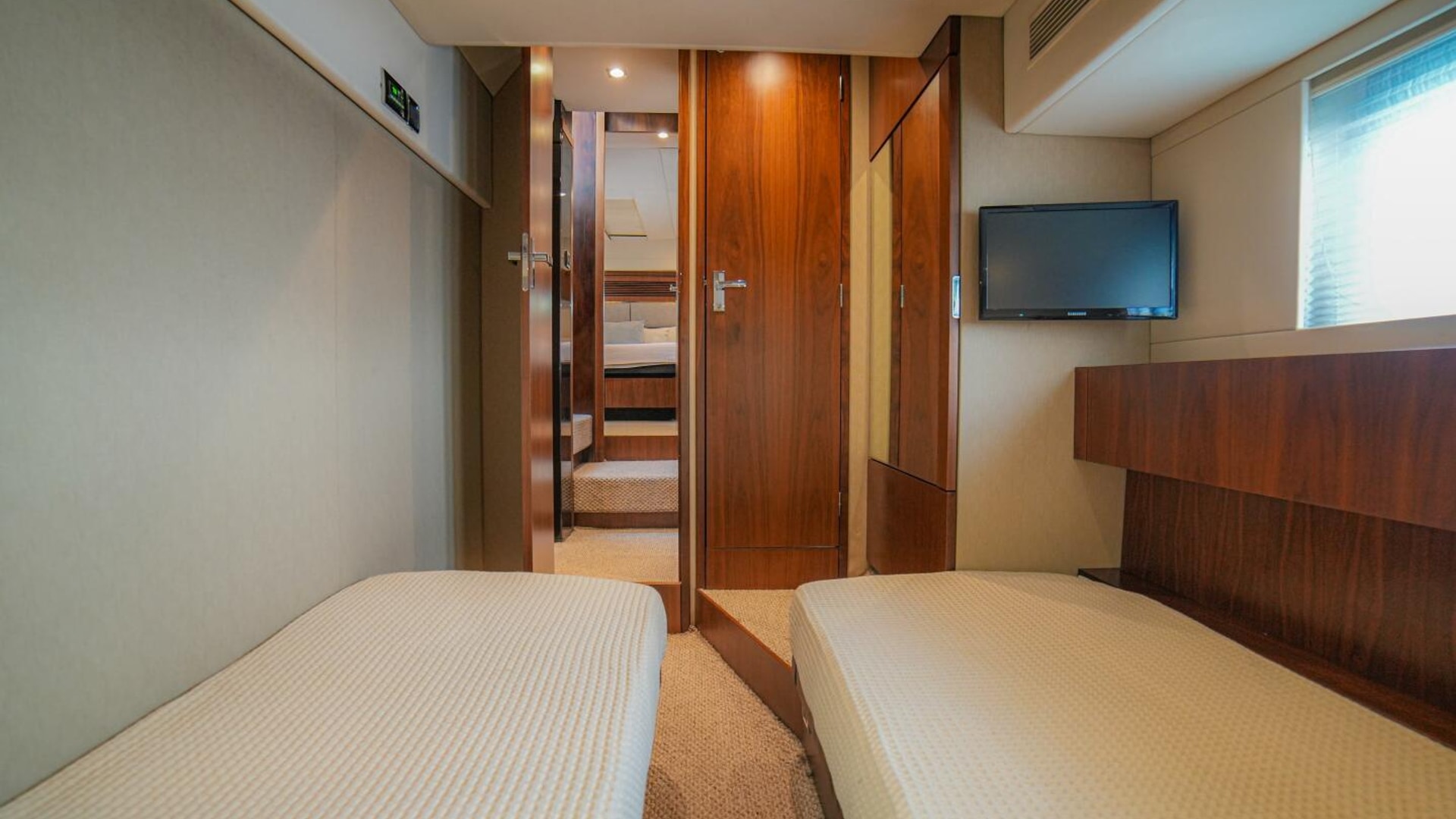 - Access to master cabin, two guest cabins and day head