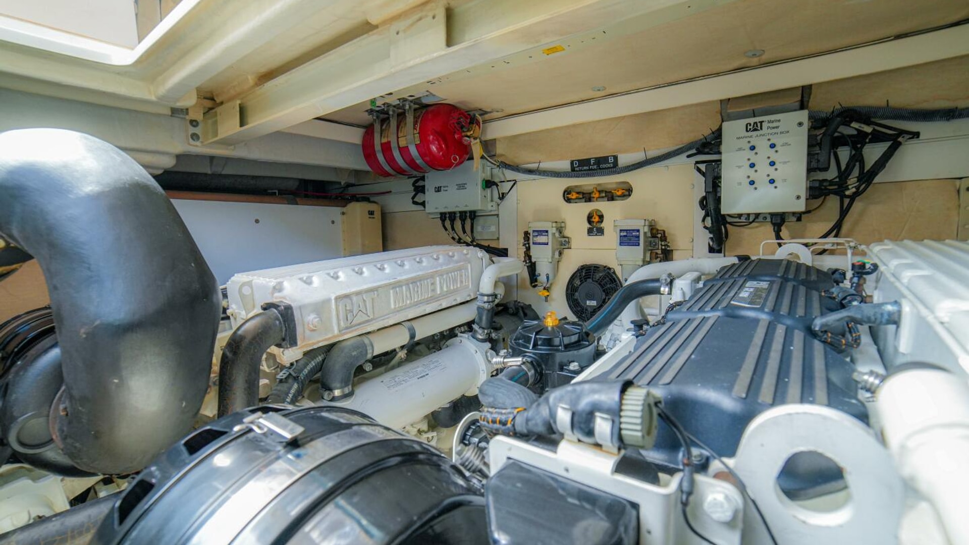 - Controls for engine bay Fireboy fire extinguisher system
