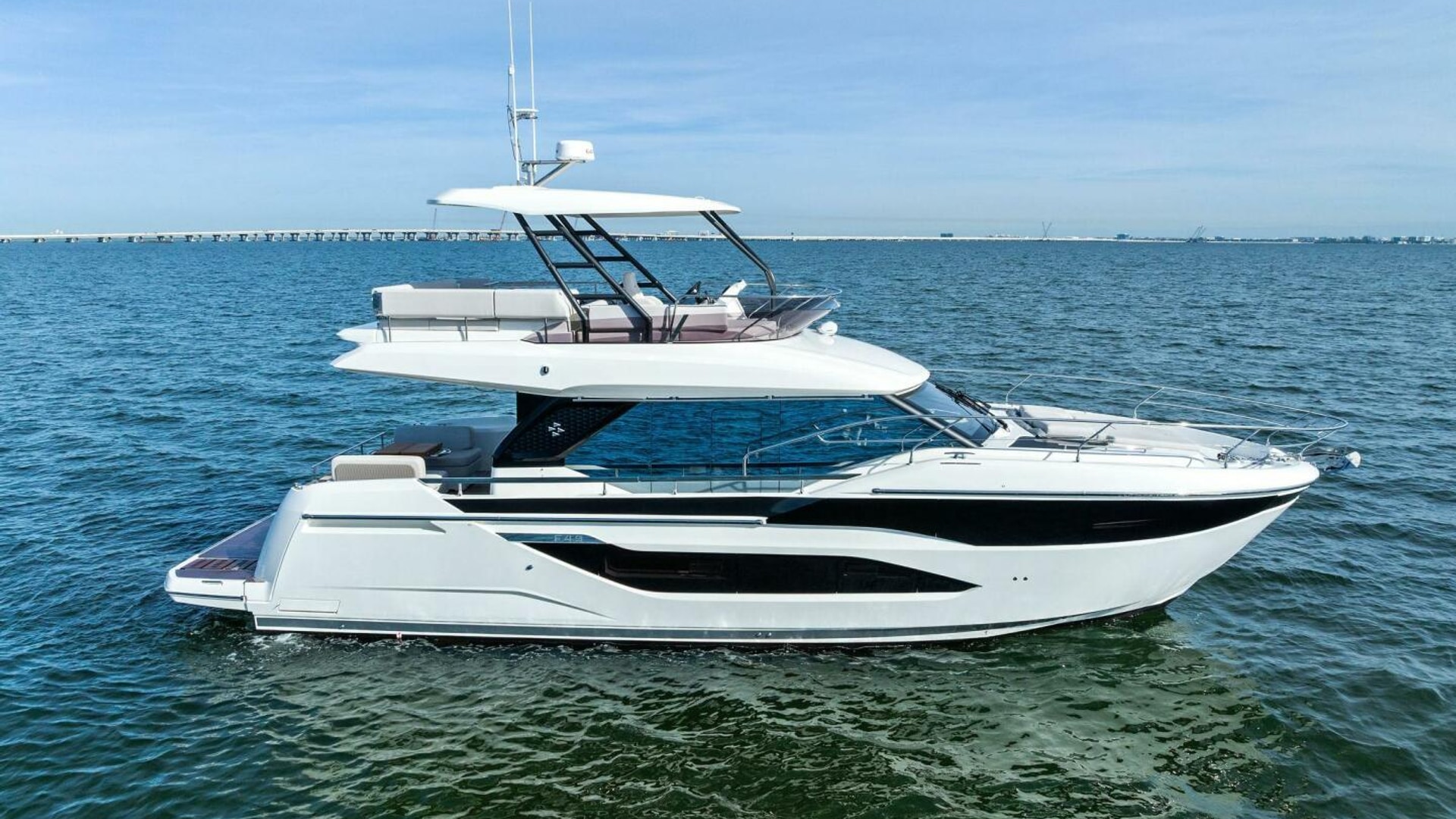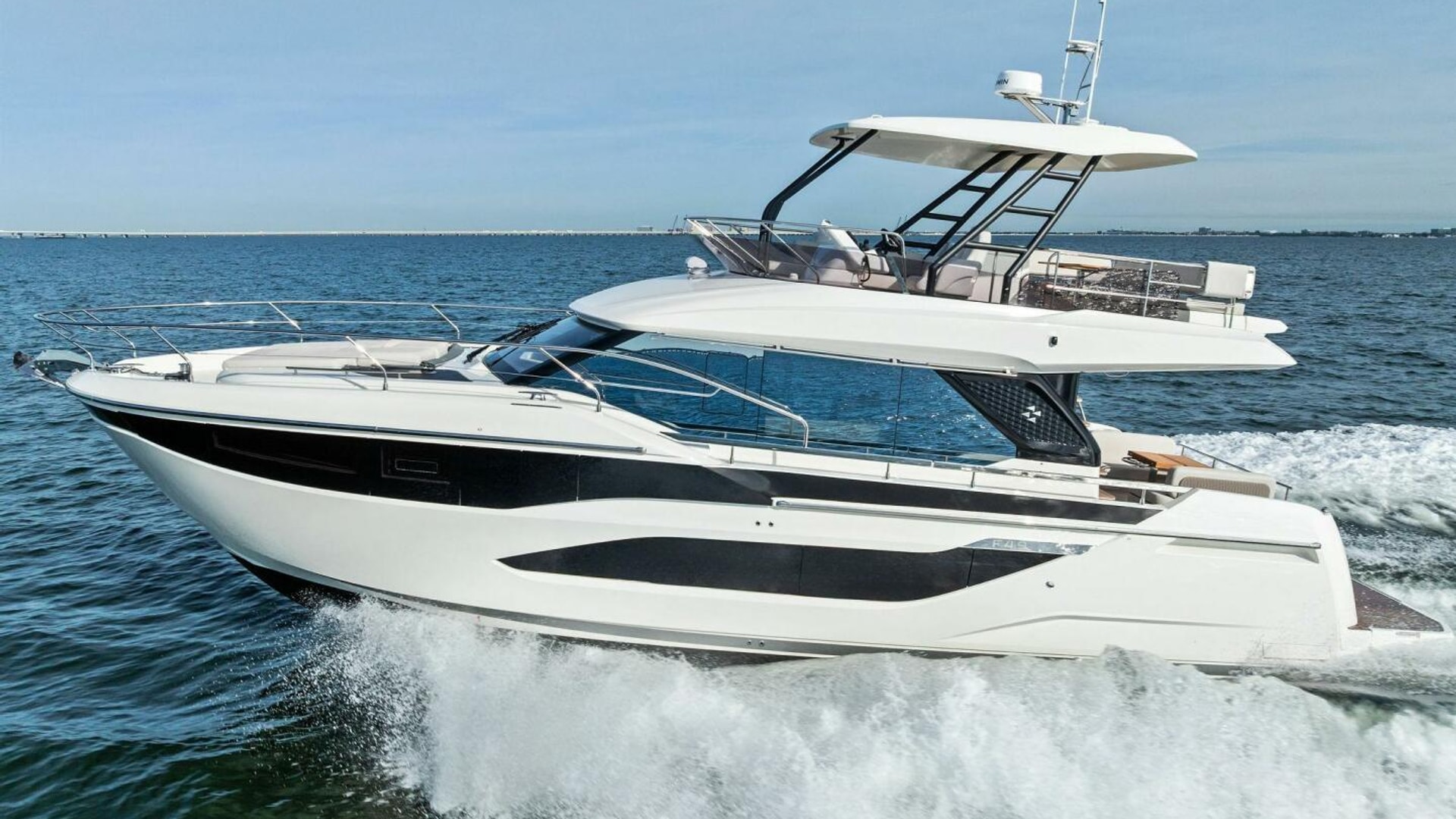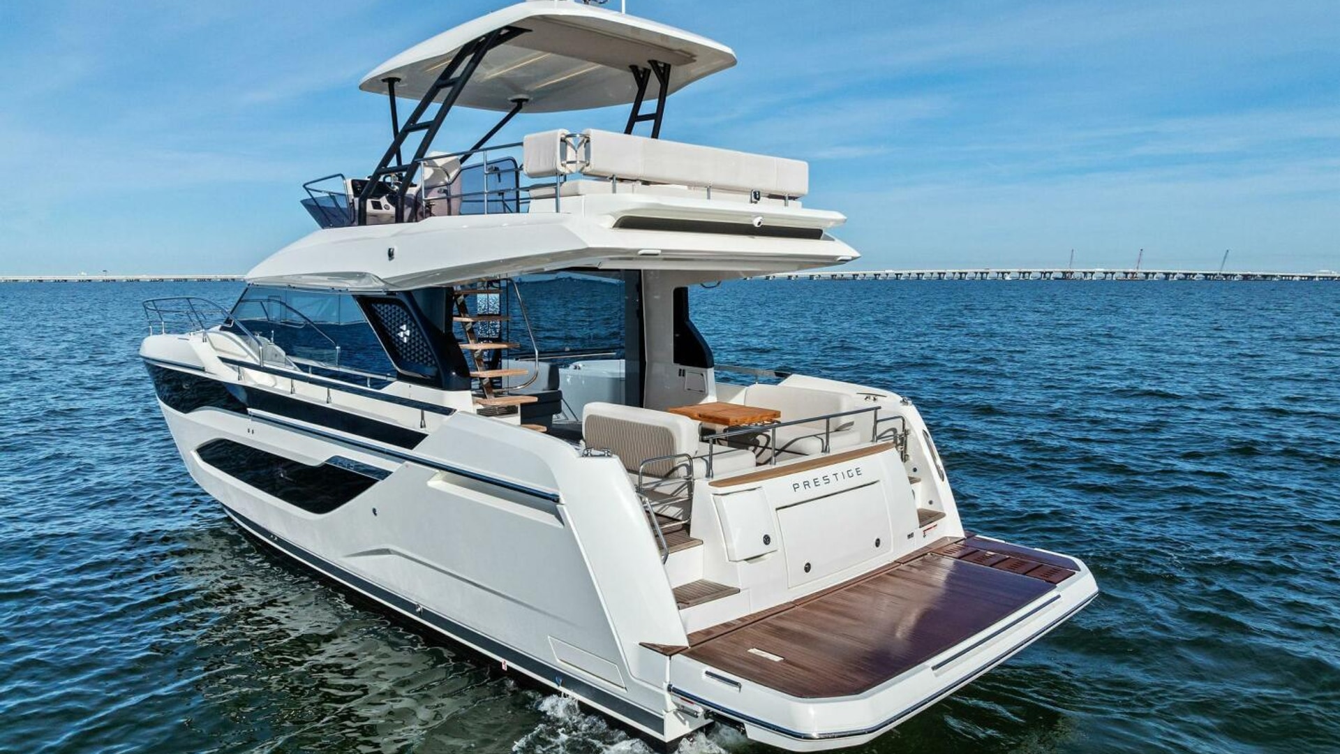 2026 49 Prestige F4.9 Motor Yacht for sale (PR26WM-057). The 2026 Prestige F4.9 Motor Yacht marks the debut of a new generation in the F-Line series, showcasing innovative design and exquisite craftsmanship. Thoughtfully crafted with luxurious materials such as natural stone, sculpted woodwork, and wicker, the F4.9 embodies sophistication at every turn.